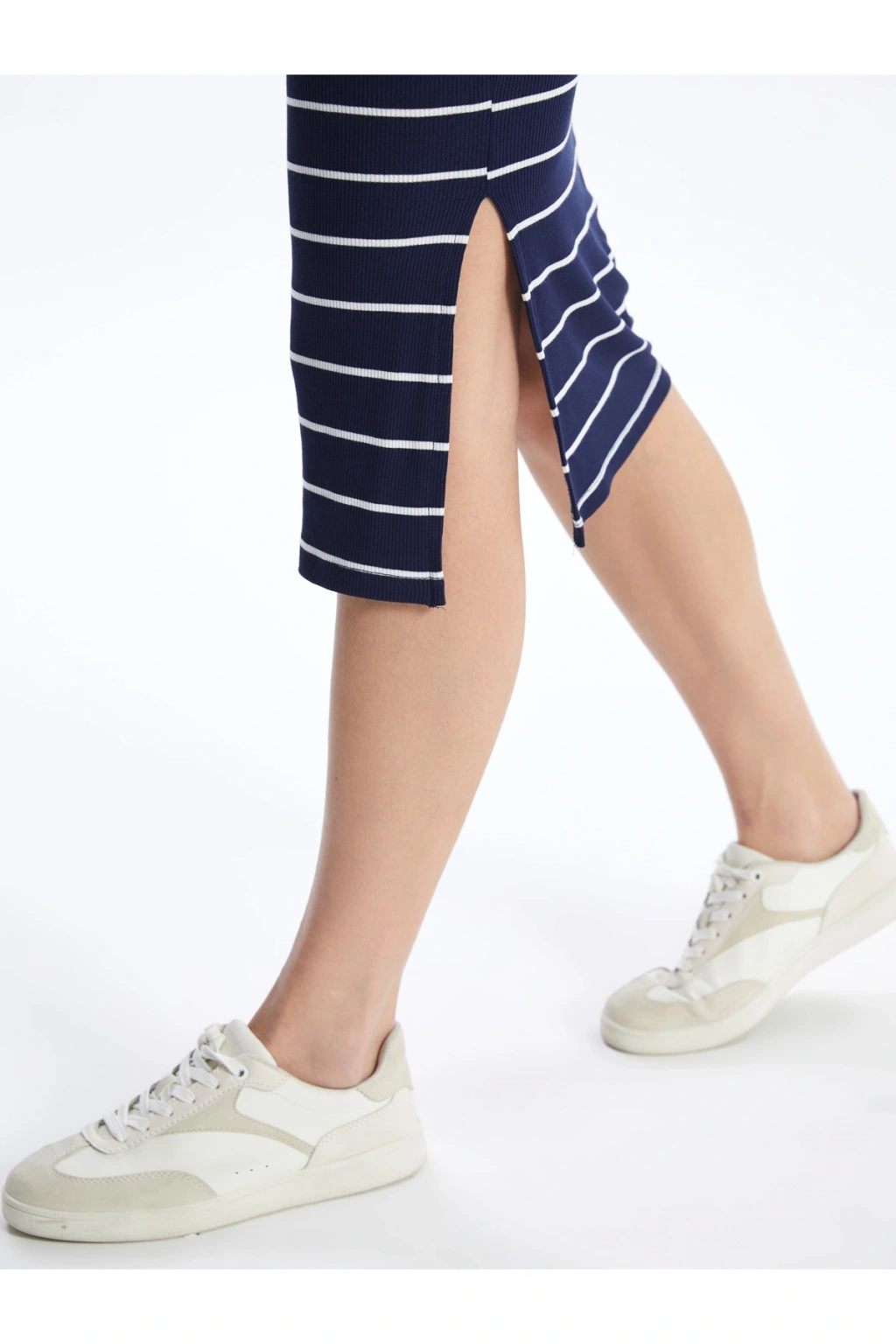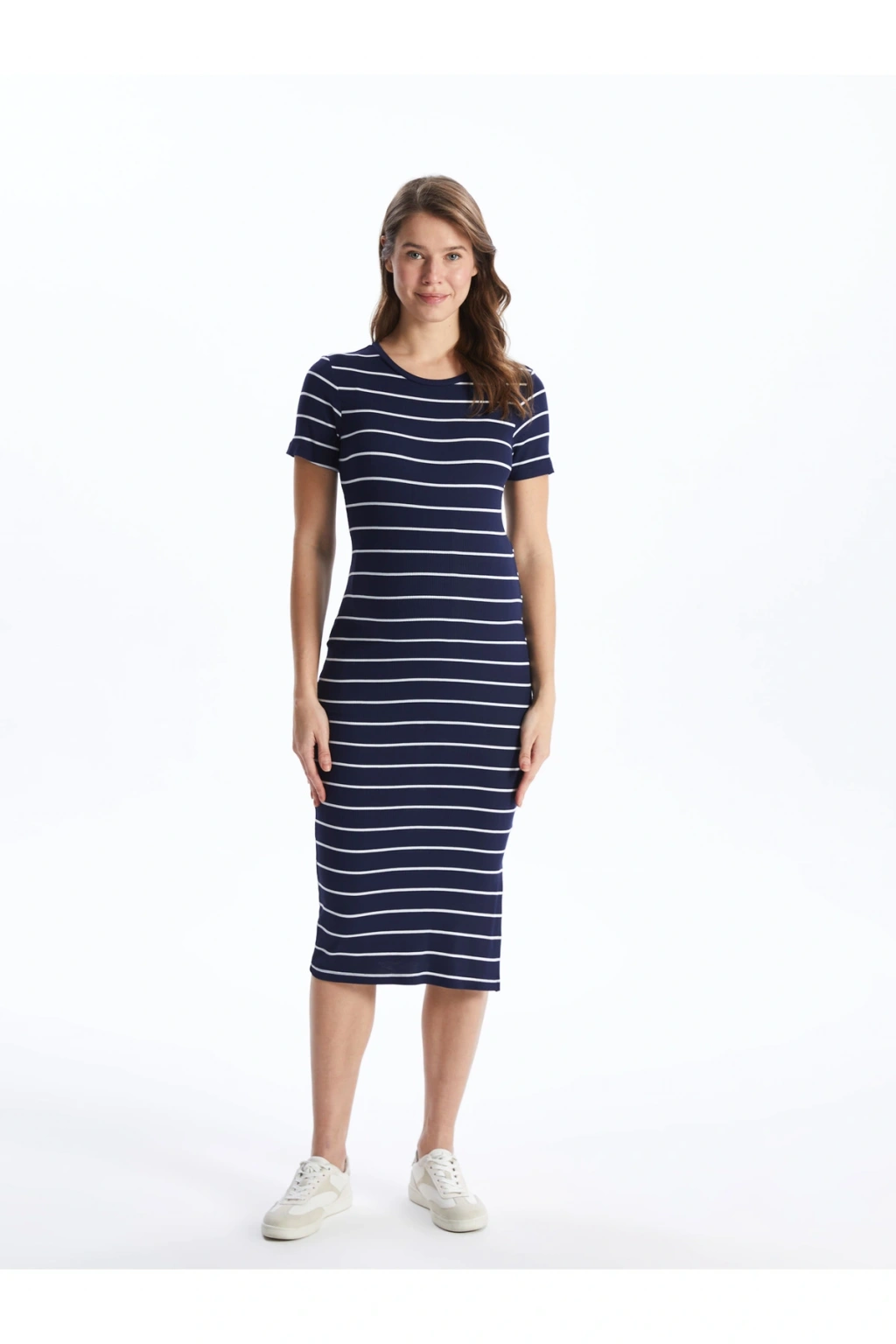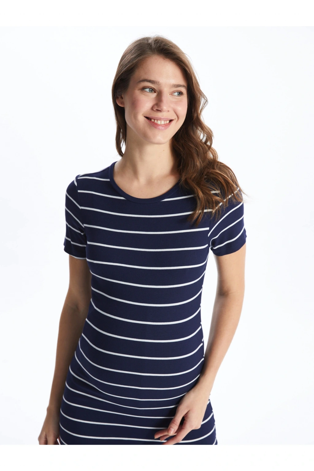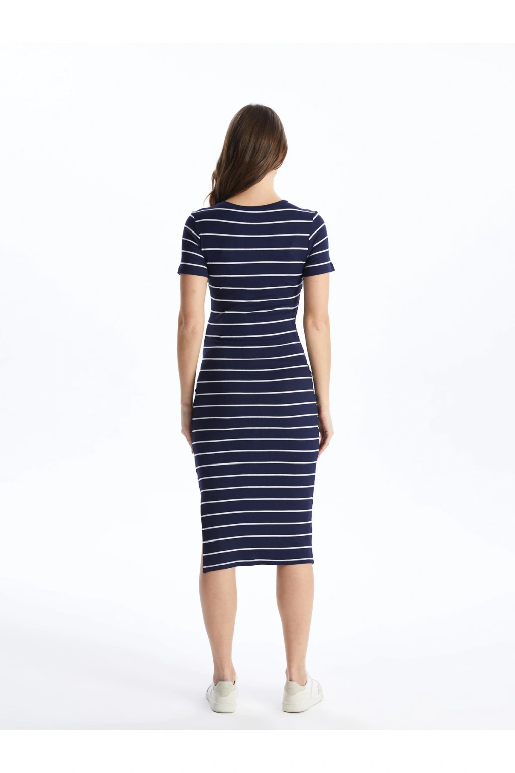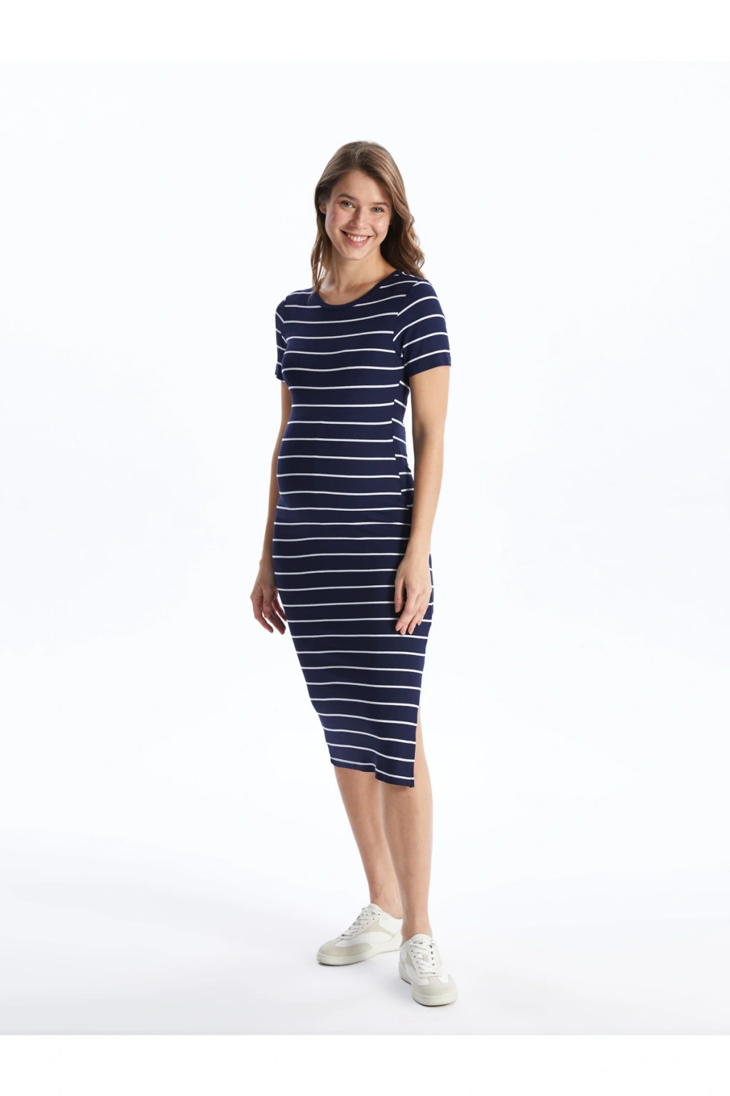 Bisiklet yaka çizgili kısa kollu hamile elbise, hamileliğiniz boyunca ve sonrasında şıklığınızı ve rahatlığınızı korumanız için idealdir. Dar kalıbı, vücudunuza mükemmel bir şekilde uyum sağlarken, esnek kumaşı konforlu bir kullanım sunar.