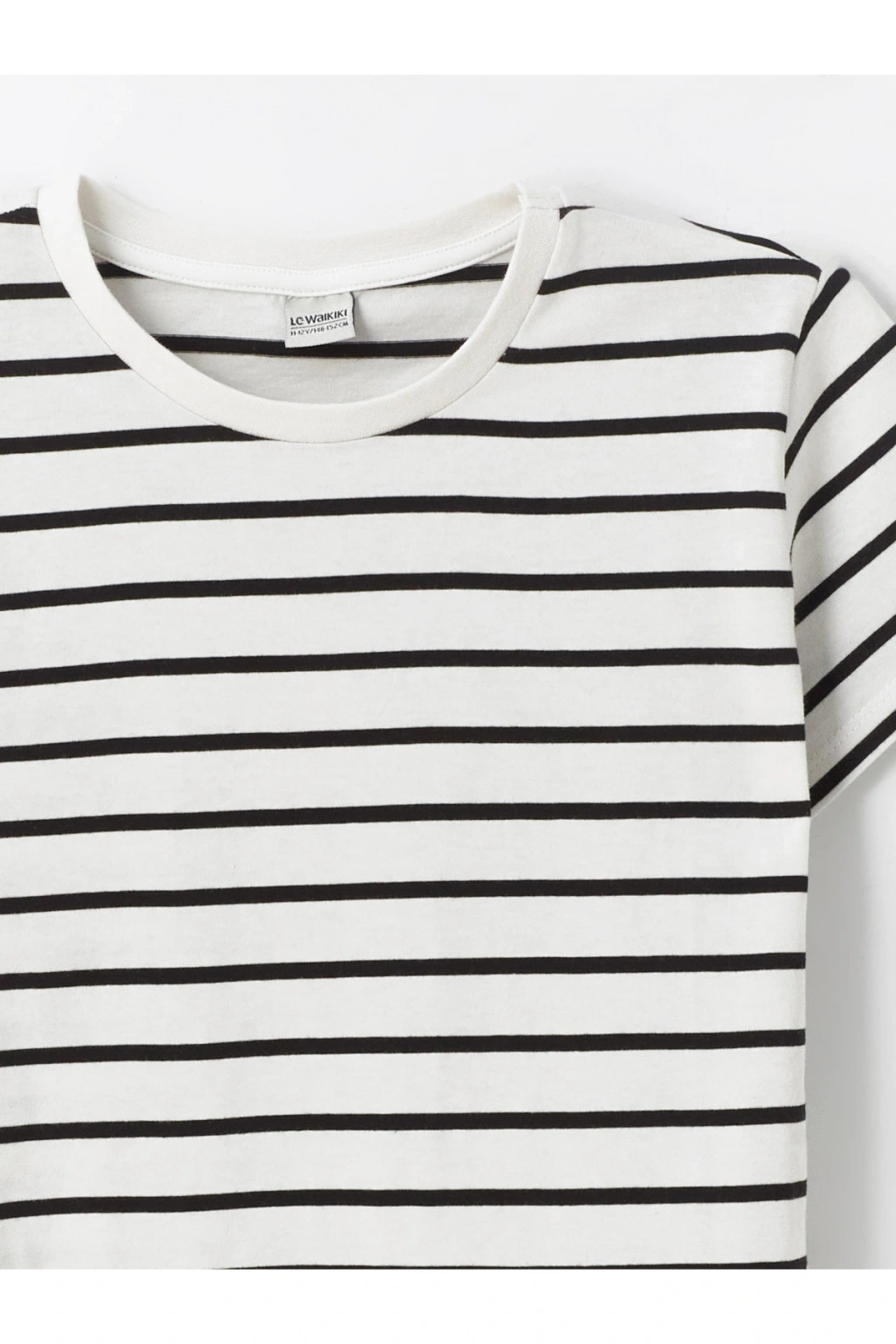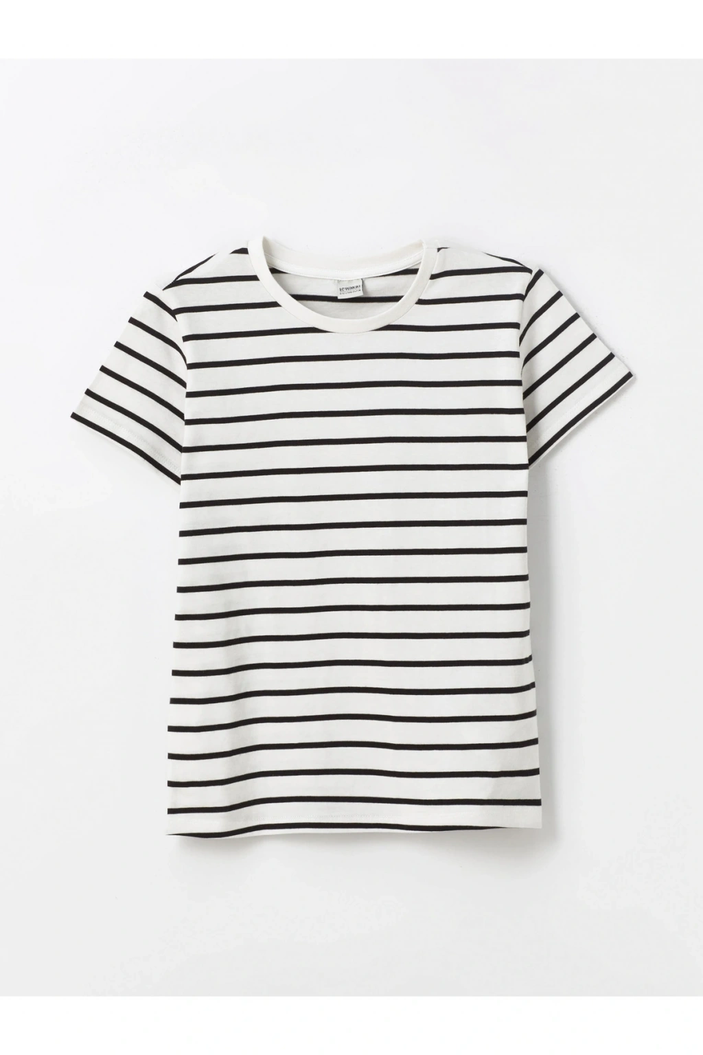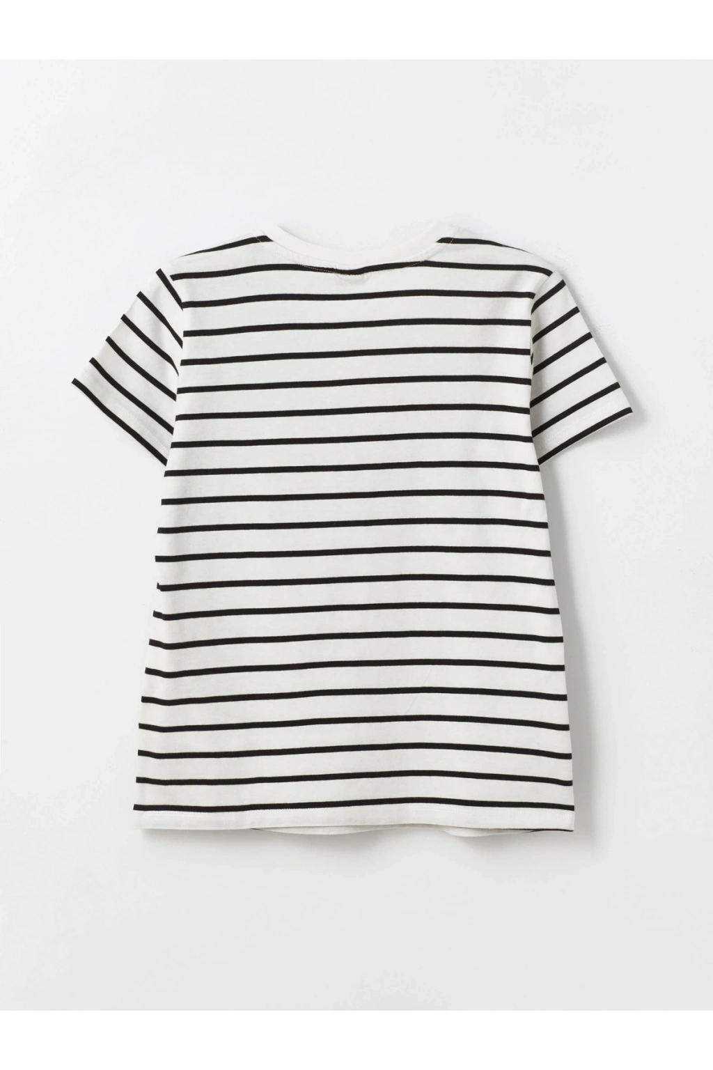 Çizgili desenleri ve bisiklet yaka tasarımıyla öne çıkan kız çocuk tişört, pamuklu penye kumaşı ile rahat bir kullanım sunar. Hem şık hem de konforlu, günlük giyim için ideal bir seçenektir.