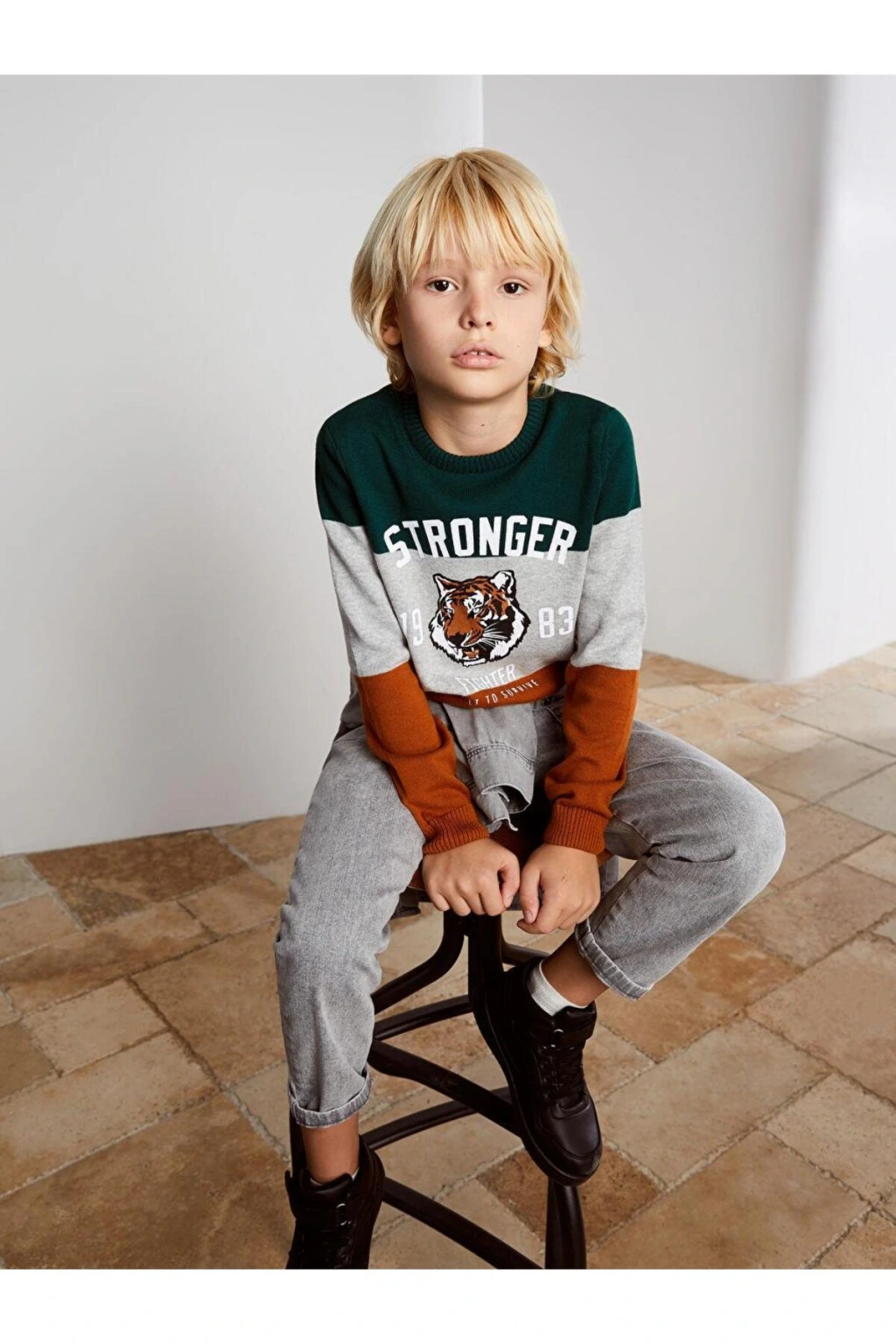 Ürün Açıklaması Manşetleri ve etek ucu ribanalı Manken Bilgisi Boy: 130 cm Kilo: 27 kg Manken 7-8 YAŞ beden ürün giyiyor.; Ürün İçeriği ve Özellikleri Ürün İçeriği: Ana Kumaş: %100 Pamuk Ürün Özellikleri: Satıcı: LC Waikiki Marka: LCW Kids Ürün Tipi: Kazak Cinsiyet: Erkek Çocuk Kalıp: Standart & Regular Kumaş: Triko Desen: Baskılı Yaka: Bisiklet Yaka Kalınlık: İnce Kol Boyu: Uzun Kollu Malzeme: %100 Pamuk