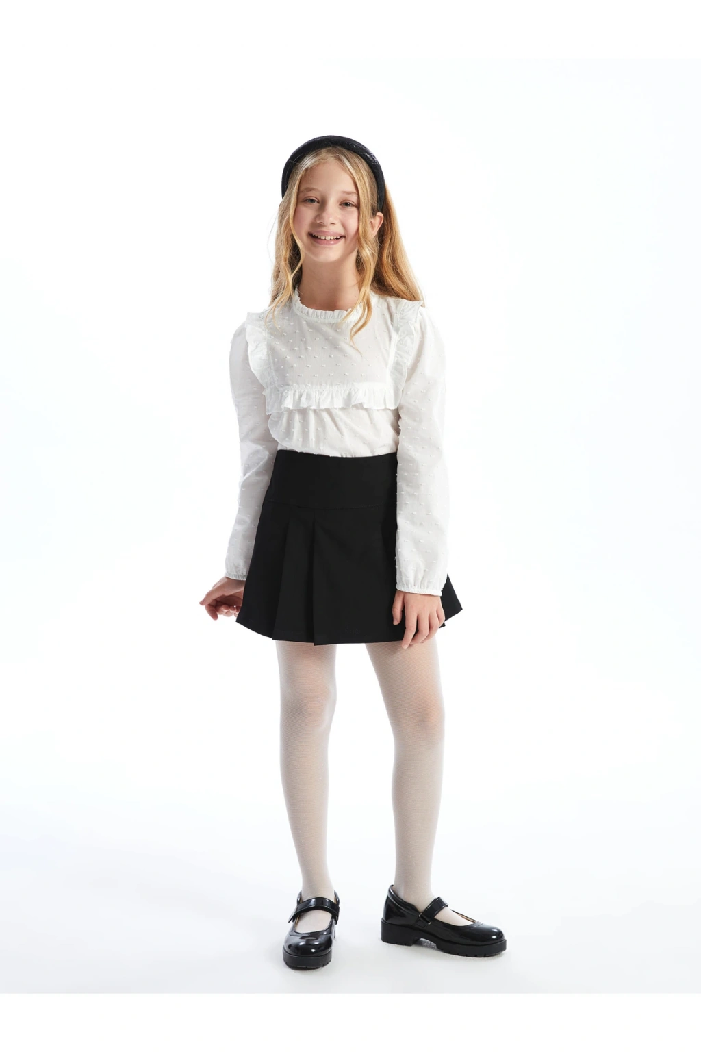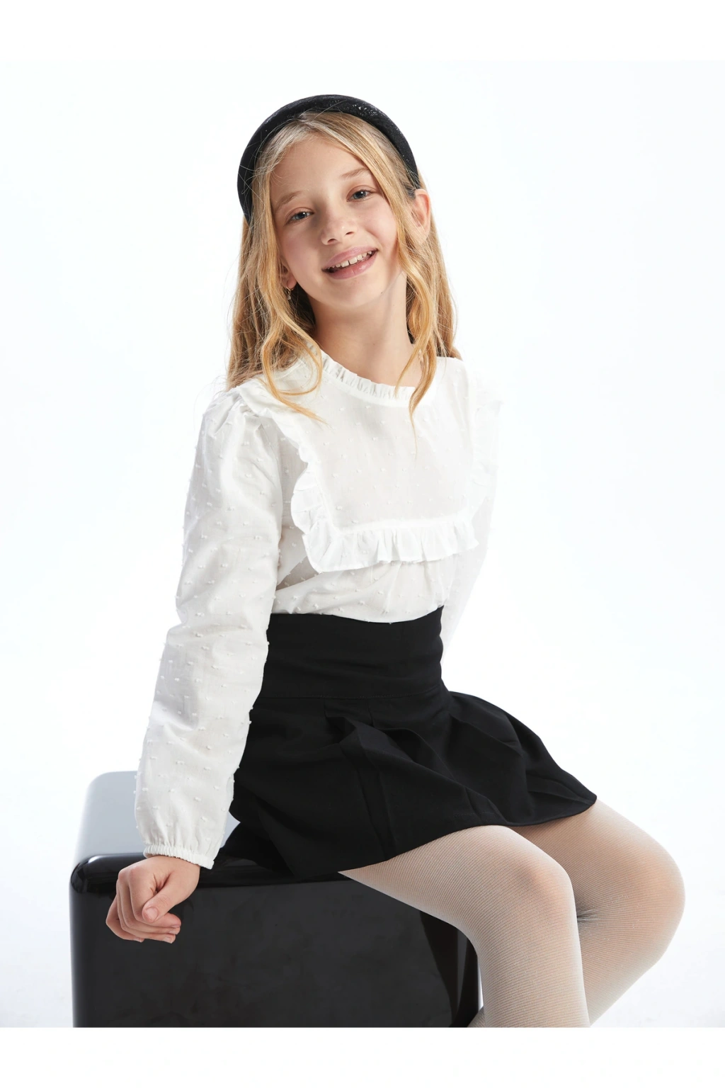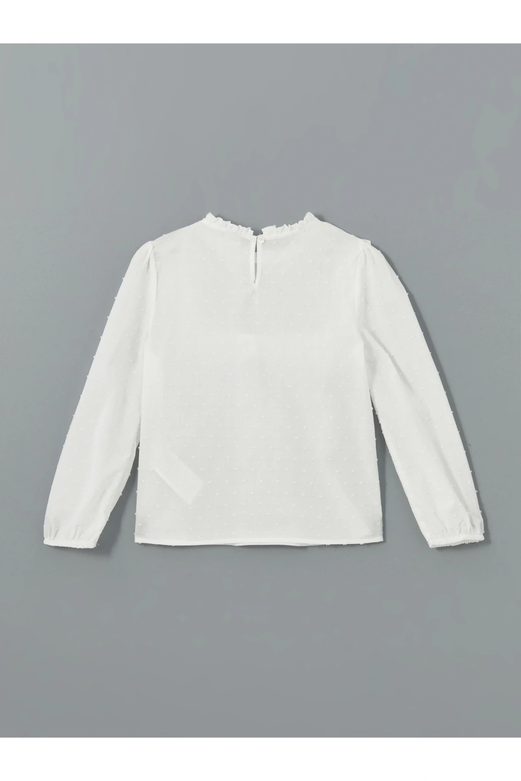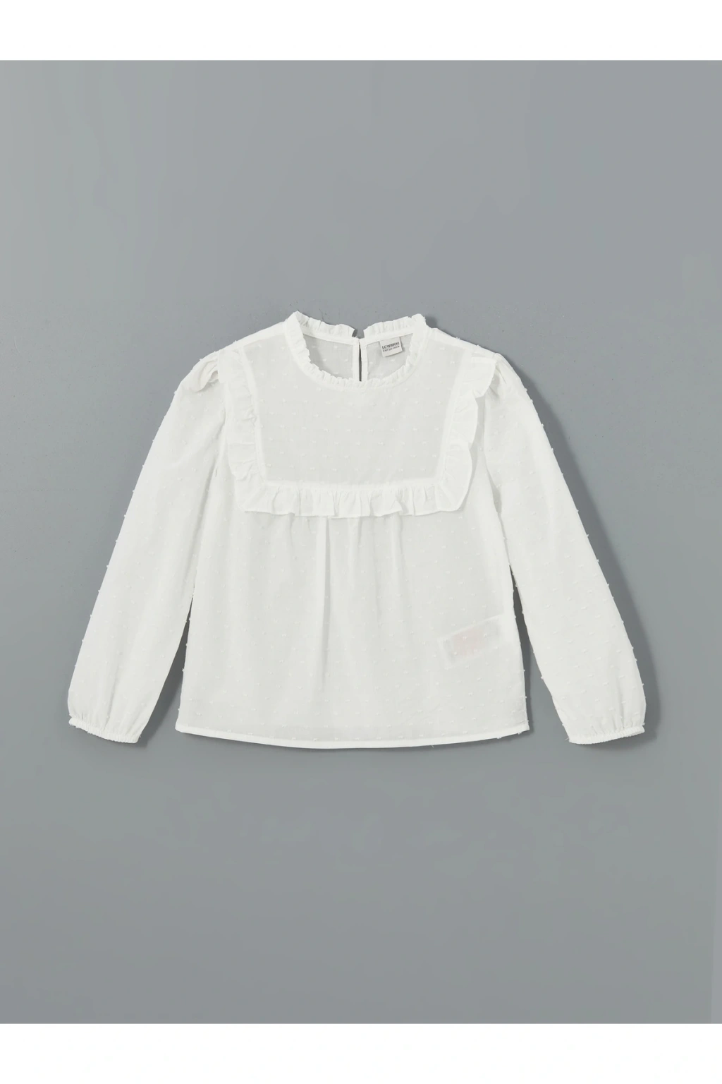Jakarlı kumaştan üretilen bluz, fırfır detaylarıyla zarif bir tasarım sunar.; Arkadan düğme kapamalı olması, giyip çıkarmayı kolaylaştırırken, manşetleri lastikli yapısı mükemmel bir uyum sağlar.; Çocuğunuzun şık ve rahat bir görünüm sunar.