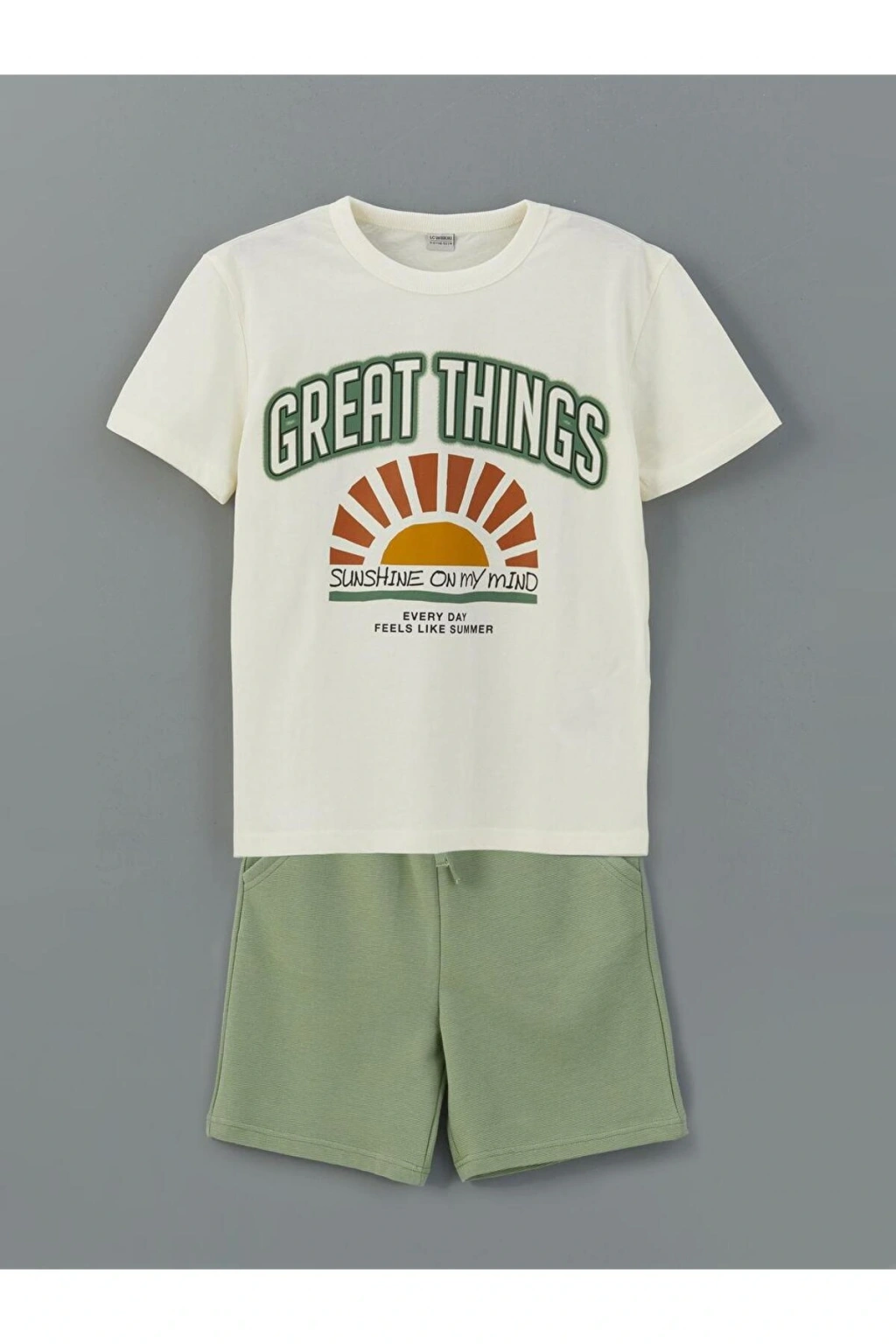 Ürün Açıklaması Erkek çocuk 2'li takım, pamuk karışımlı penye kumaştan üretilmiştir.; Takım, tişört ve şorttan oluşur ve günlük giyim için ideal bir seçenektir.; Şık ve konforlu tasarımıyla çocuğunuzun rahatlıkla hareket etmesini sağlar.; Ürün İçeriği ve Özellikleri Ürün İçeriği: Ana Kumaş T-Shirt: %100 Pamuk Ana Kumaş Şort: %100 Pamuk Ürün Özellikleri: Satıcı: LC Waikiki Marka: LCW Kids Ürün Tipi: Takım Cinsiyet: Erkek Çocuk Kalıp: Loose & Bol Kumaş: Penye Desen: Baskılı Yaka: Bisiklet Yaka Kalınlık: İnce Kol Boyu: Kısa Kollu Malzeme: Yüksek Pamuk İçerir Parça Sayısı: 2 Parça