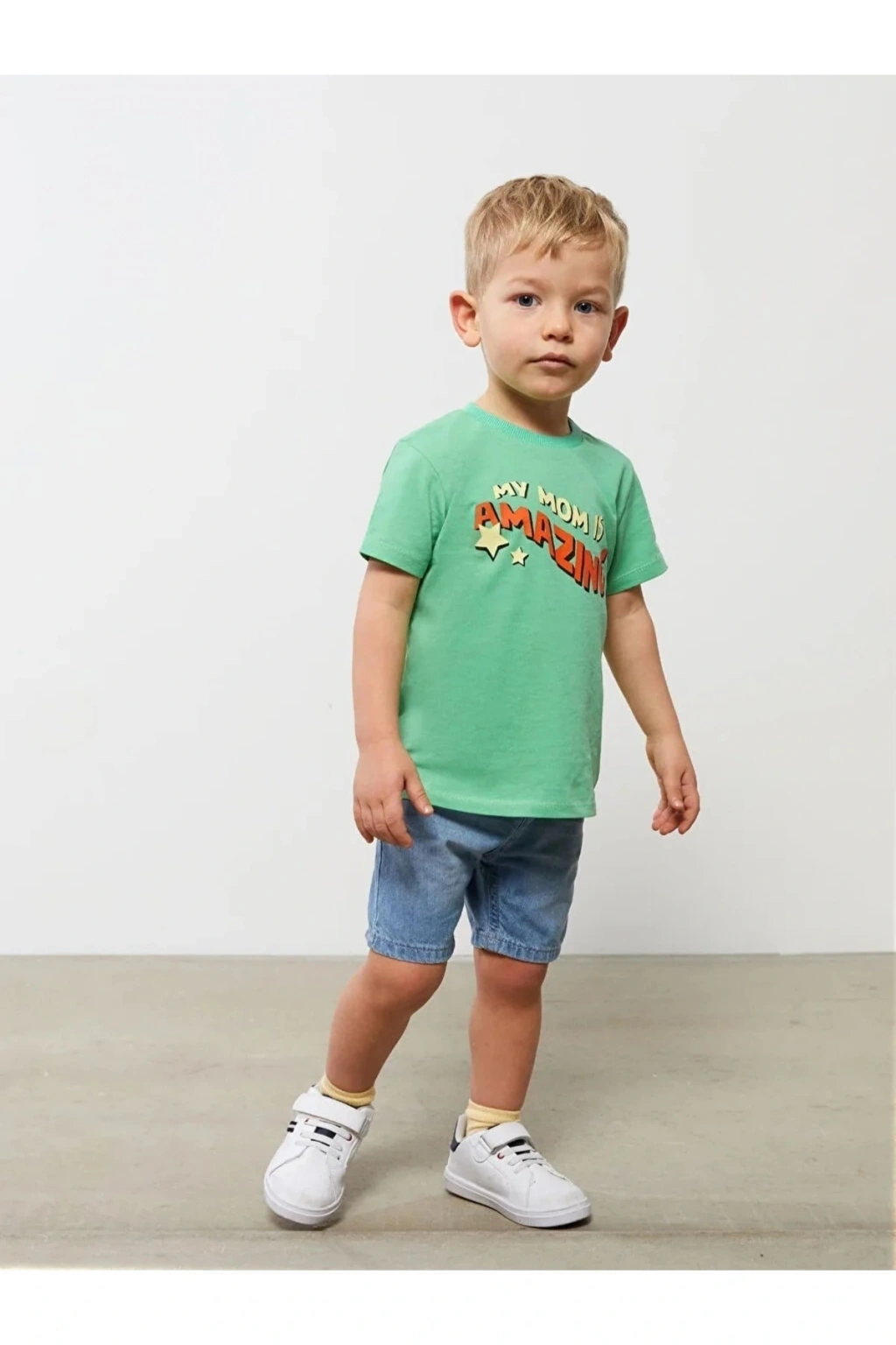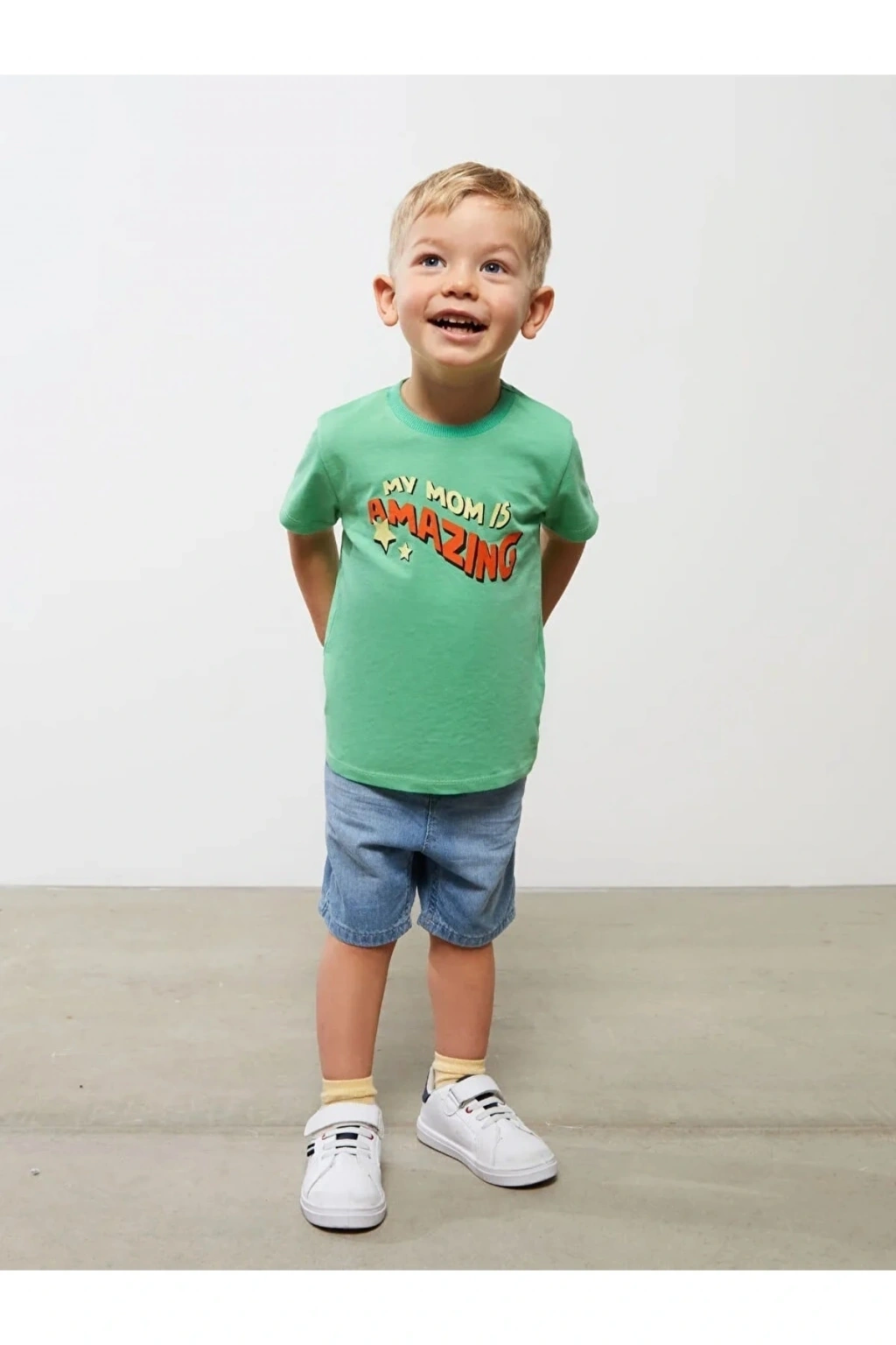 Bisiklet Yaka Kısa Kol Baskılı Erkek Bebek Tişört