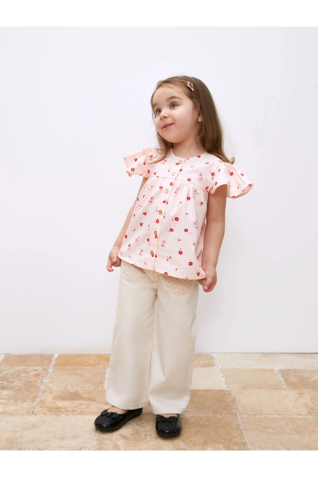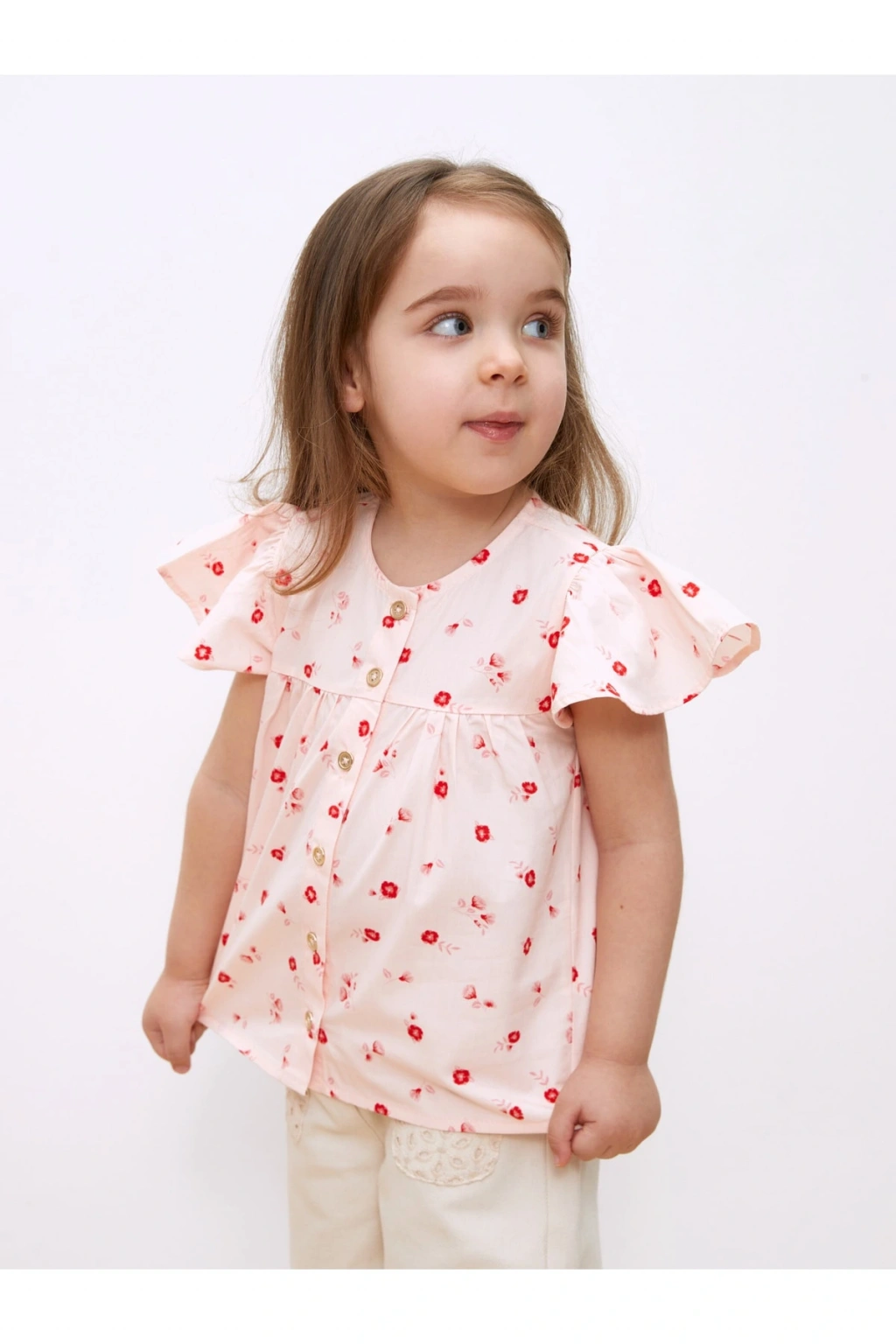 Bisiklet Yaka Kısa Kollu Baskılı Kız Bebek Gömlek
