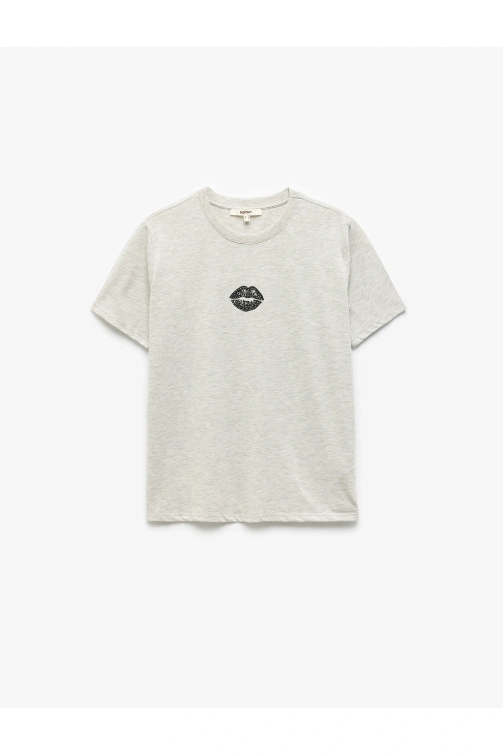 Bisiklet Yaka Kısa Kollu Baskılı Tişört