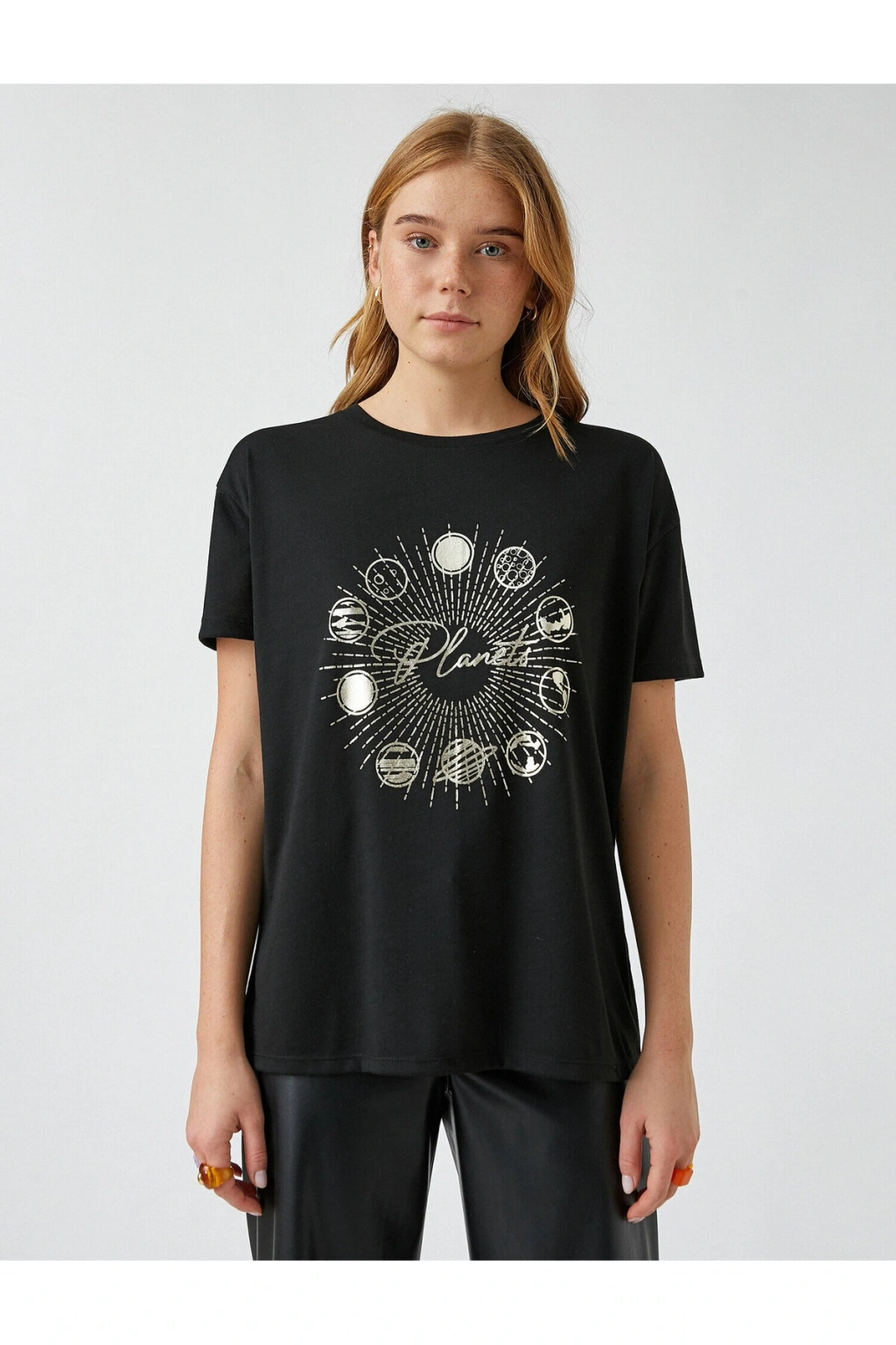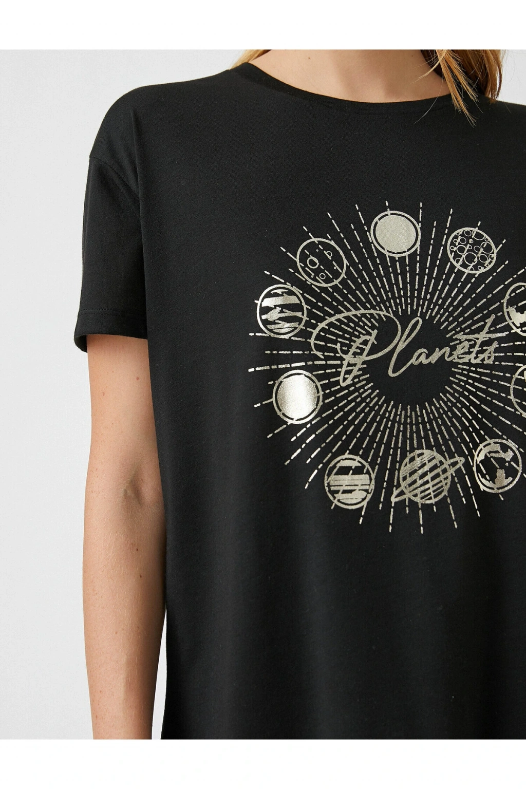 Bisiklet Yaka Kısa Kollu Baskılı Tişört