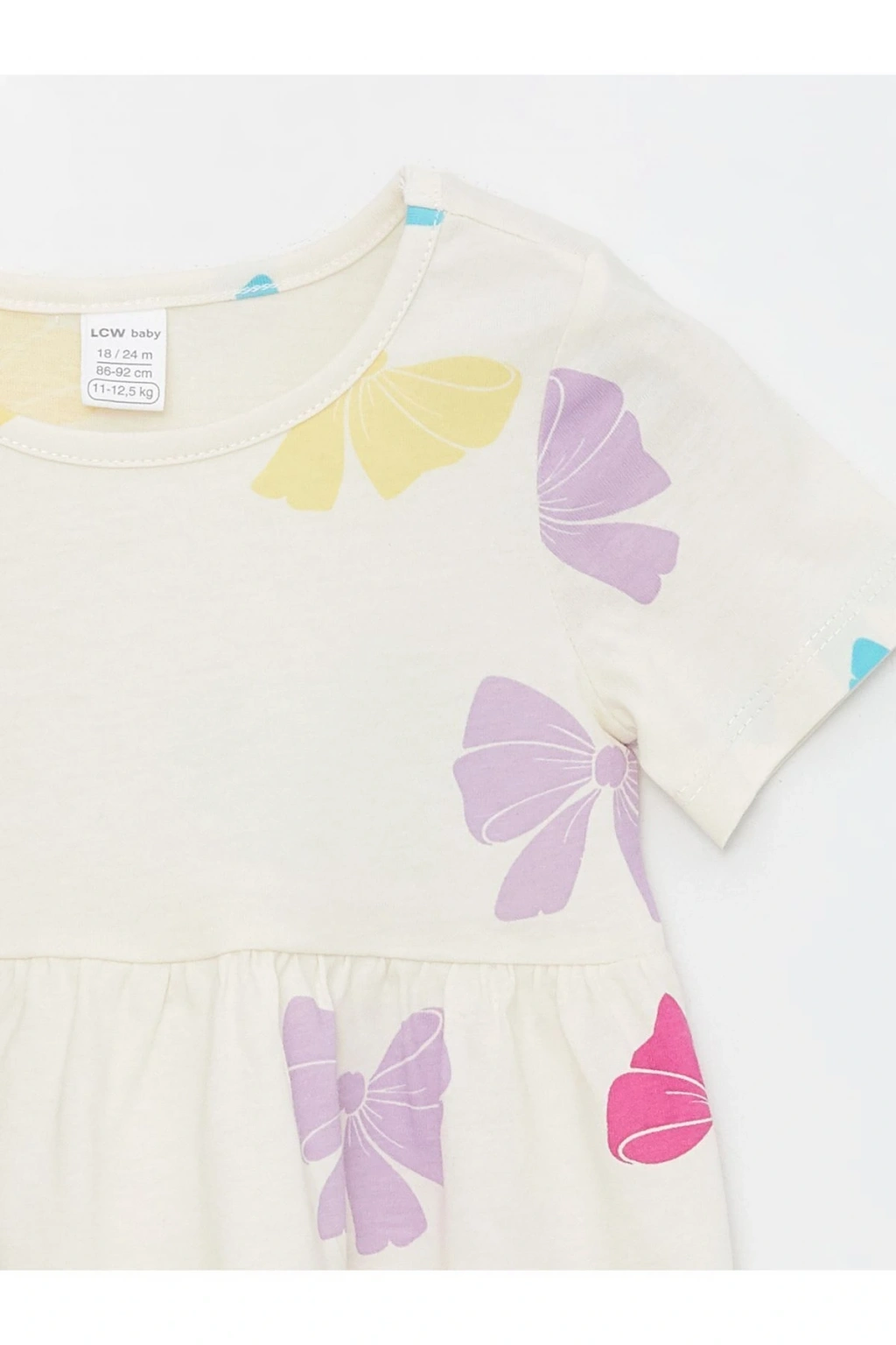 Ürün Açıklaması Bisiklet yaka ve kısa kollu bu kız bebek elbisesi, yumuşak penye kumaştan üretilmiştir.; Bebeğinizin cildine nazik, rahat bir dokunuş sağlayan bu elbise, hem şık hem de pratiktir.; Ürün İçeriği ve Özellikleri Ürün İçeriği: Ana Kumaş: %100 Pamuk Ürün Özellikleri: Satıcı: LC Waikiki Kalıp: Dar Ürün Tip: Elbise Kol Boyu: Kısa Kollu Desen: Baskılı Marka: LCW baby Kumaş: Penye Malzeme: %100 Pamuk Cinsiyet: Kız Bebek Kalınlık: İnce Yaka: Bisiklet Yaka
