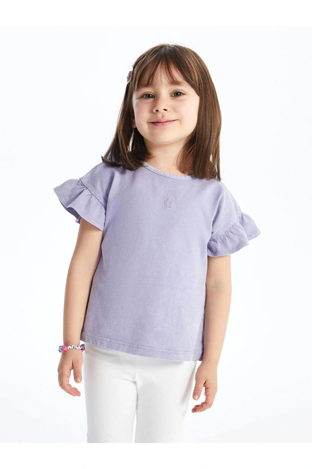 Bisiklet Yaka Nakışlı Kız Bebek Tişört