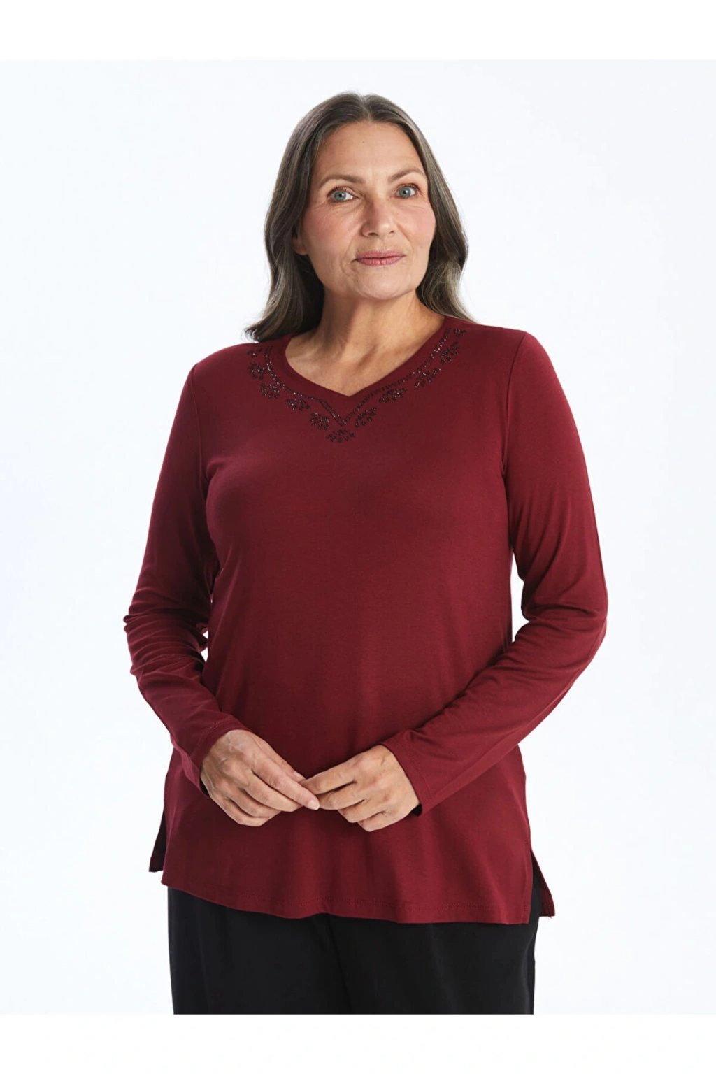 Ürün Açıklaması Bisiklet yaka parlak taş baskılı kadın bluz esnek ve yumuşak kumaşıyla rahatlık sunarken, alt kısımlarındaki yırtmaç detaylarıyla hareket özgürlüğü sağlar.; Parlak taş baskıları ise bluzun zarif ve göz alıcı görünümünü tamamlar.; Ürün İçeriği ve Özellikleri Ürün İçeriği: Göğüs: 88 cm Bel: 70 cm Basen: 90 cm Boy: 167 cm Manken S beden ürün giyiyor.; Ürün İçeriği: Ürün Özellikleri: Satıcı: LC Waikiki Marka: LCW Grace Ürün Tipi: Bluz Cinsiyet: Kadın Kalıp: Standart & Regular Kumaş: Penye Desen: Baskılı Yaka: Bisiklet Yaka Kol Boyu: Uzun Kollu Koleksiyon: Büyük Beden