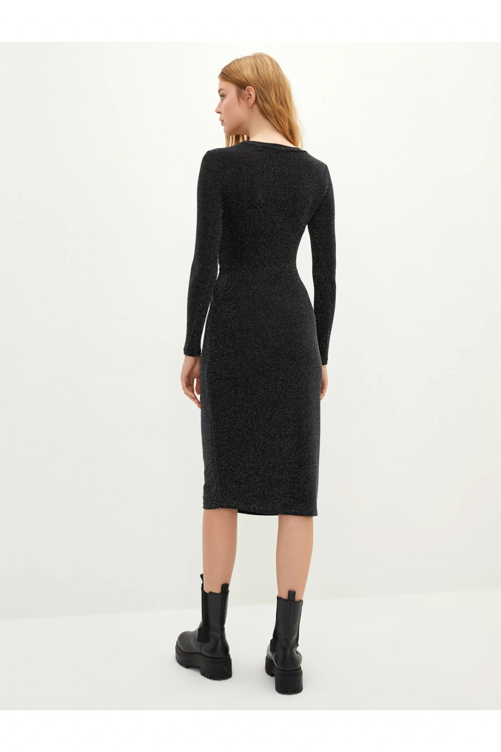 Bisiklet Yaka Pencere Detaylı Uzun Kollu Kadın Bodycon Elbise