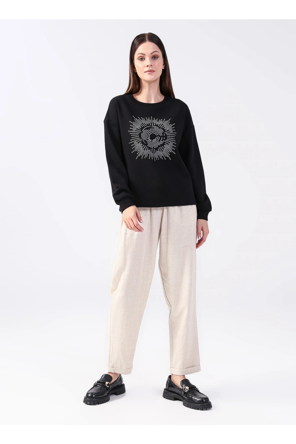 Her yaş grubuna hitap eden tasarımıyla, geniş bir kullanıcı yelpazesine sahip; Bisiklet yaka kesimi ile modern ve şık bir görünüm sunar; Dokuma kumaş yapısı sayesinde dayanıklılık ve konforu bir arada yaşatır; Sade ve düz deseniyle kolayca kombinlenebilir, zamansız bir stil oluşturur;