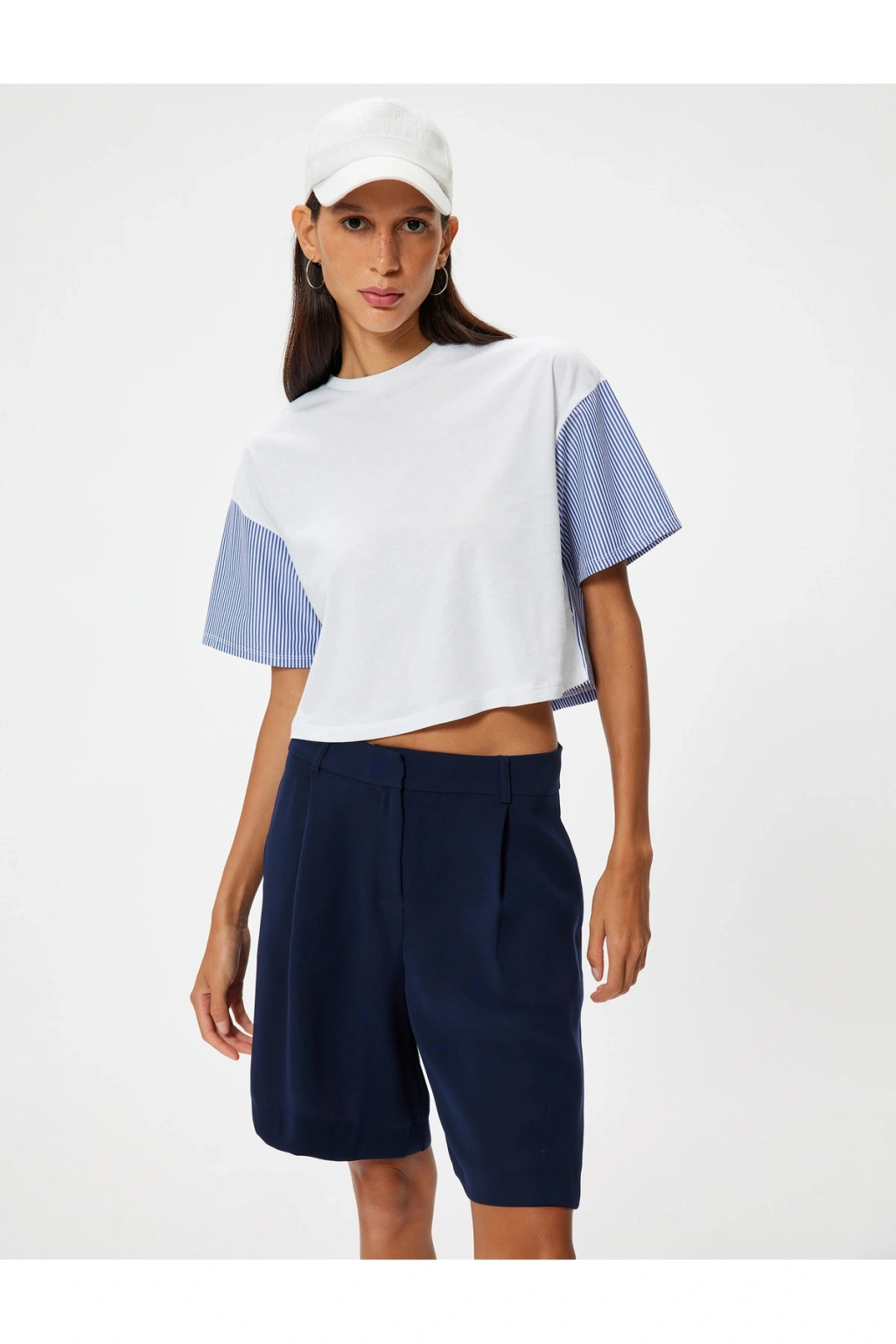 Bisiklet yaka, kısa kollu tişört dinamik stiline havalı bir dokunuş sağlıyor.; Tek başına anahtar bir görünümün parçası olan Koton tişört tasarımları gardıropların olmazsa olmazları arasında yer alıyor.; | Model Boy: 179 | Model Kalça: 90 | Model Üst: 60 | Model Bel: S | Model Göğüs: 85 | Model Jean: 27/32