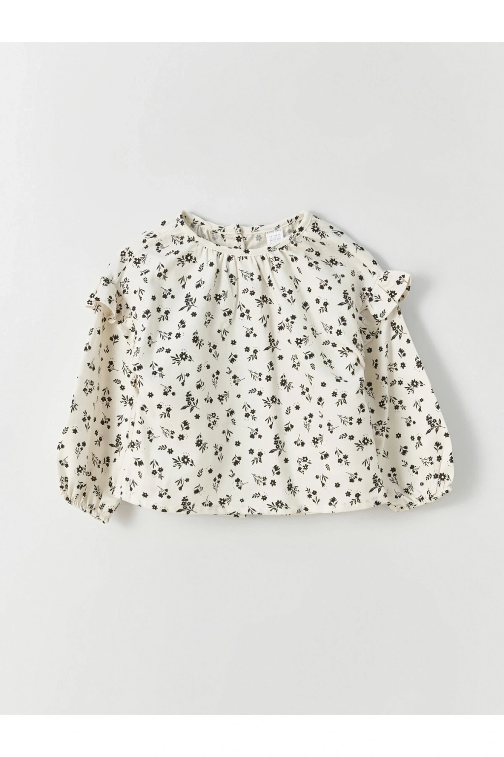 Bisiklet Yaka Uzun Kollu Baskılı Kız Bebek Gömlek
