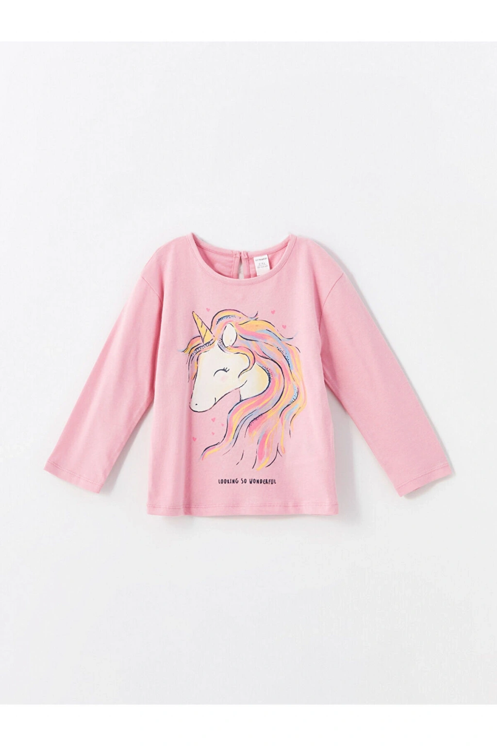 Bisiklet Yaka Uzun Kollu Baskılı Kız Bebek Tişört