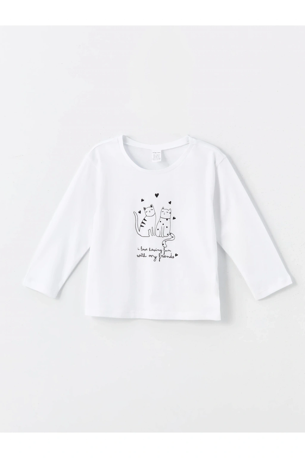 Bisiklet yaka uzun kollu baskılı kız bebek tişört, %100 pamuk kumaşıyla yumuşak ve nefes alabilir.; Sevimli baskılarıyla dikkat çeken bu tişört, cilde dosttur ve gün boyu rahatlık sağlar.; Hem konforlu hem de tatlı bir tercih.