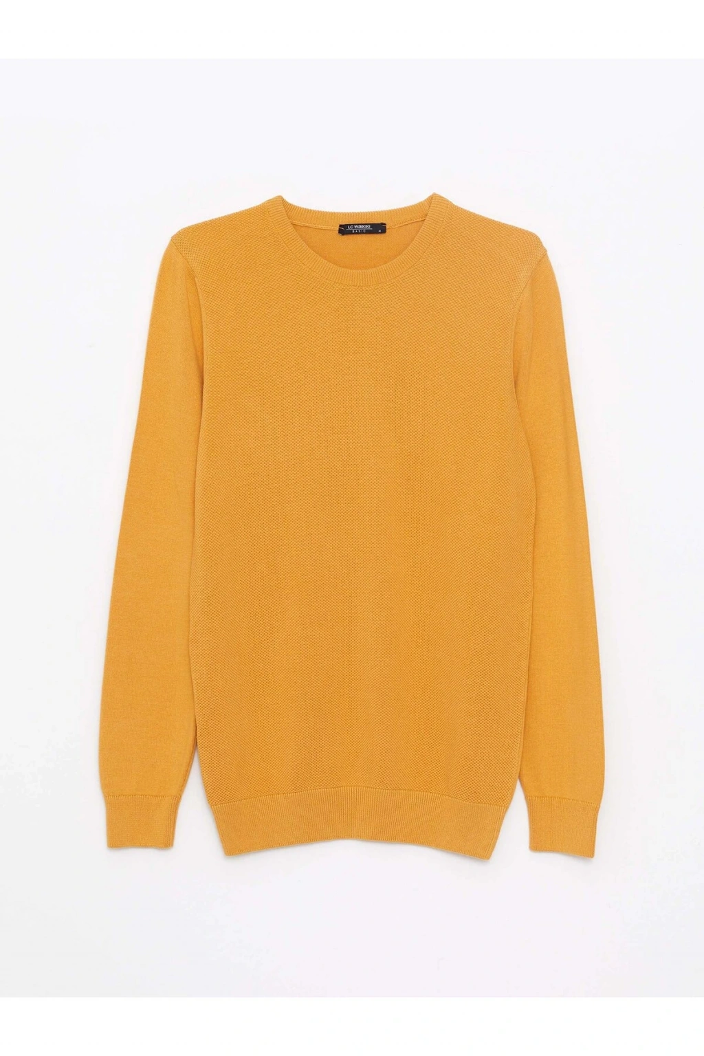 LCW Kids hardal sarı Bisiklet Yaka Basic Uzun Kollu Erkek Çocuk Triko Kazak