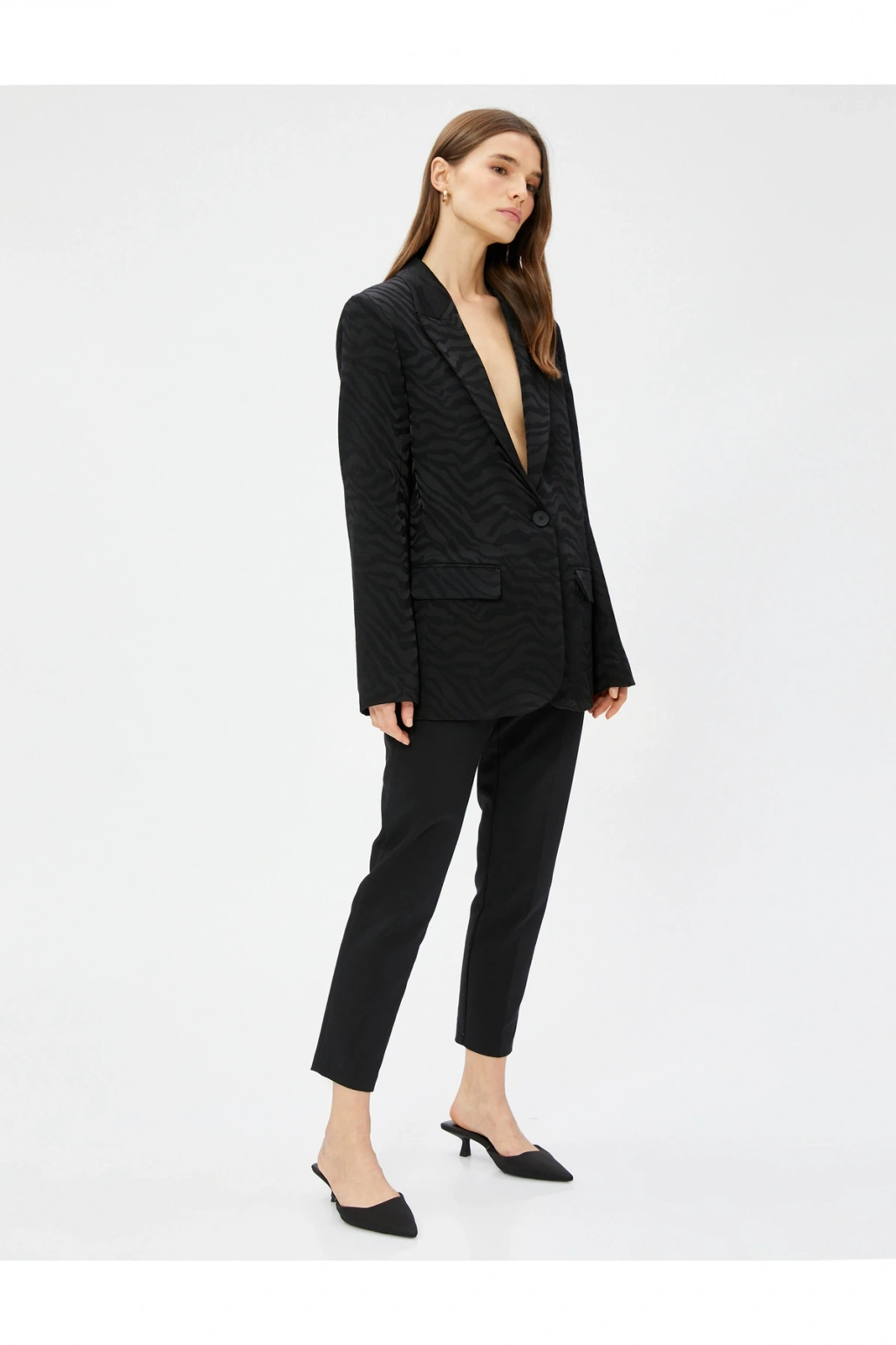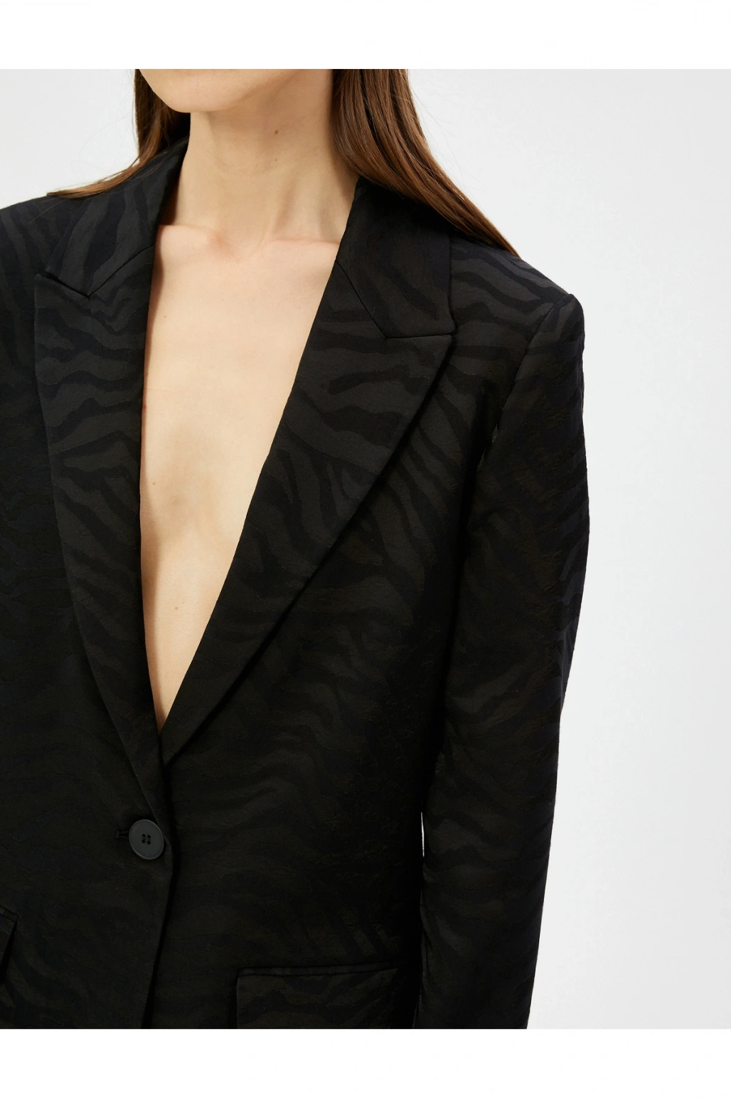Zebra Desenli Oversize Blazer Ceket Tek Düğmeli