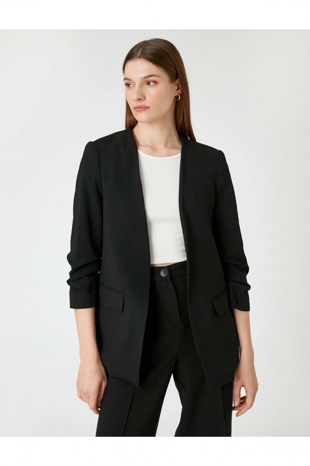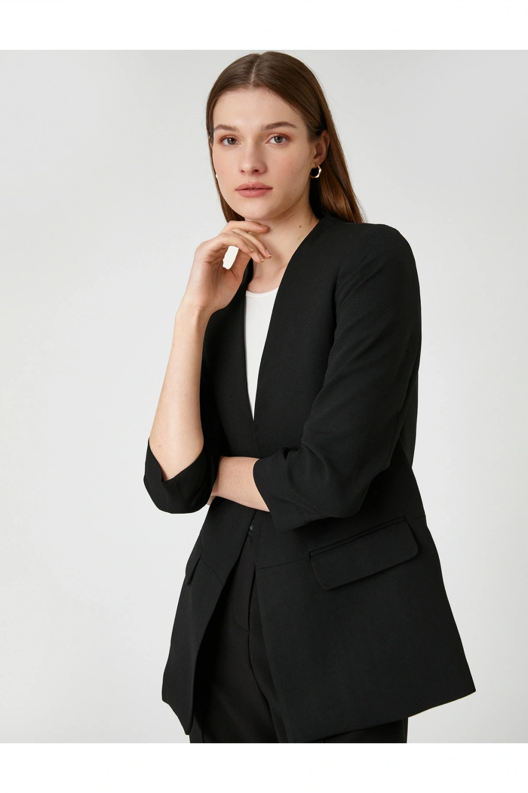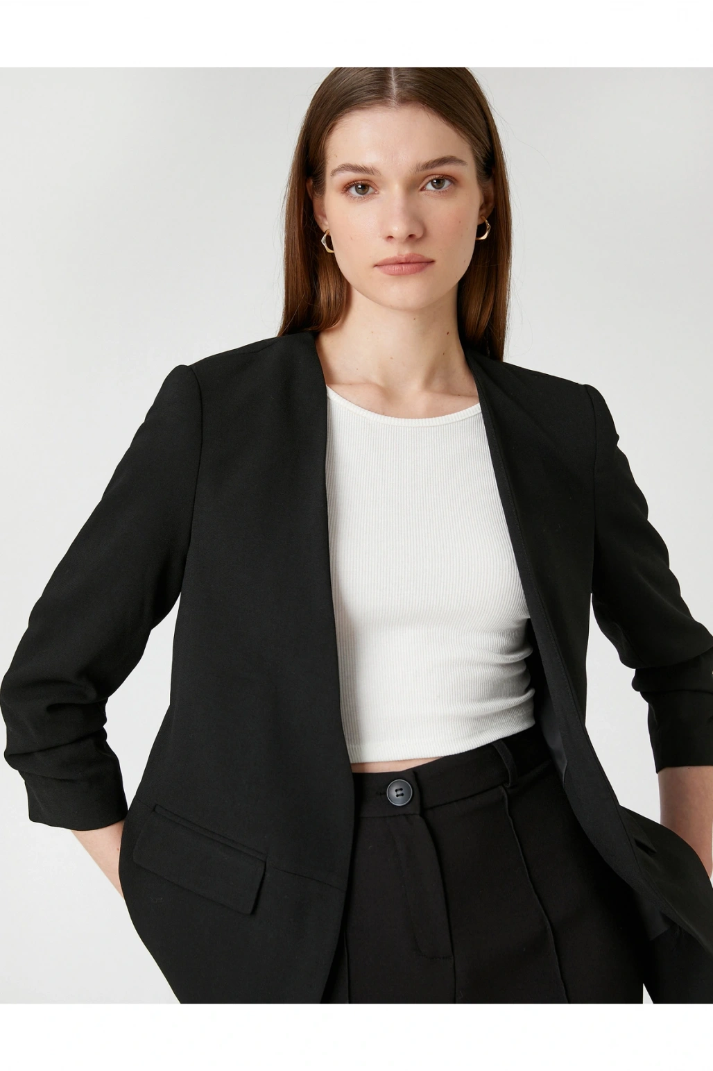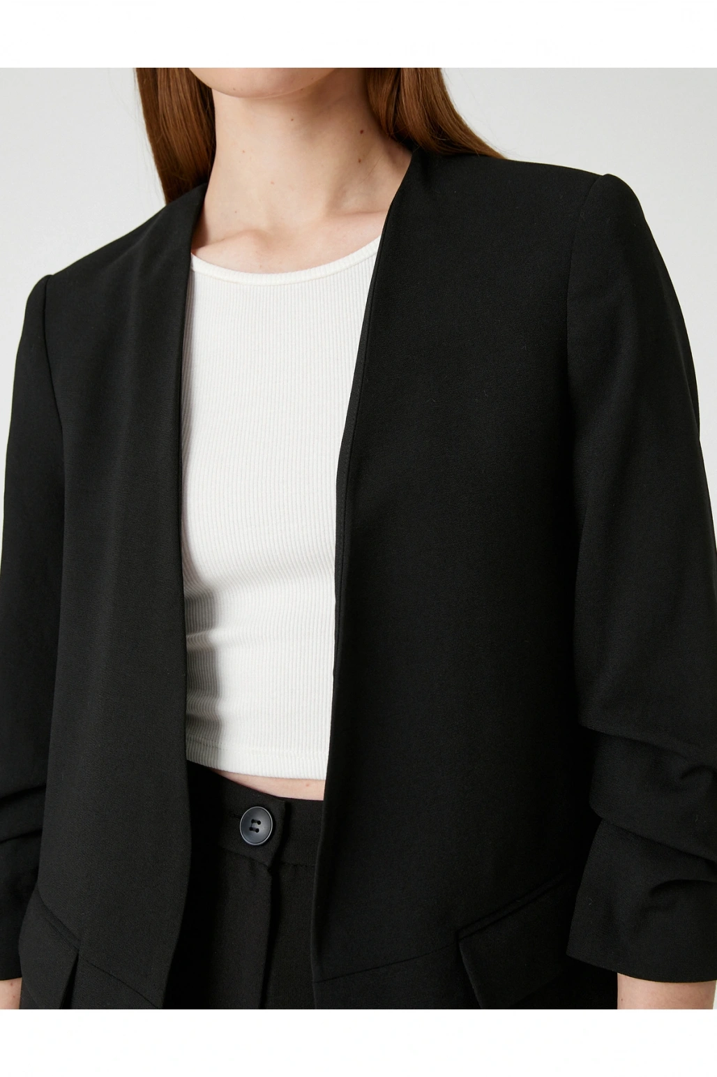 Kol Detaylı Blazer Ceket V Yaka Önü Açık