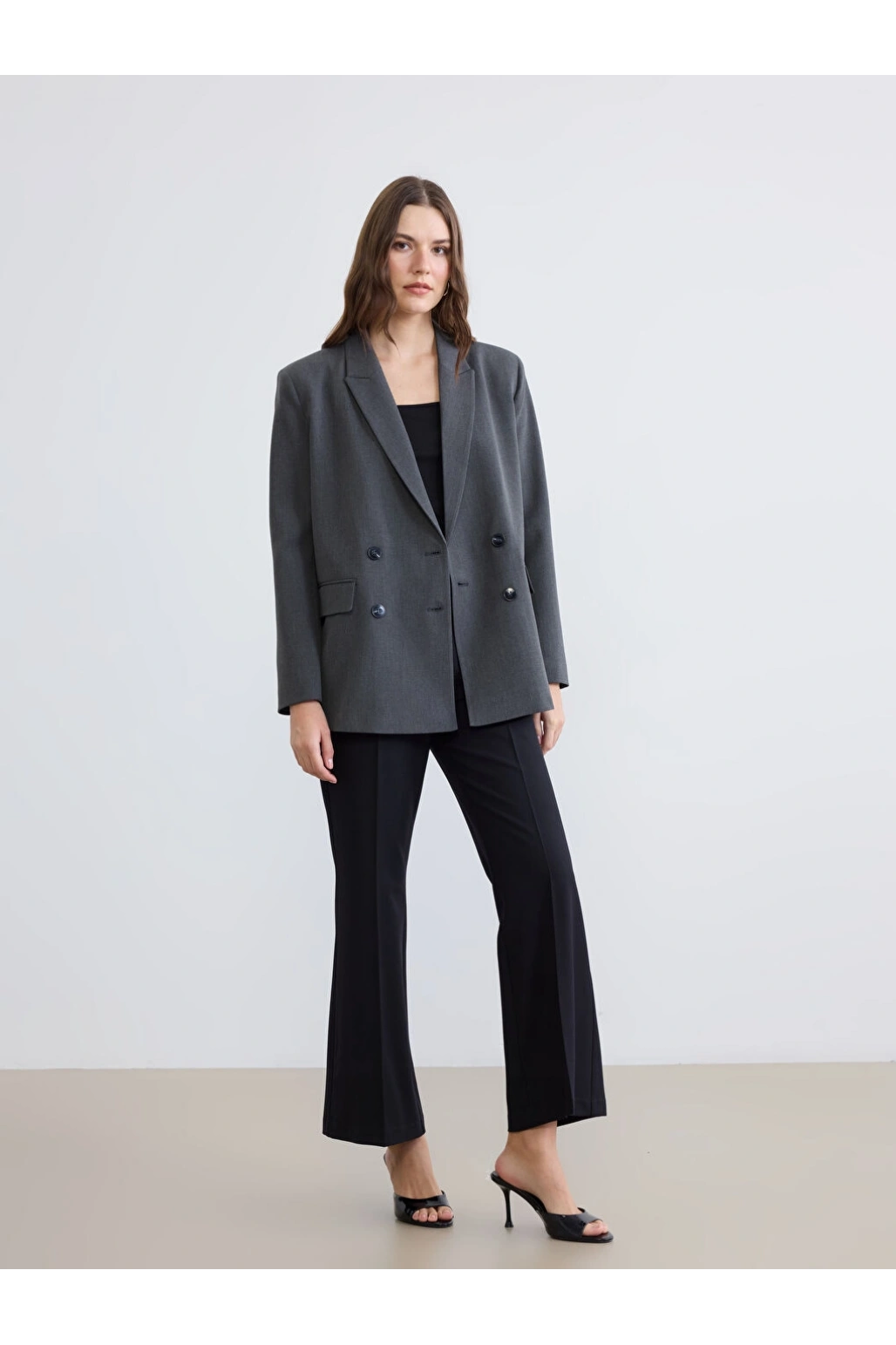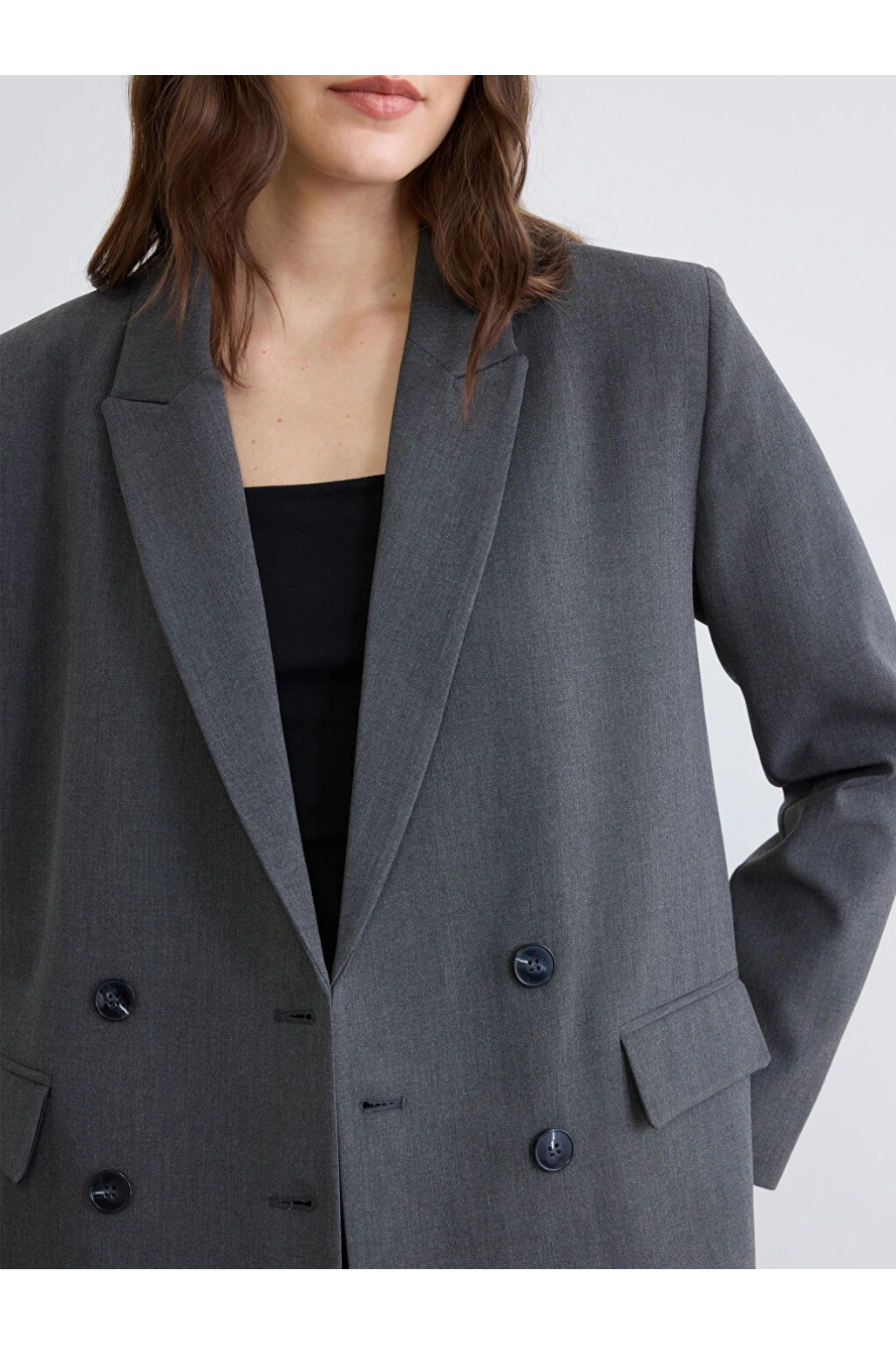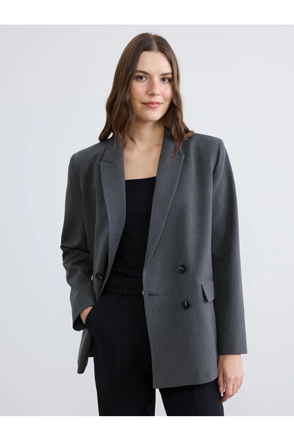 LCWAIKIKI Classic Gri Kruvaze Yaka Kadın Blazer Ceket