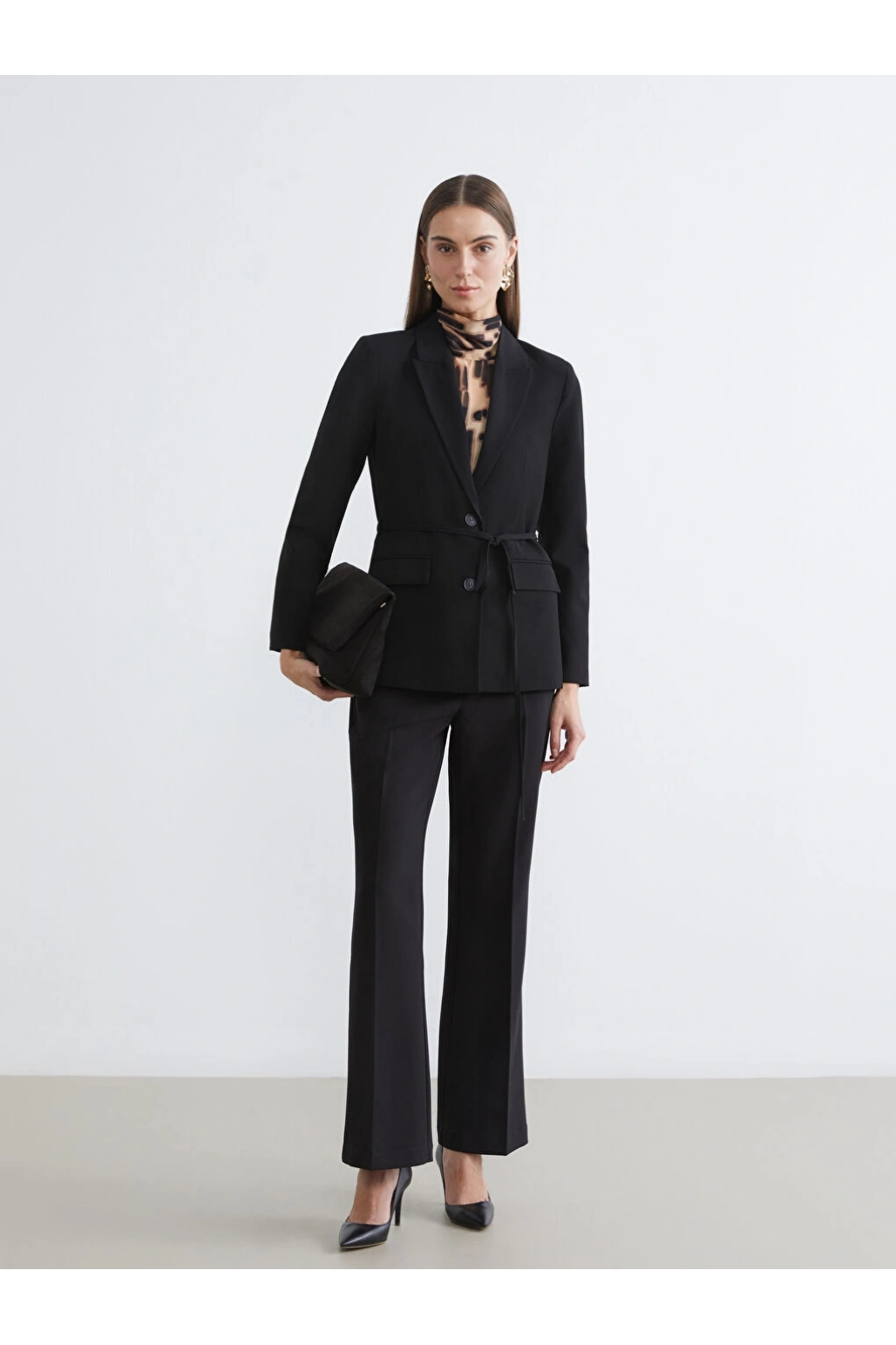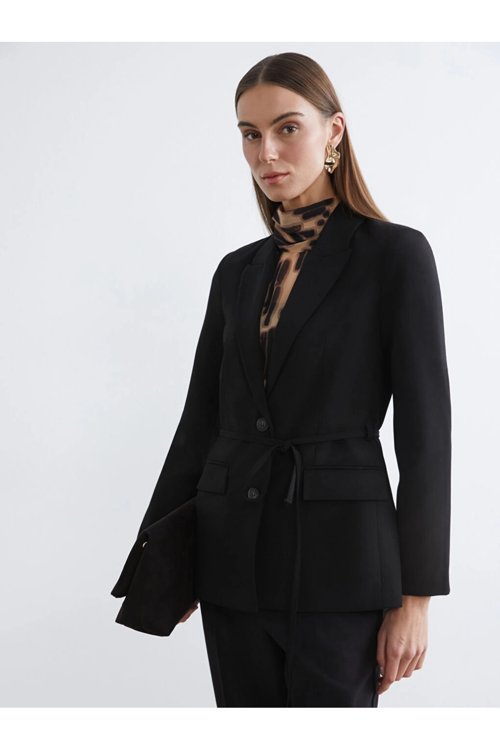 LCWAIKIKI Classic Siyah Beli Kuşaklı Kadın Blazer Ceket