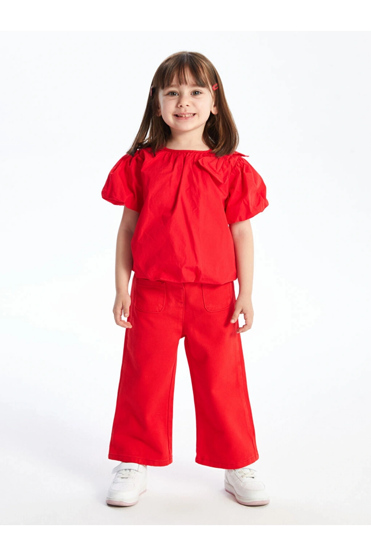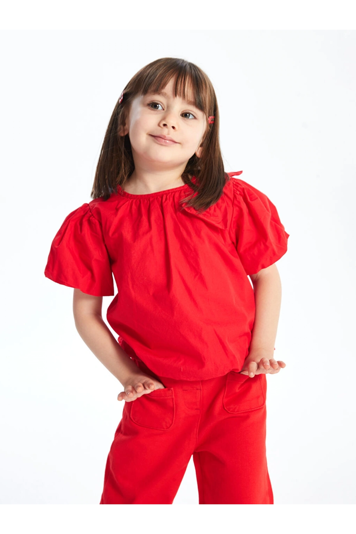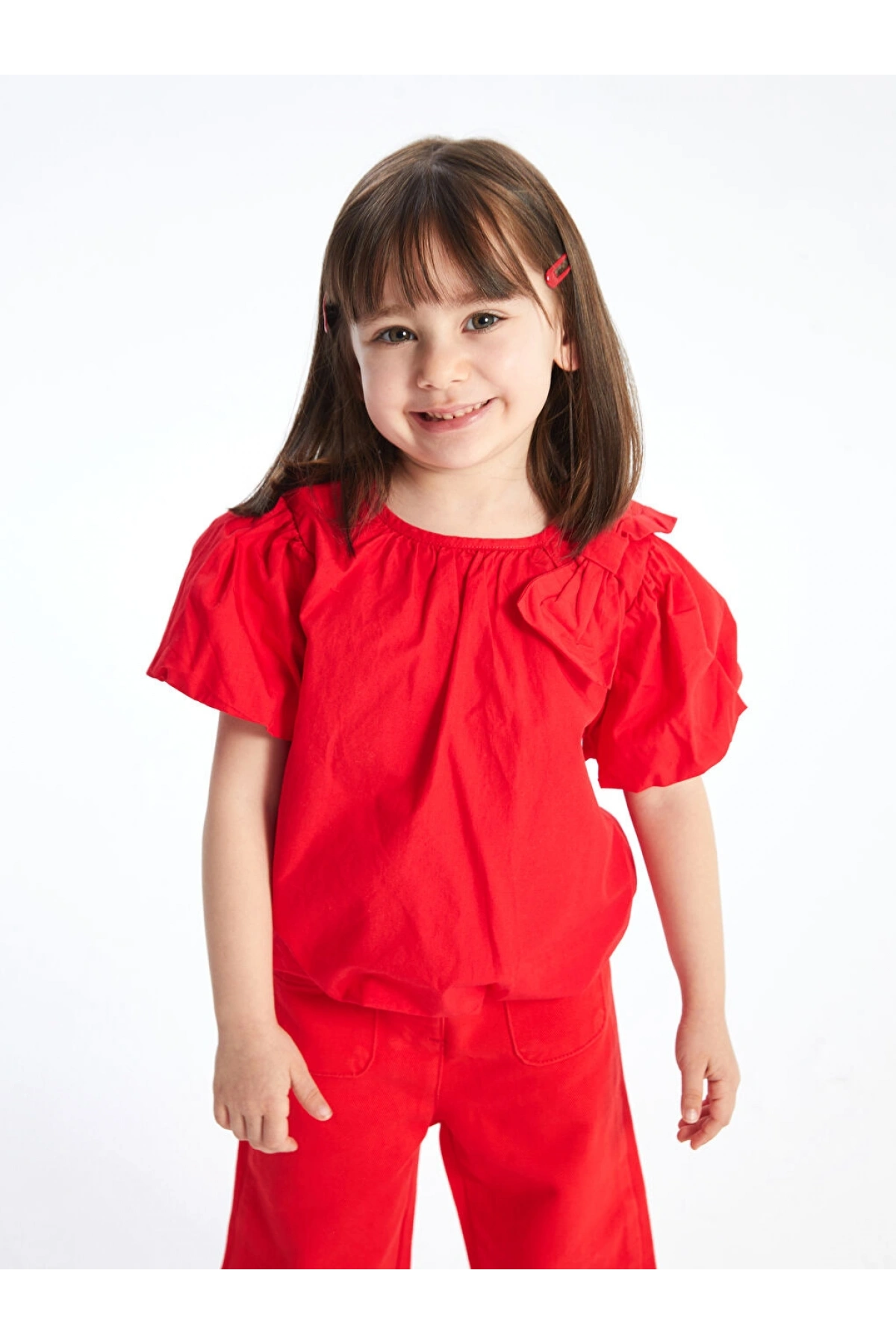 CW Kids Kırmızı Bisiklet Yaka Balon Kollu Kız Çocuk Bluz