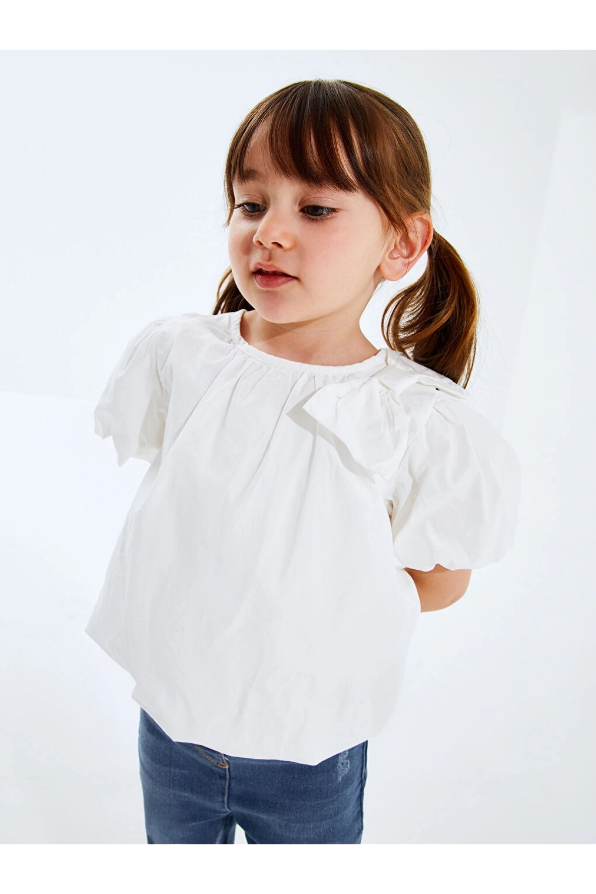 LCW Kids Haki Bisiklet Yaka Fiyonk Detaylı Kız Çocuk Bluz