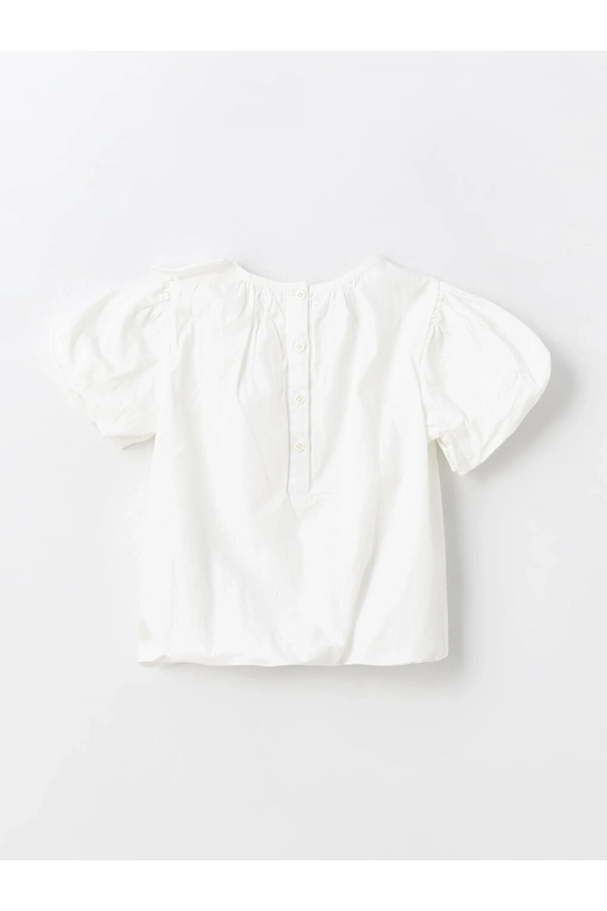 LCW Kids Beyaz Bisiklet Yaka Brodeli Penye Kız Çocuk Bluz
