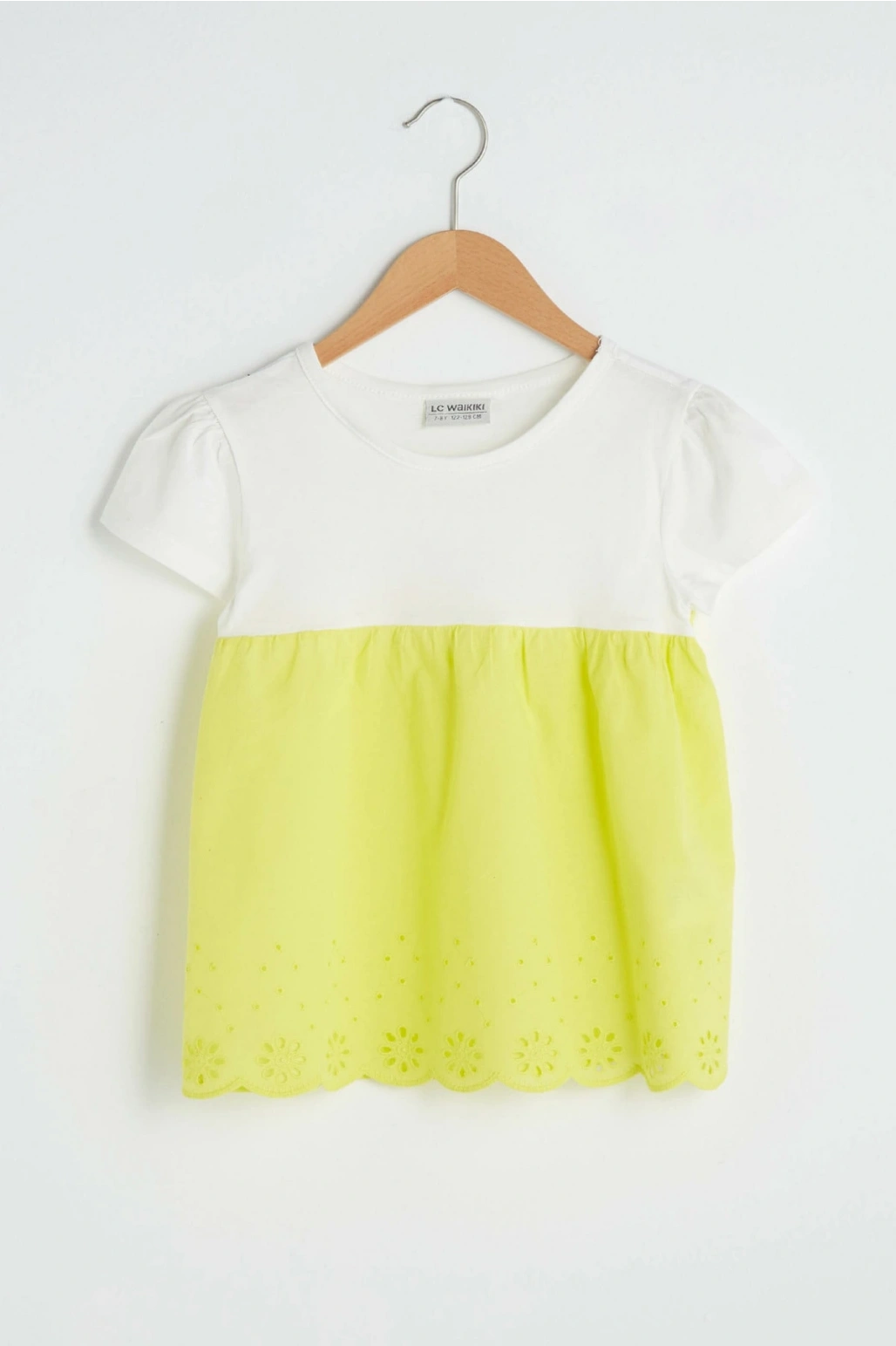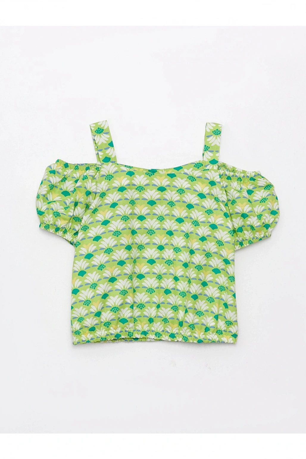 Kare Yaka Desenli Kısa Kollu Kız Çocuk Bluz