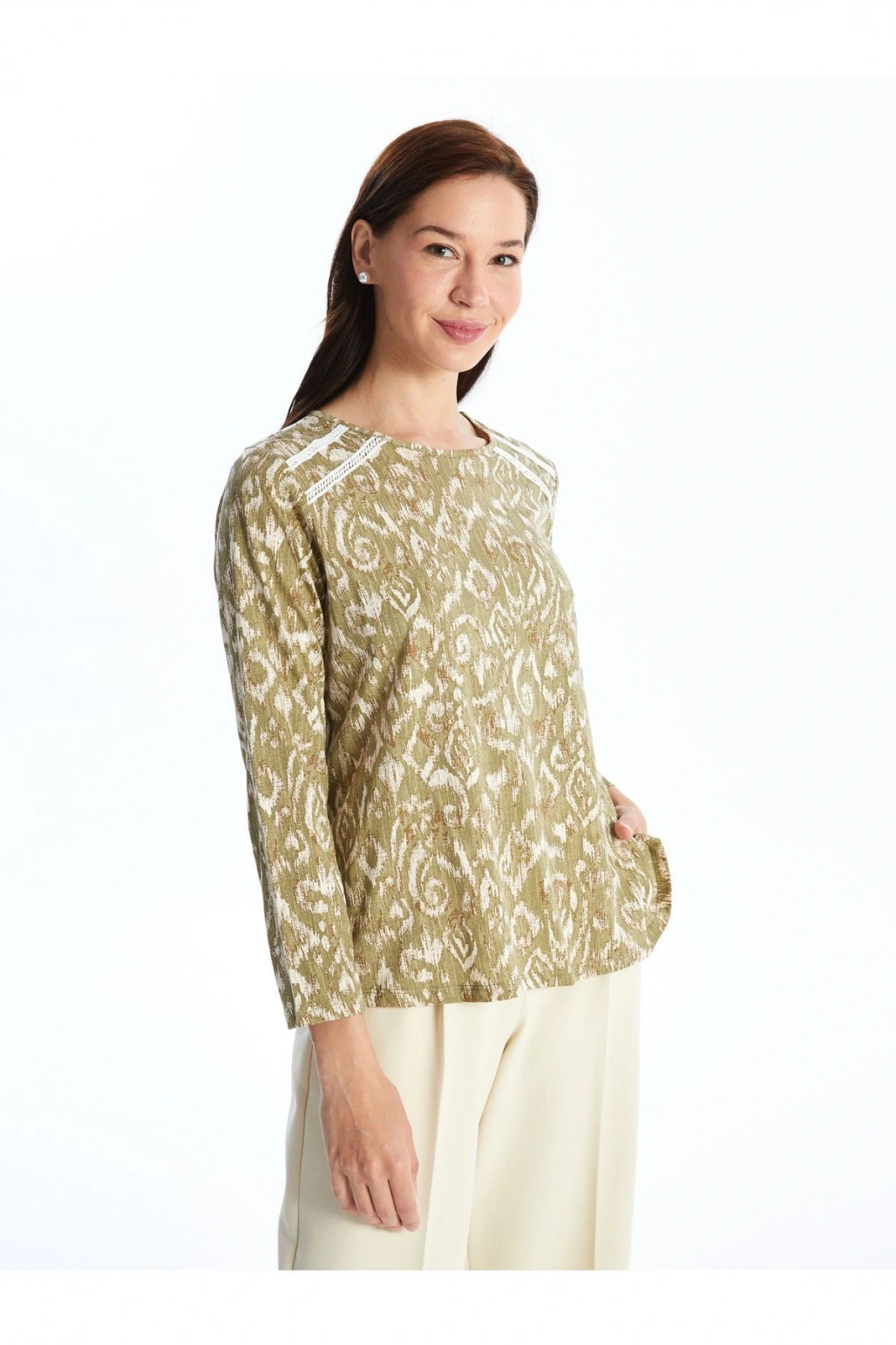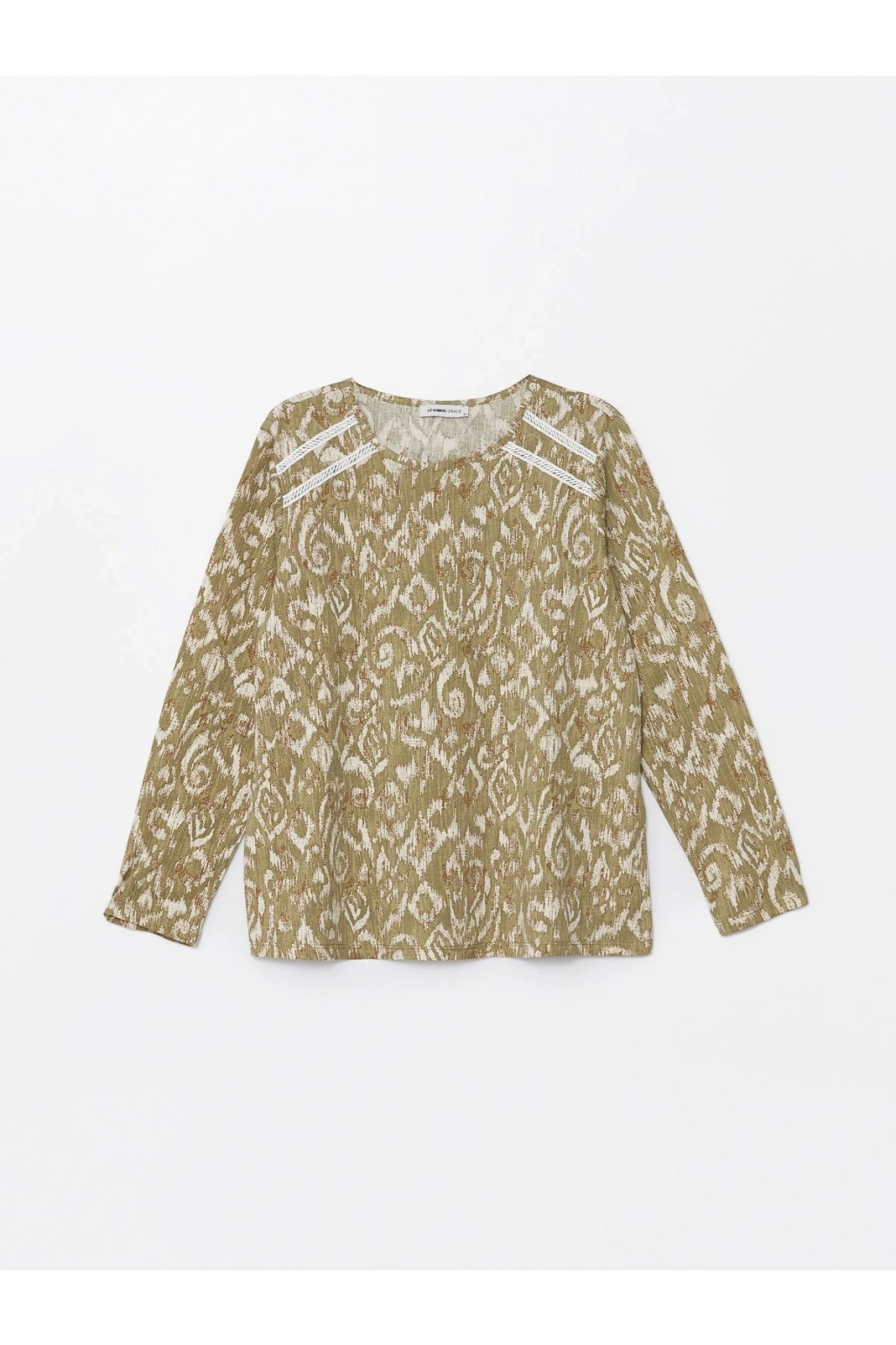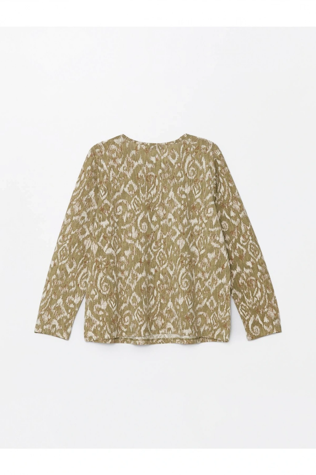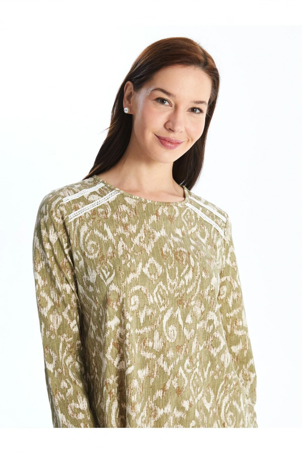 Kaçık Yaka Desenli Uzun Kollu Kadın Bluz