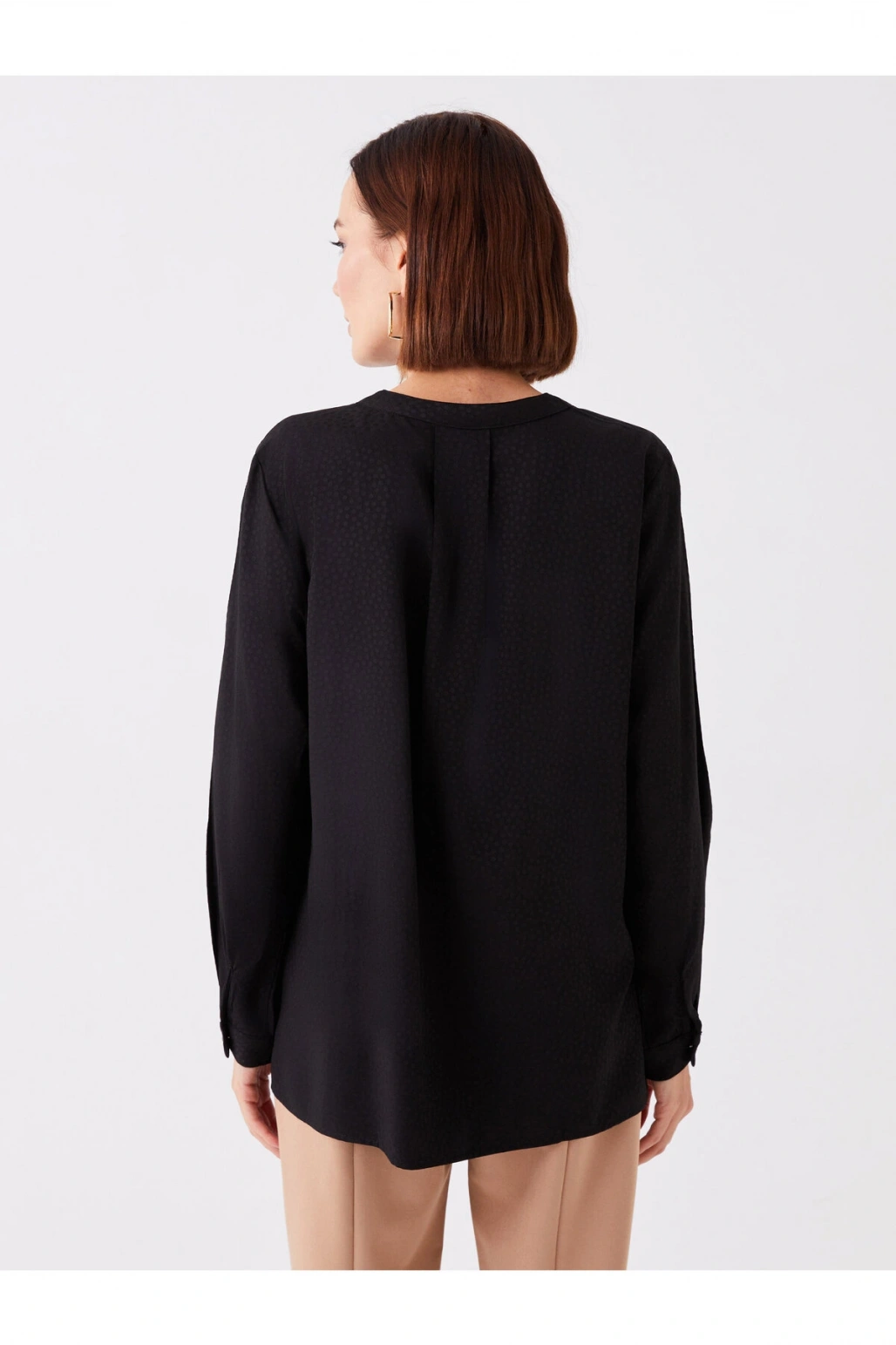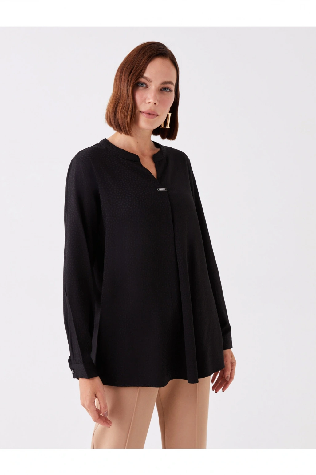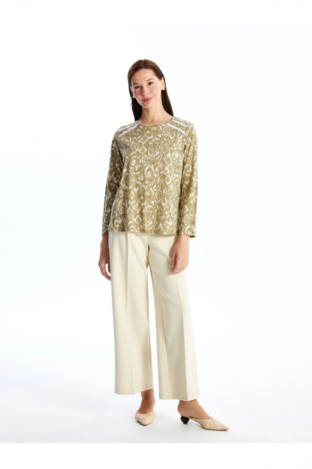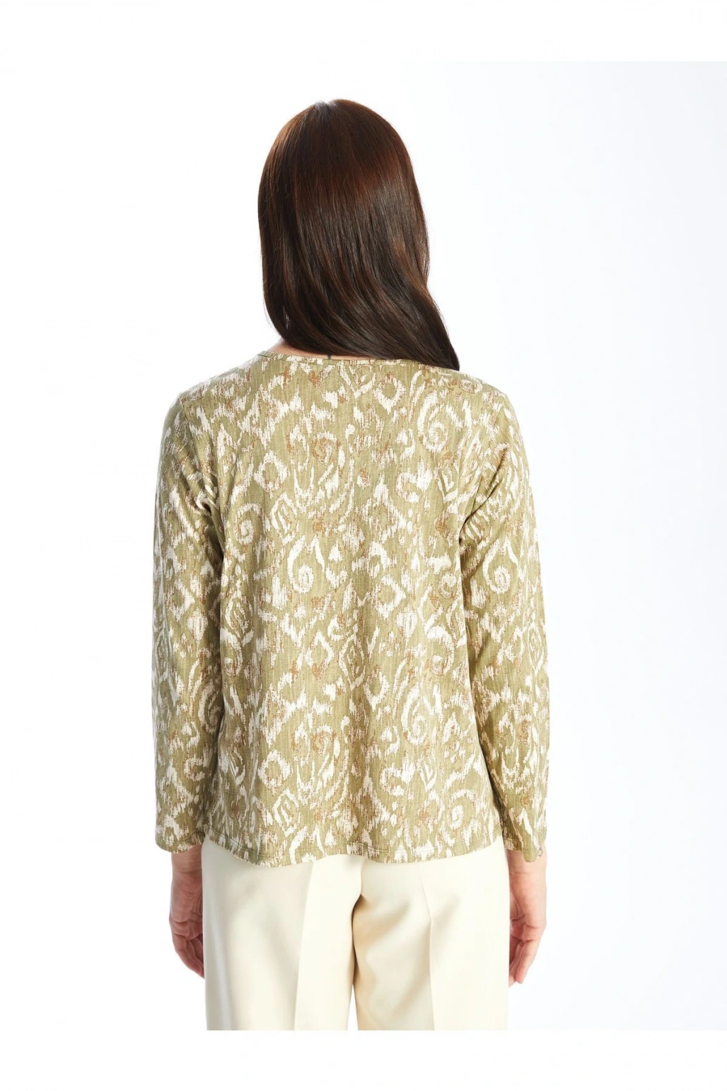 Kaçık Yaka Desenli Uzun Kollu Kadın Bluz