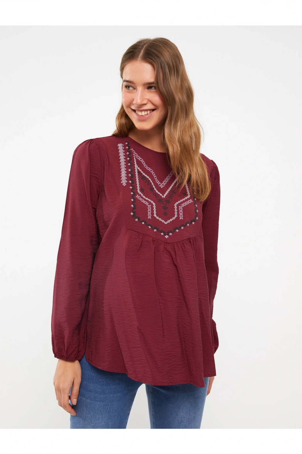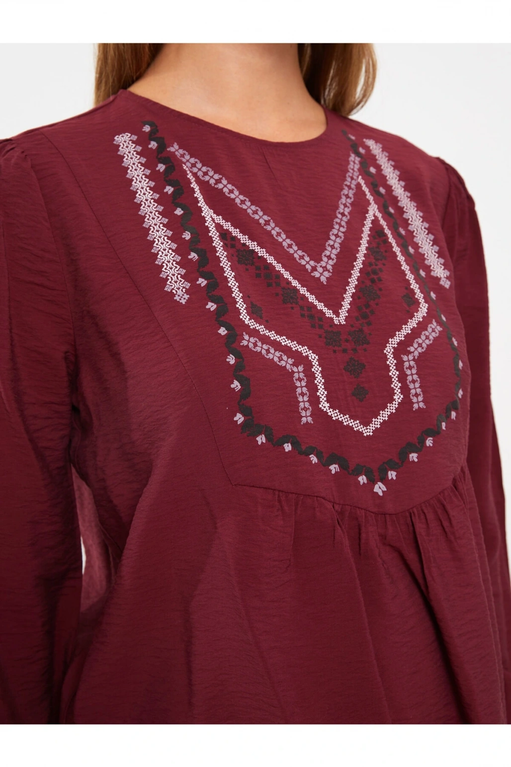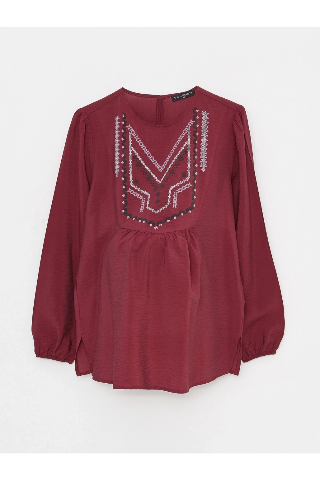 Bisiklet Yaka Nakışlı Uzun Kollu Hamile Bluz