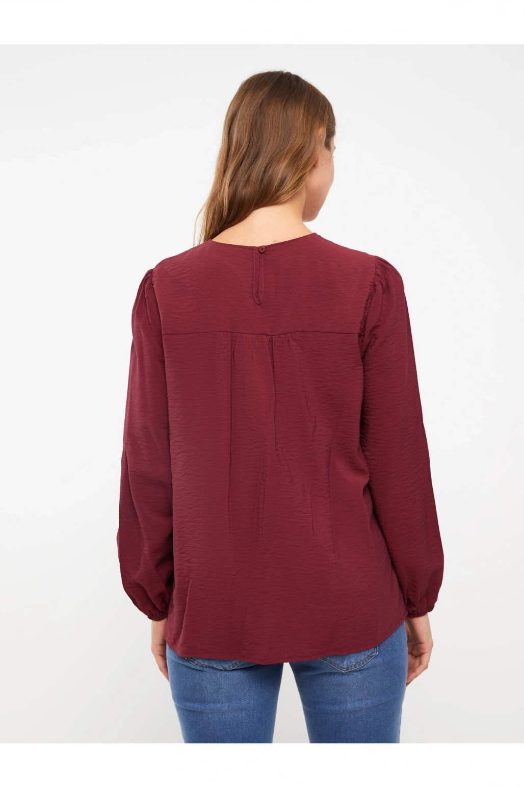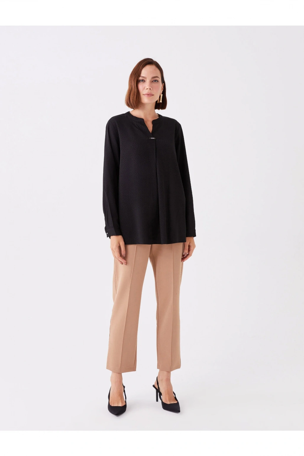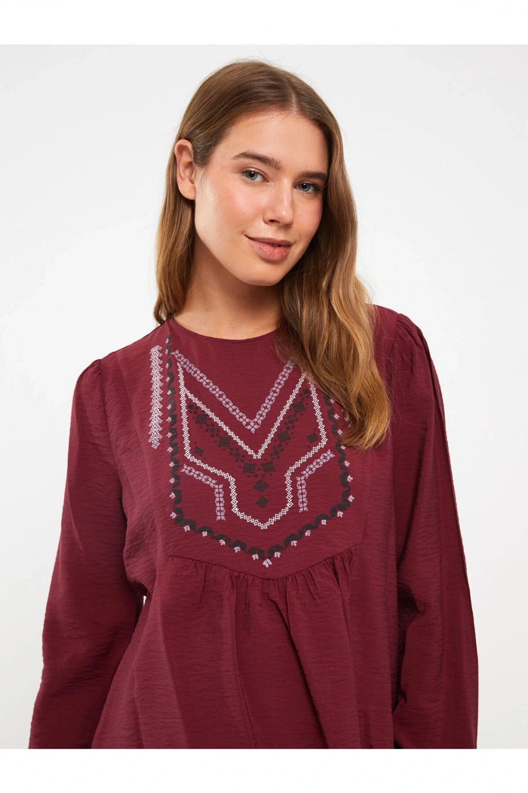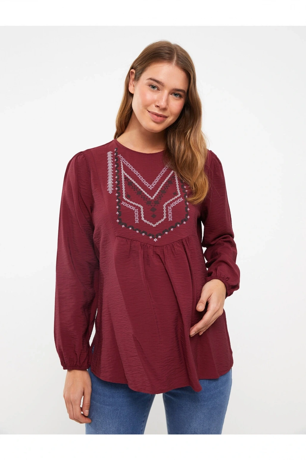 Bisiklet Yaka Nakışlı Uzun Kollu Hamile Bluz