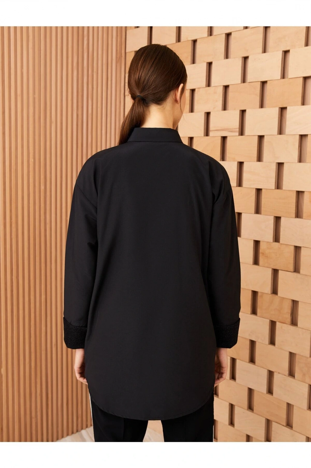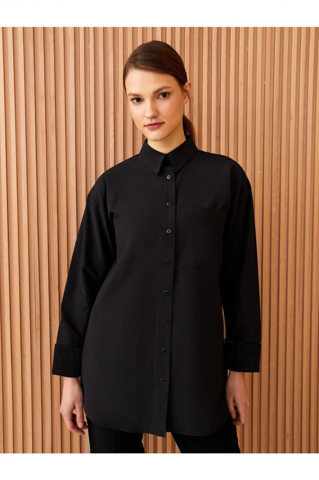 Gömlek Yaka Düz Uzun Kollu Oversize Poplin Kadın Tunik