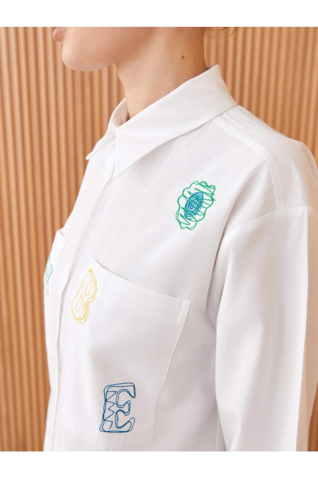 Gömlek Yaka Nakışlı Uzun Kollu Kadın Poplin Tunik