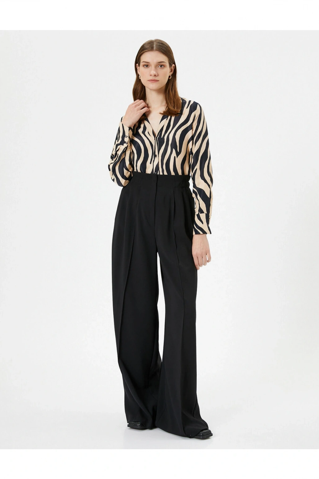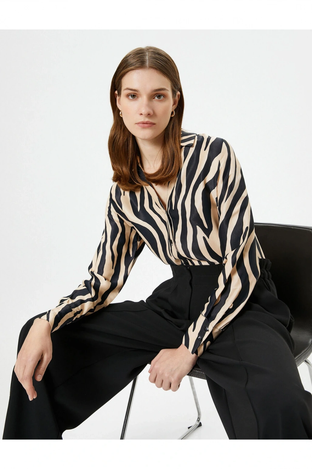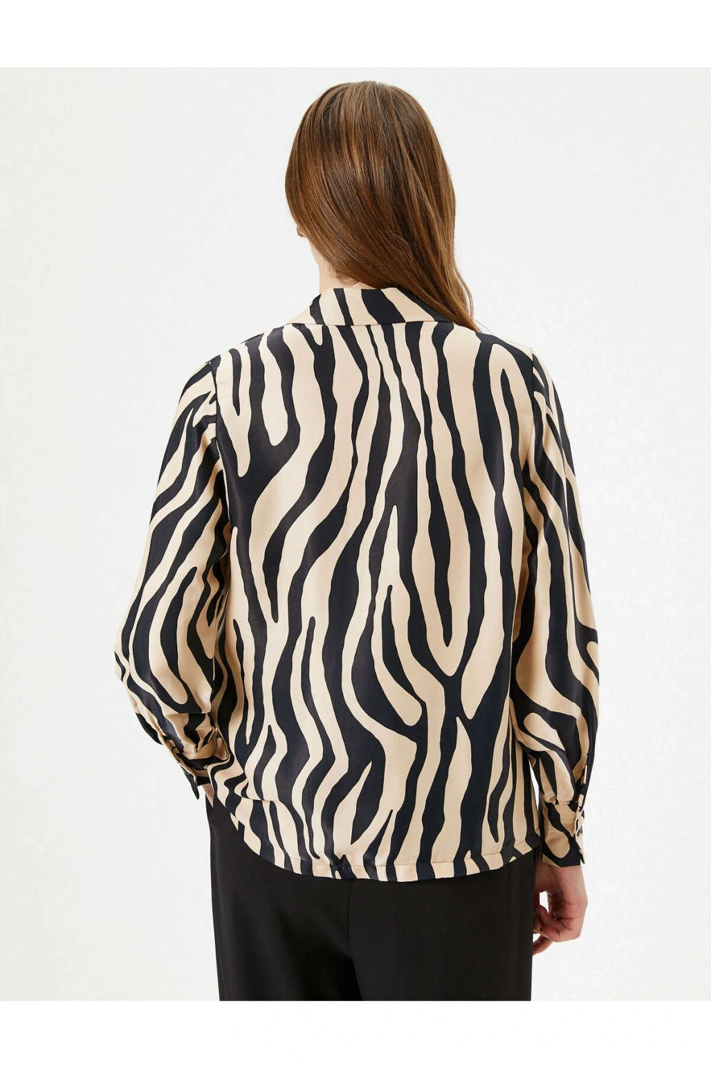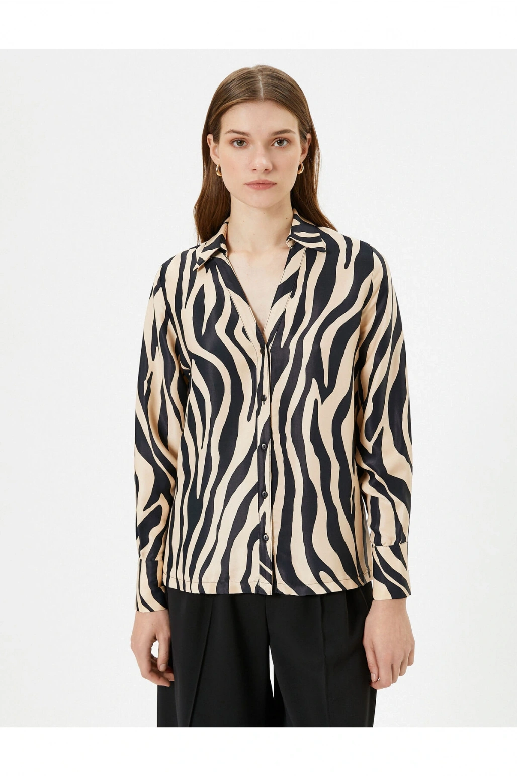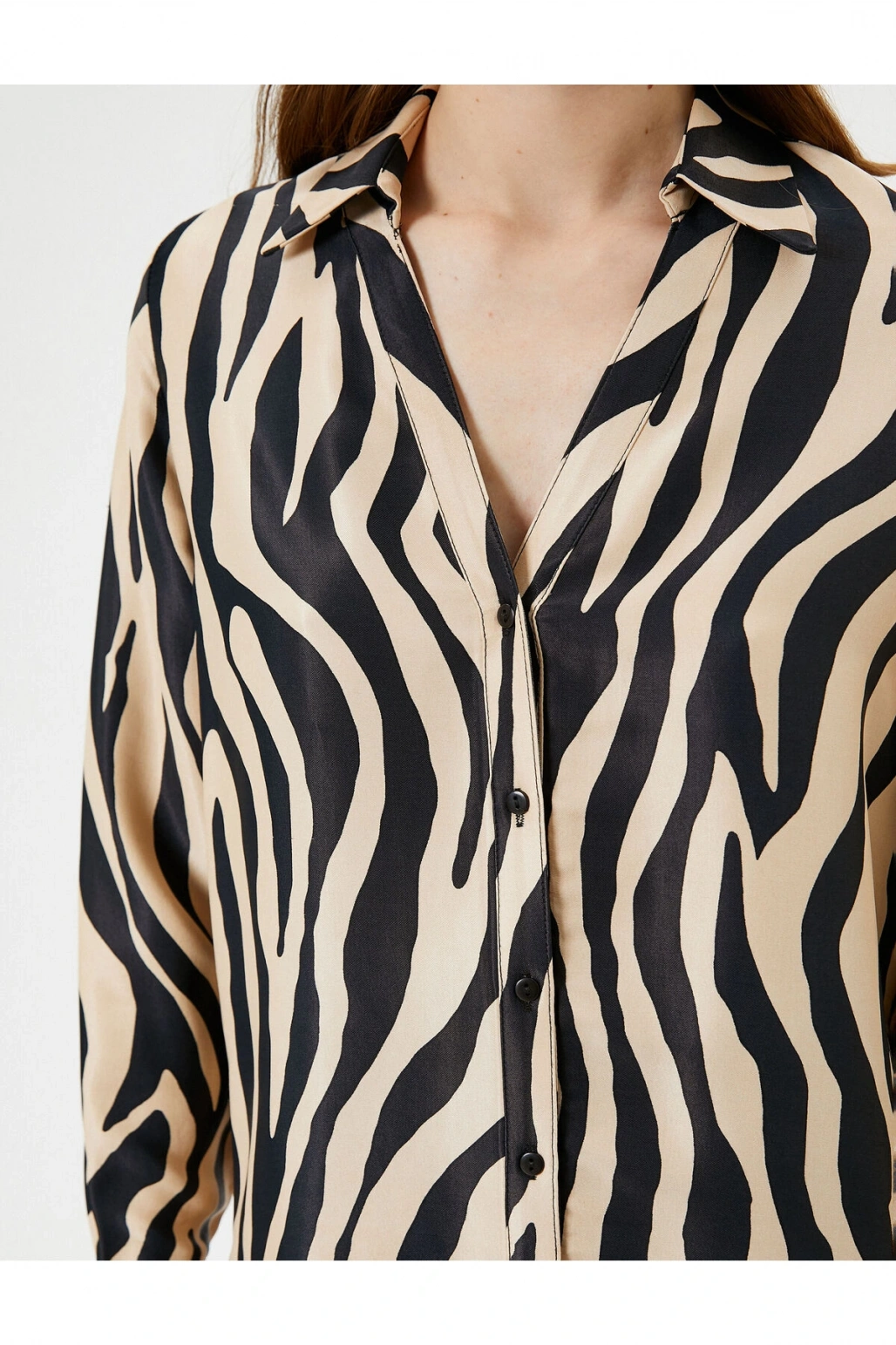 Zebra Desenli Gömlek Saten Düğmeli Klasik Yaka Regular Fit