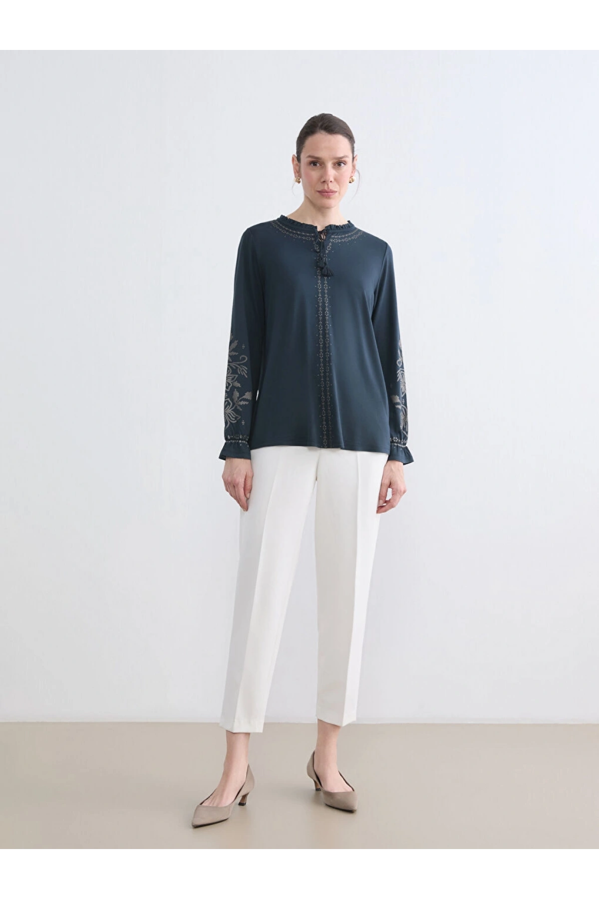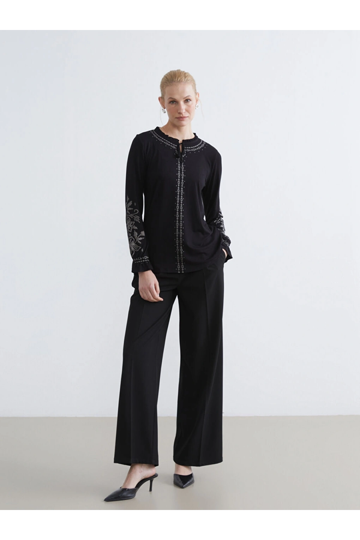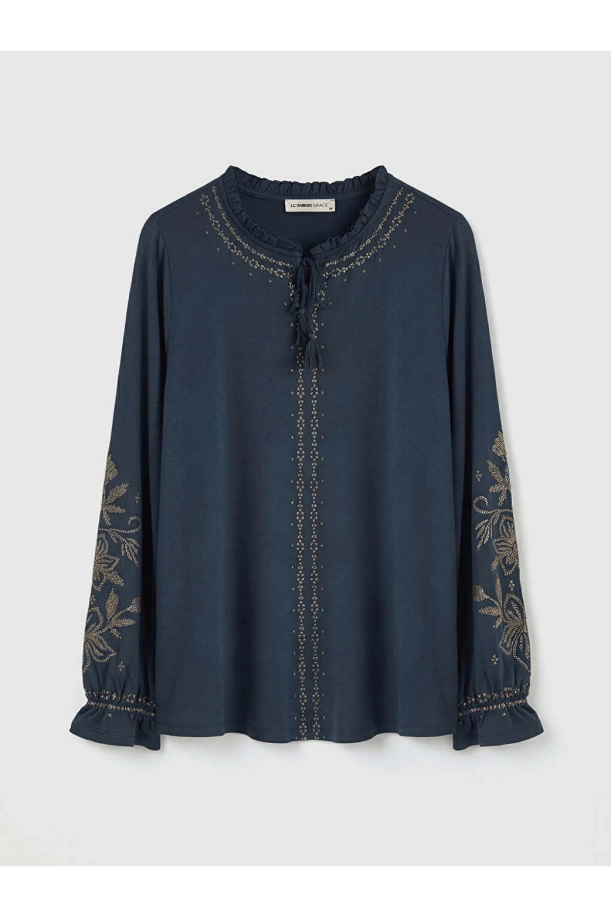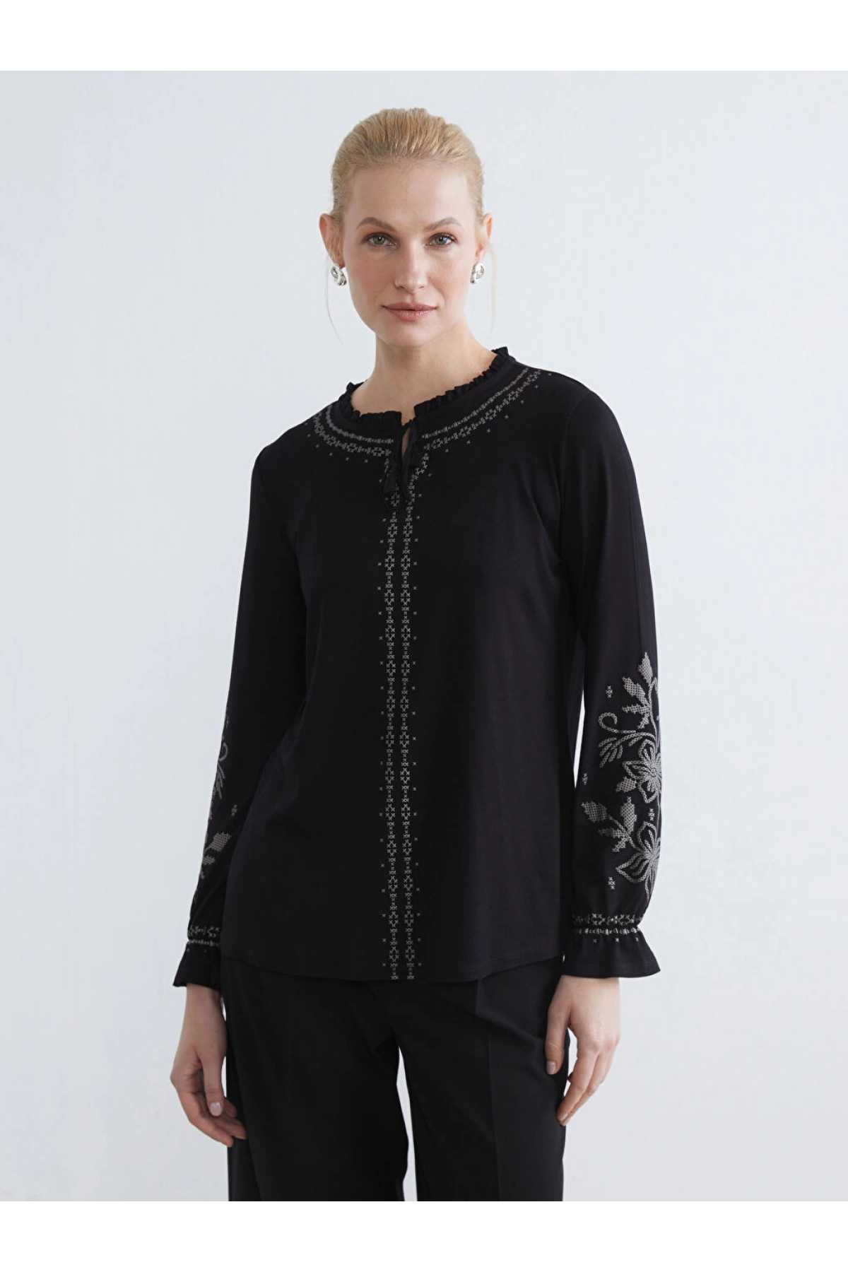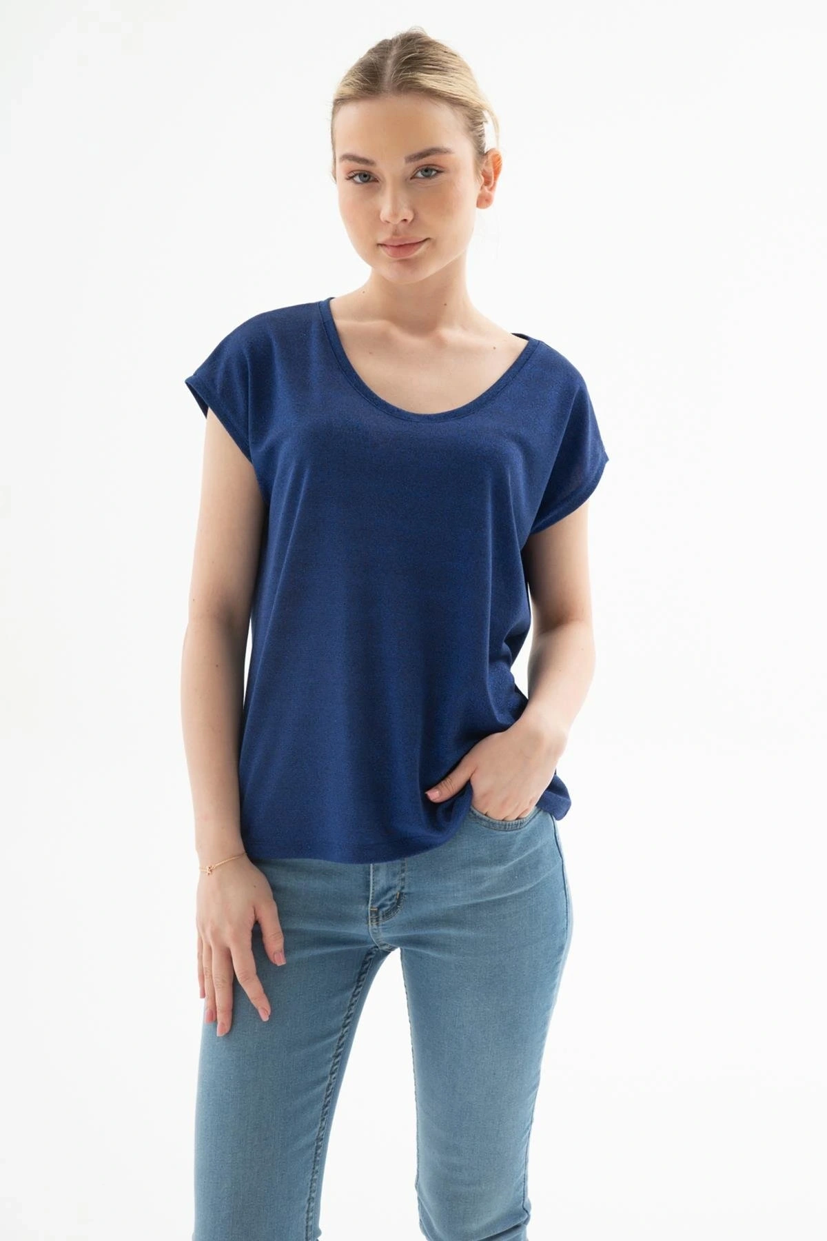 Standart Fit Yuvarlak Yaka Simli Bluz BLUZ 25Y0202K1