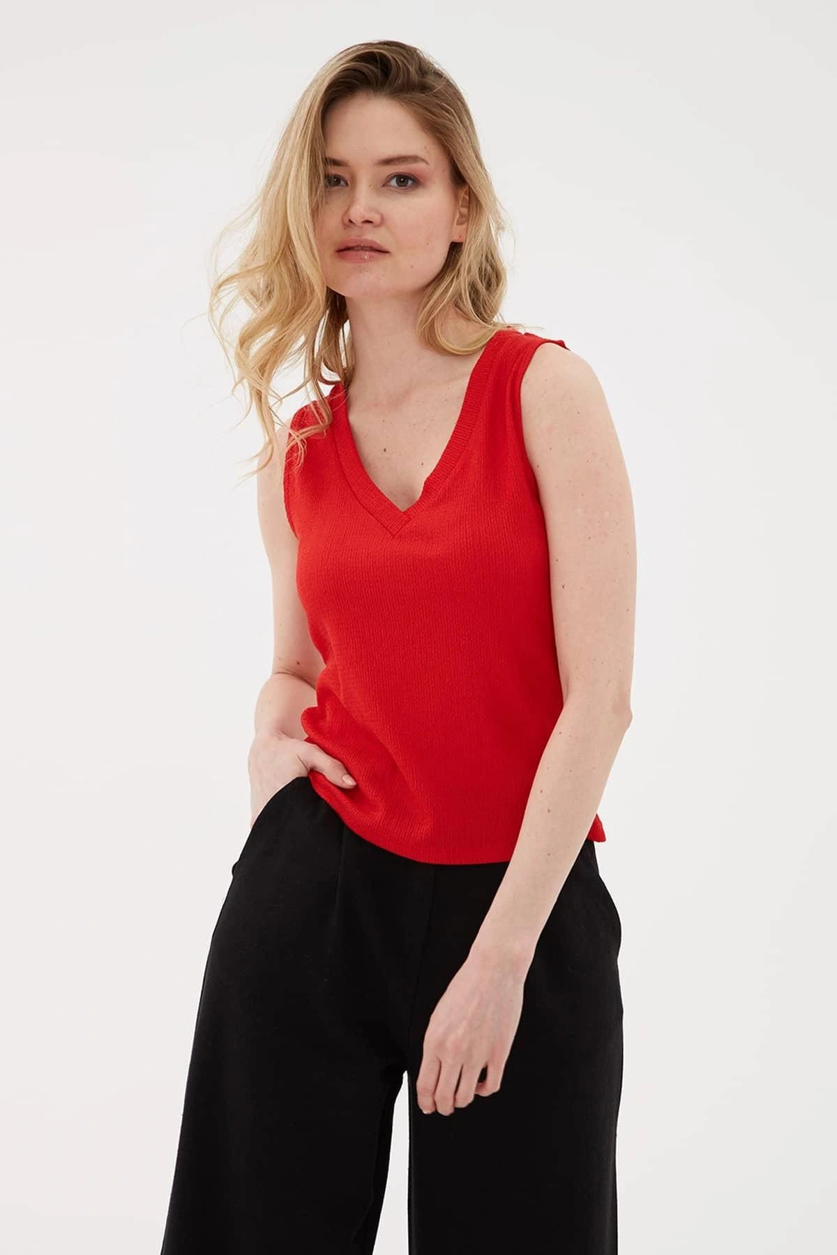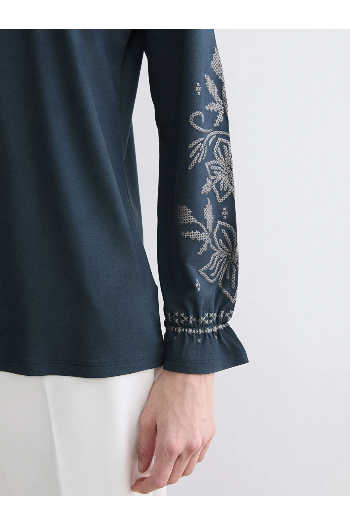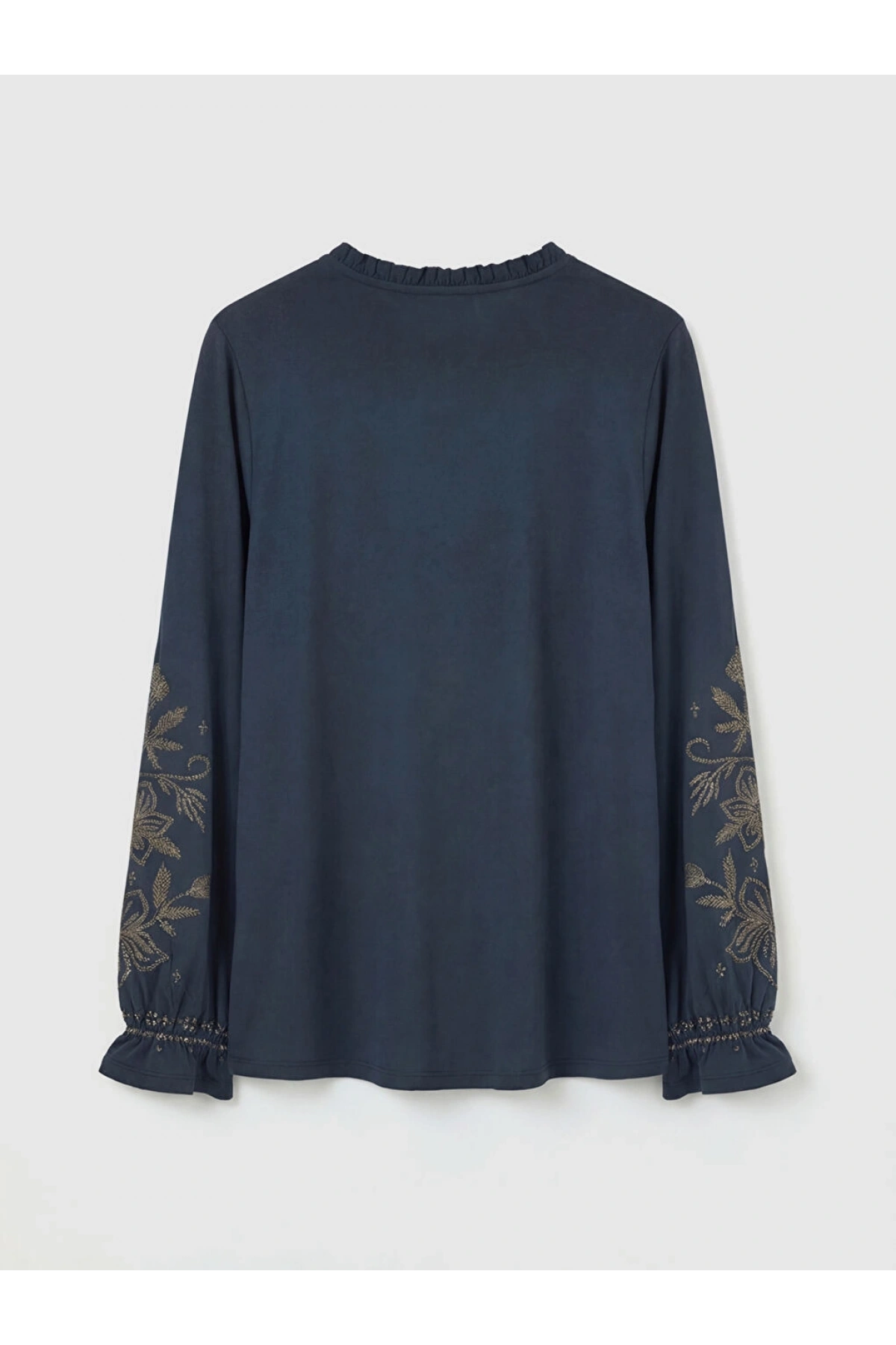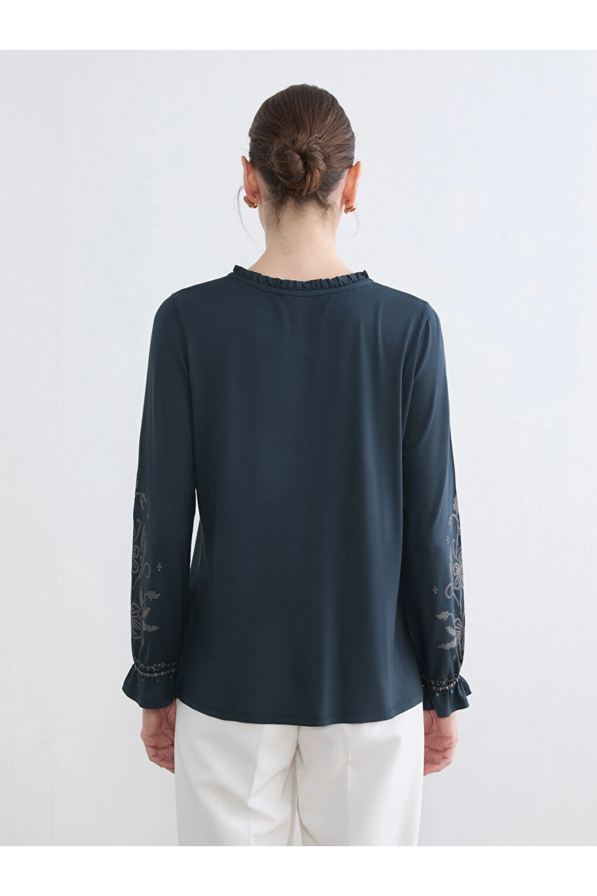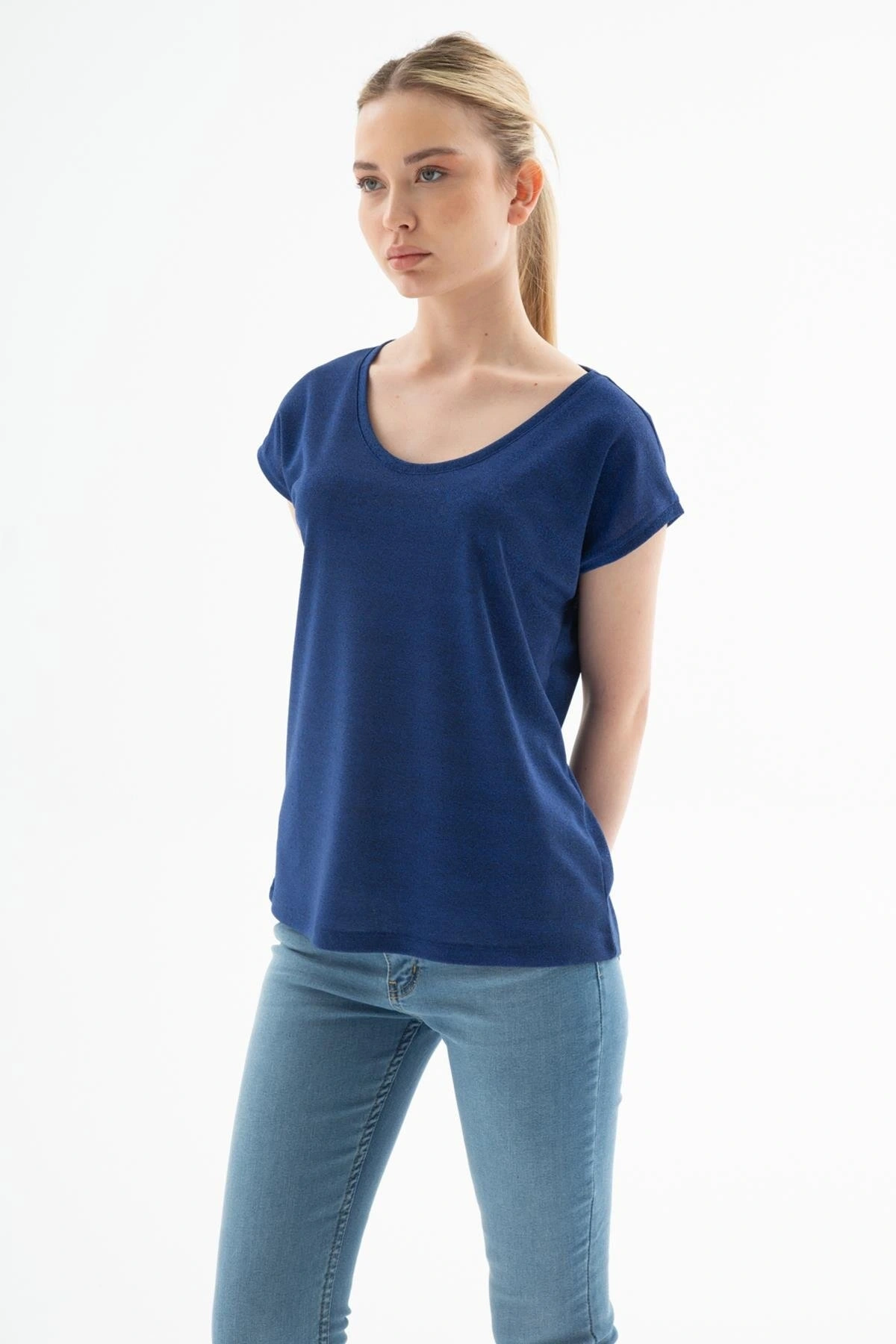 Standart Fit Yuvarlak Yaka Simli Bluz BLUZ 25Y0202K1