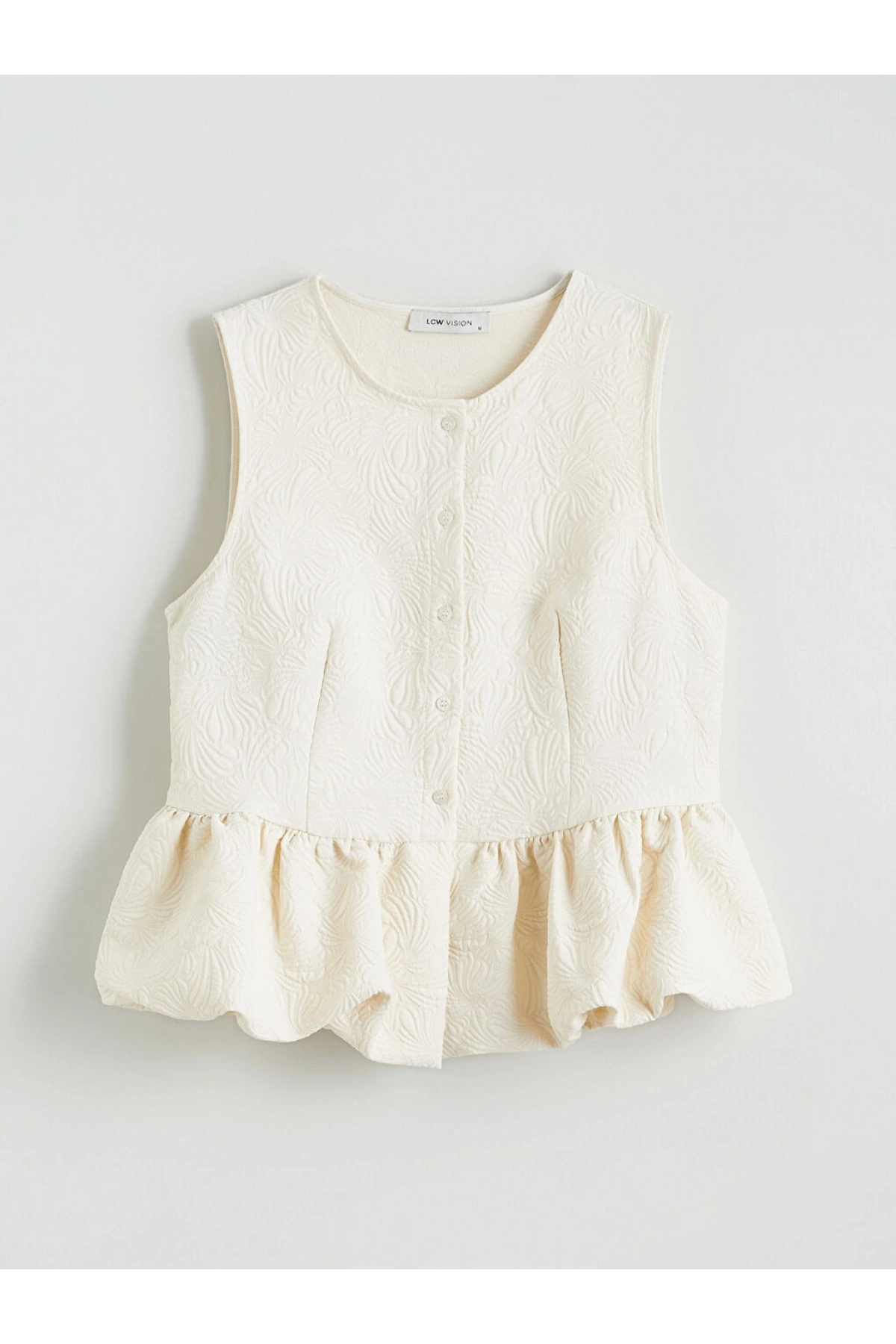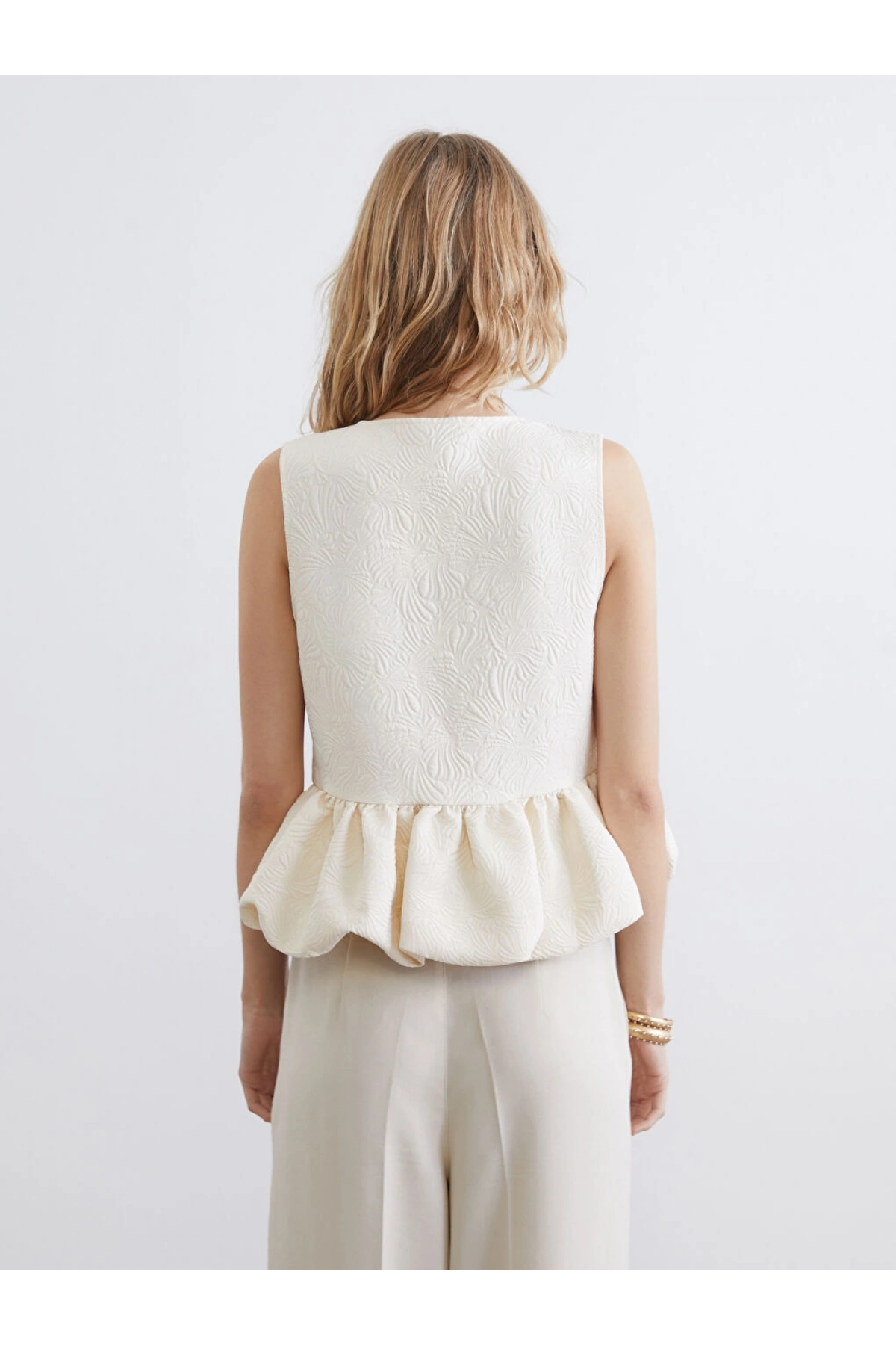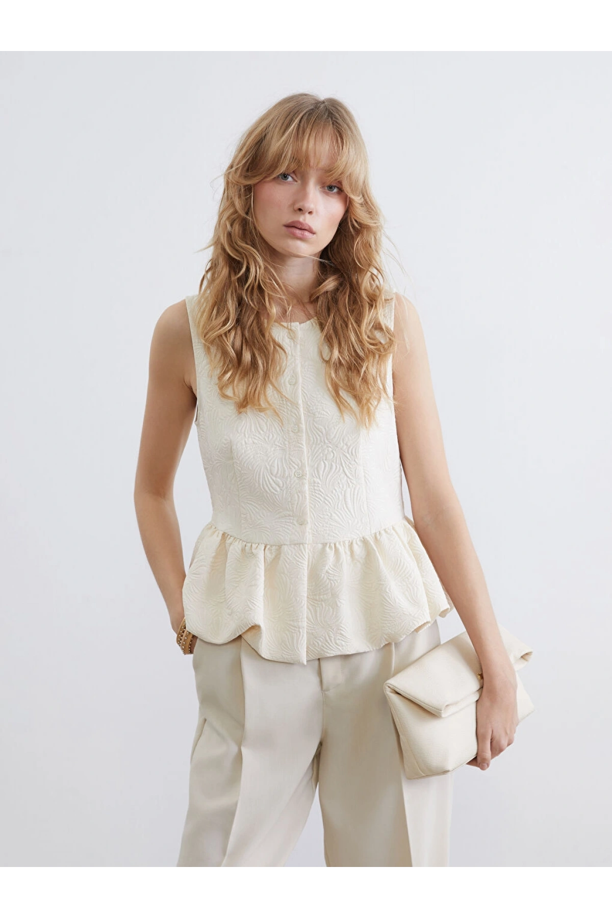 LCW Vision Ekru Bisiklet Yaka Desenli Fırfırlı Bluz