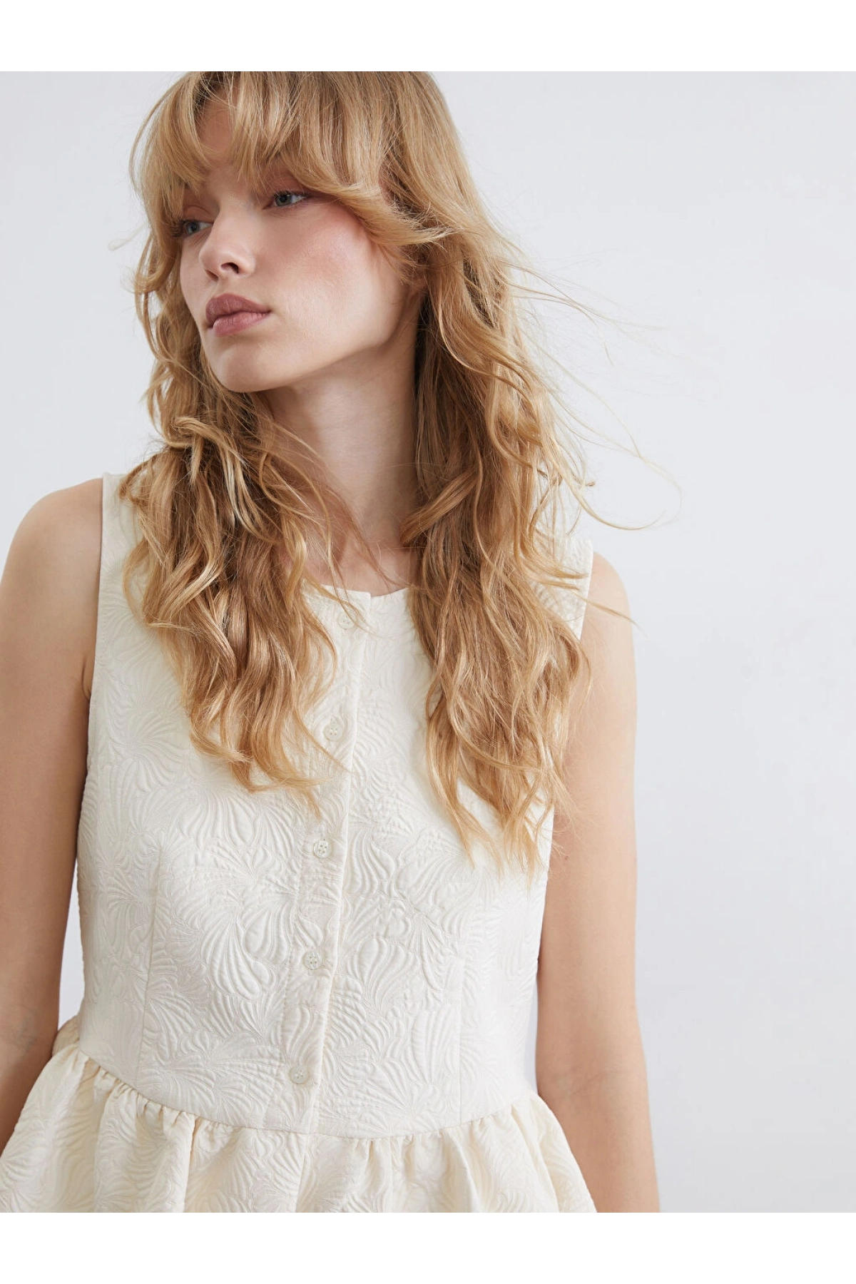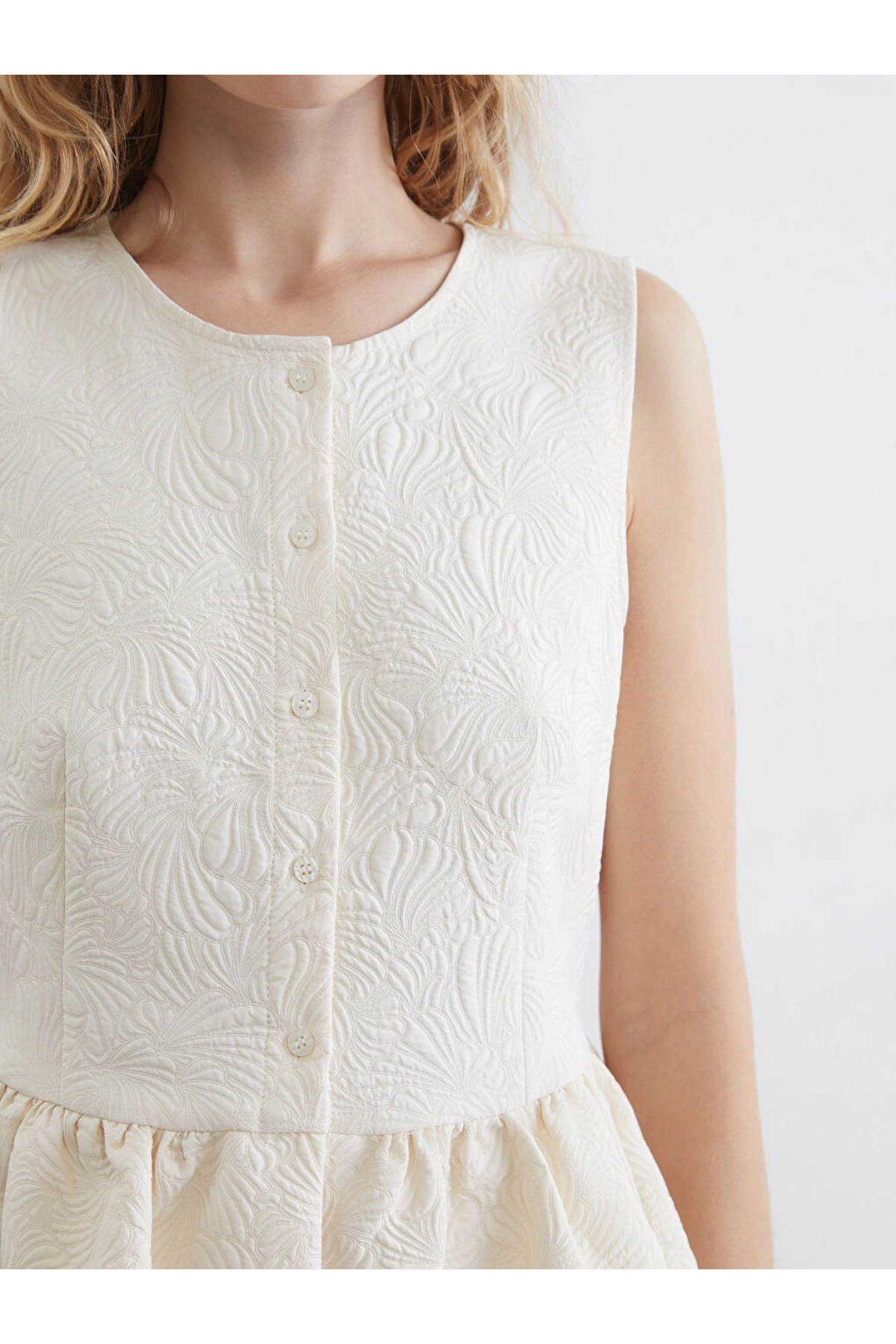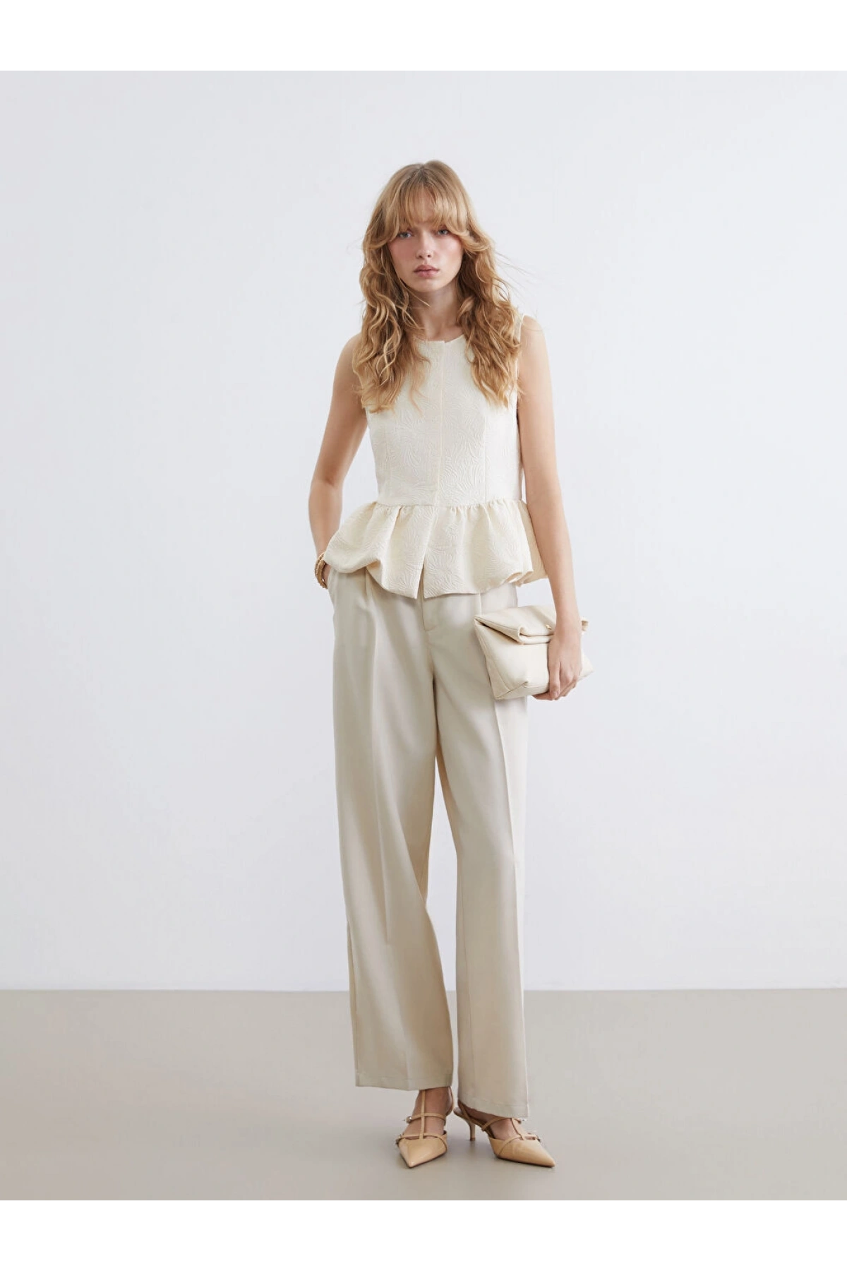 LCW Vision Ekru Bisiklet Yaka Desenli Fırfırlı Bluz