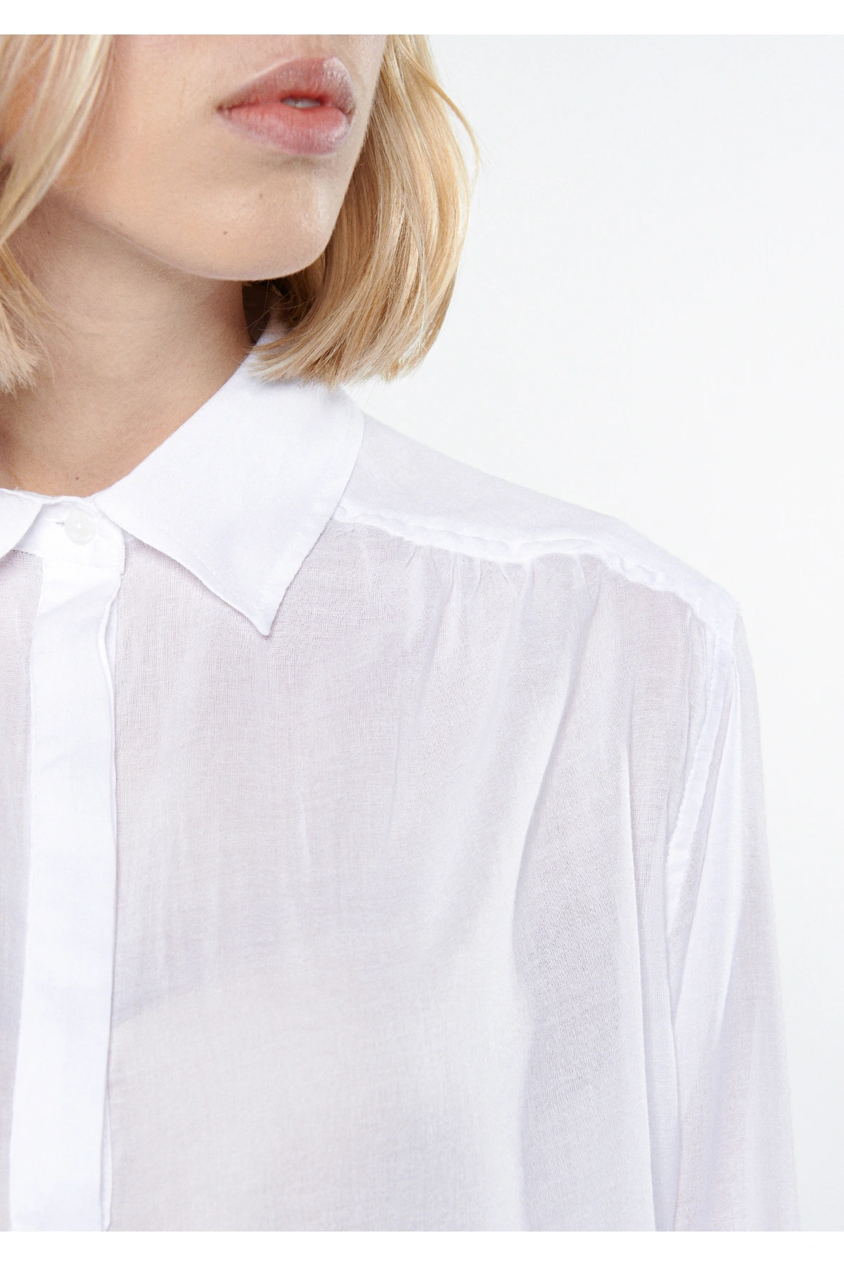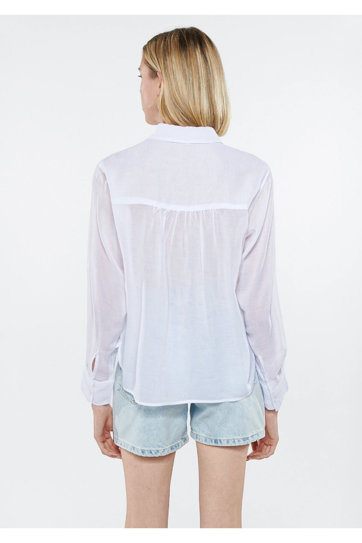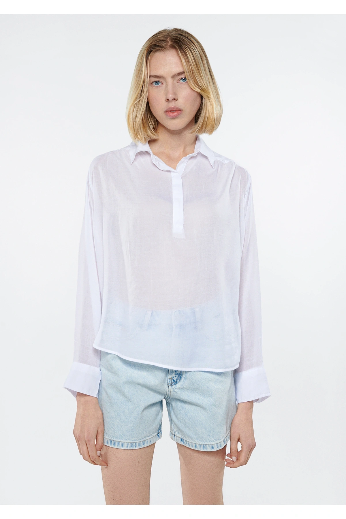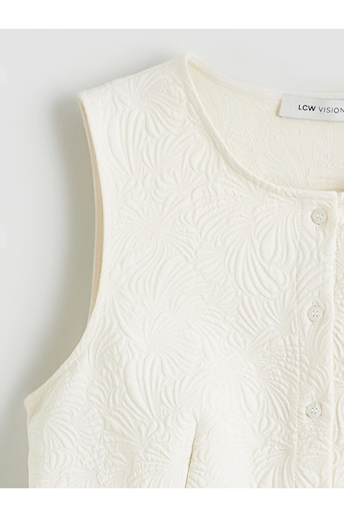 LCW Vision Beyaz Bisiklet Yaka Kendinden Desenli Kısa Kollu Kadın Bluz