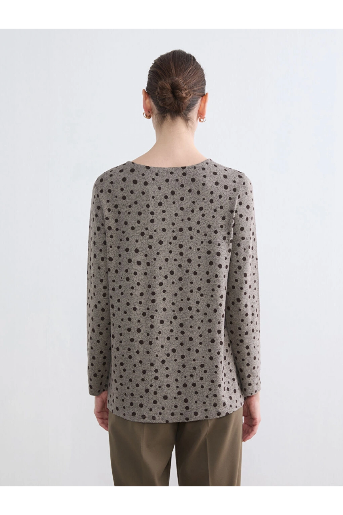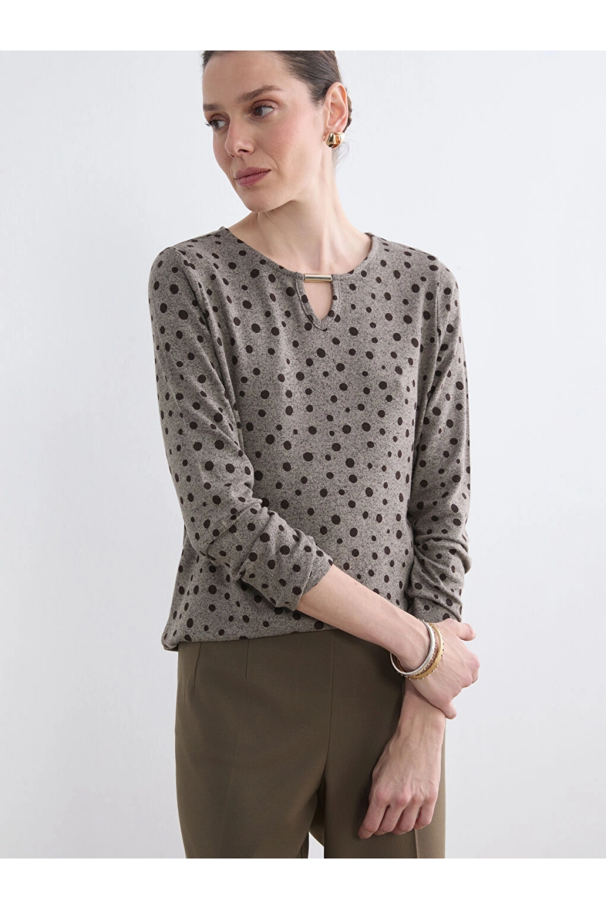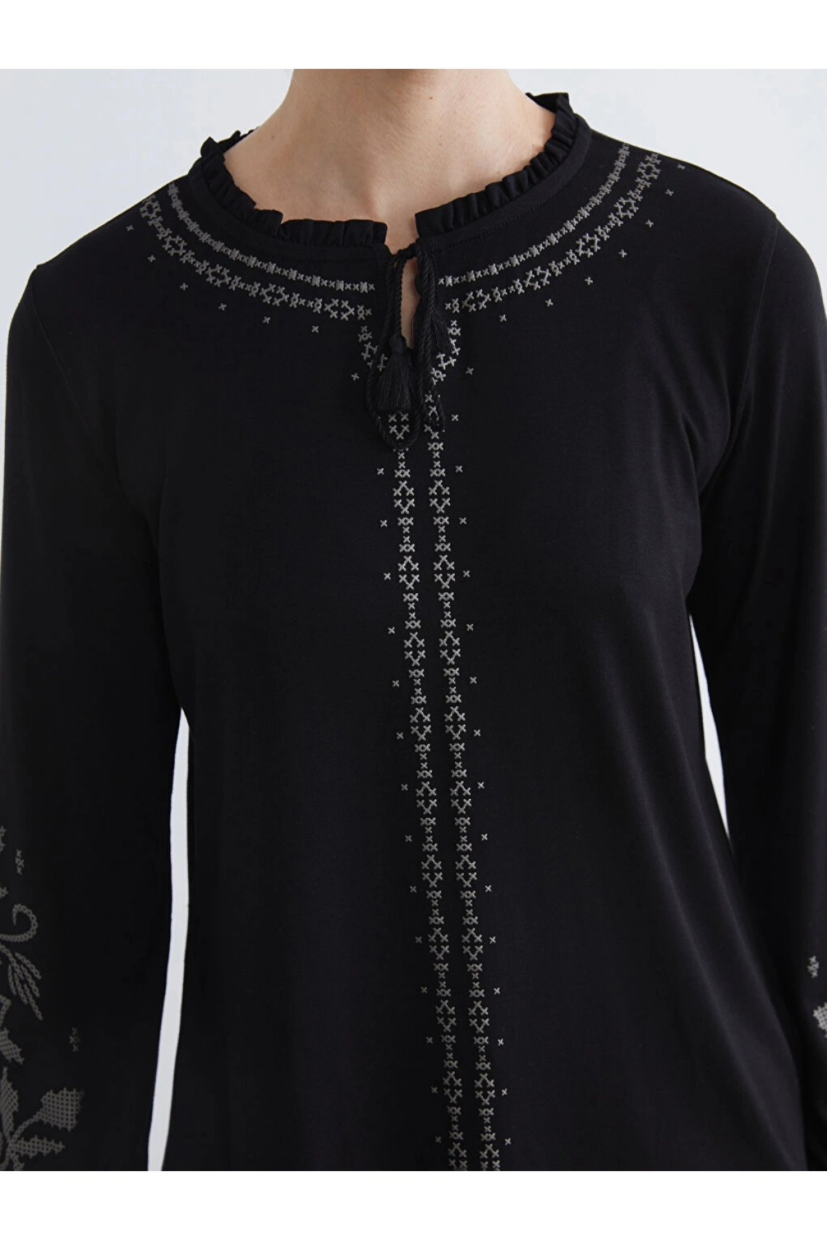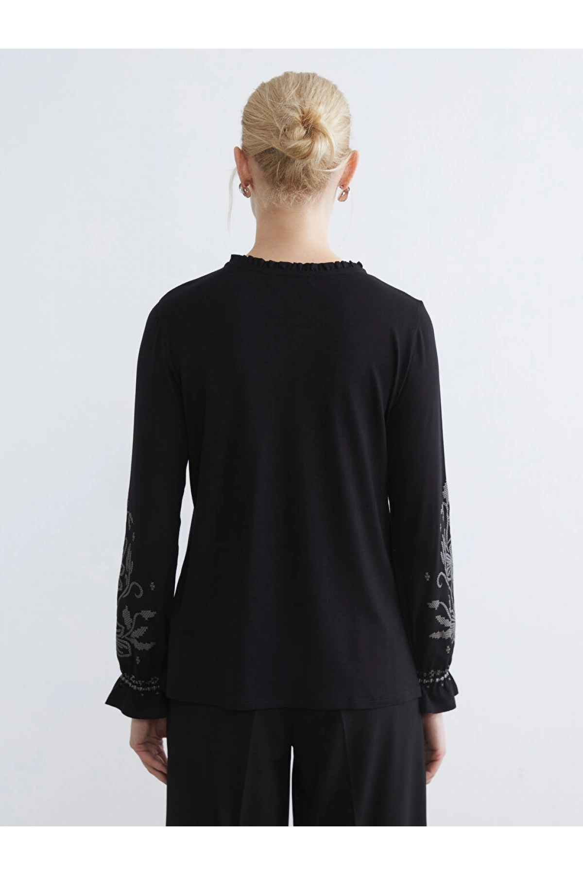 LCW Grace Siyah Bisiklet Yaka Desenli Bluz