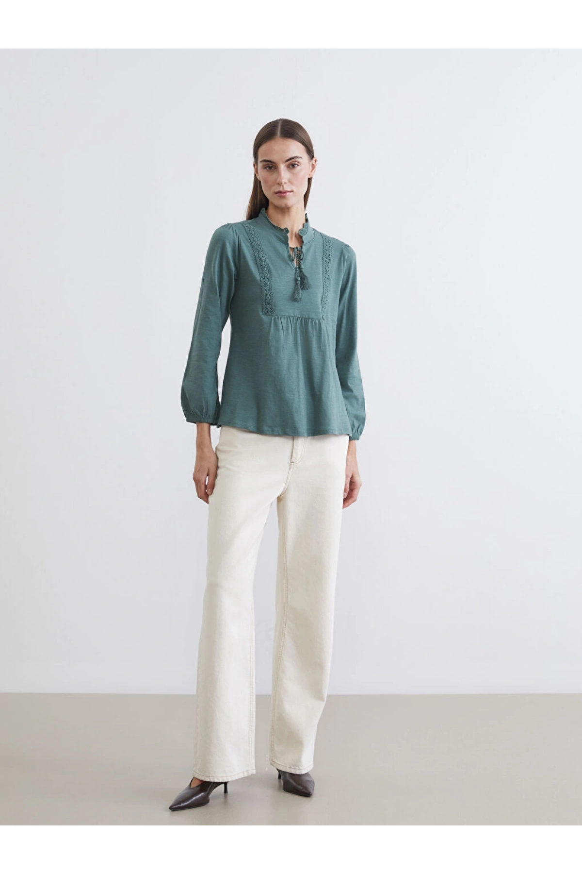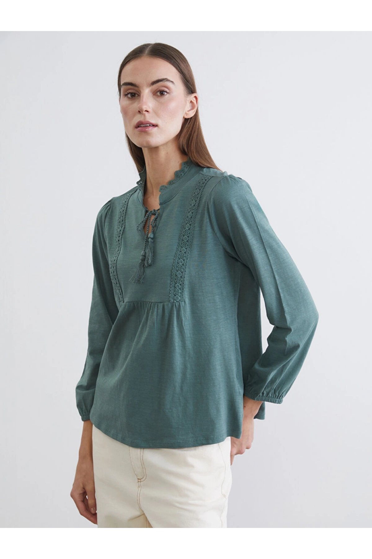 LCW Grace Bisiklet Yaka Dantel Detaylı Kadın Bluz
