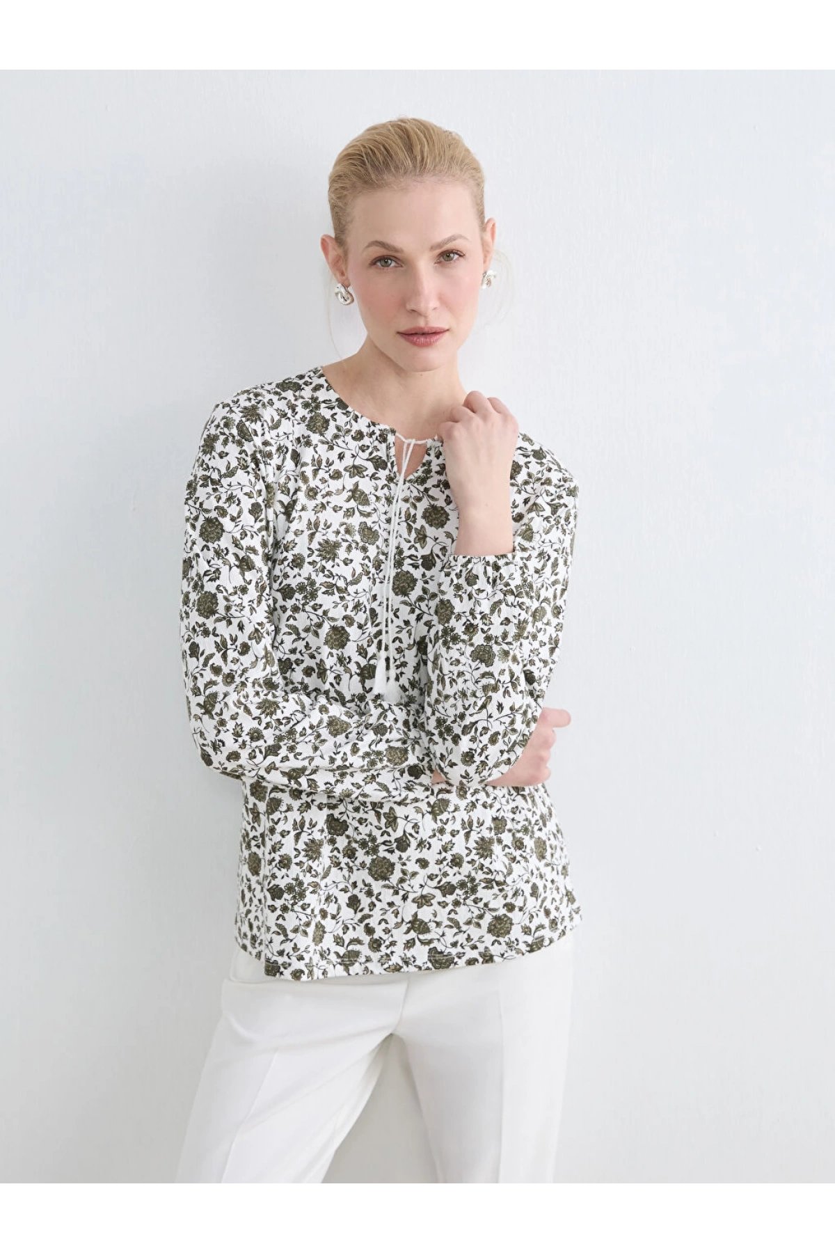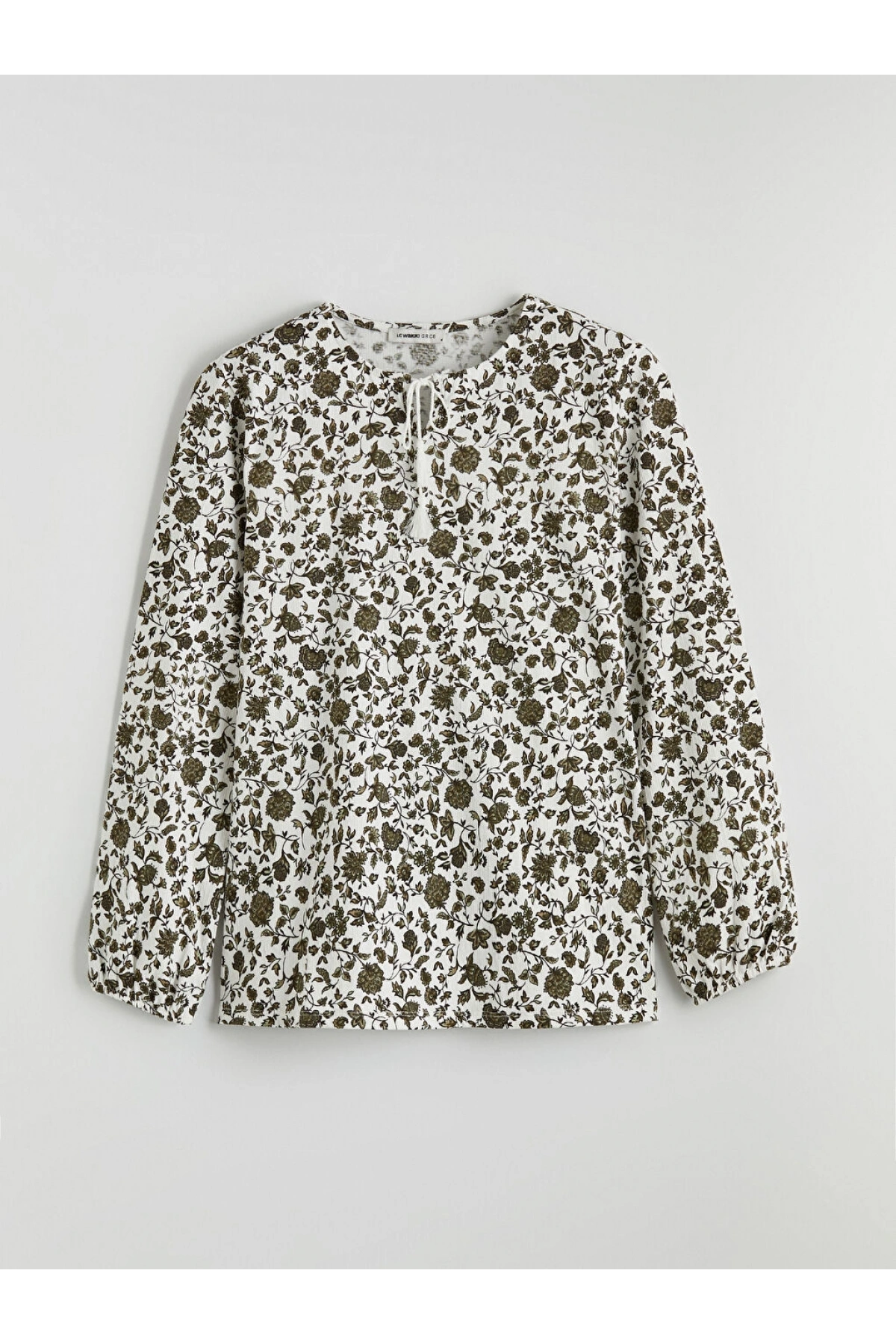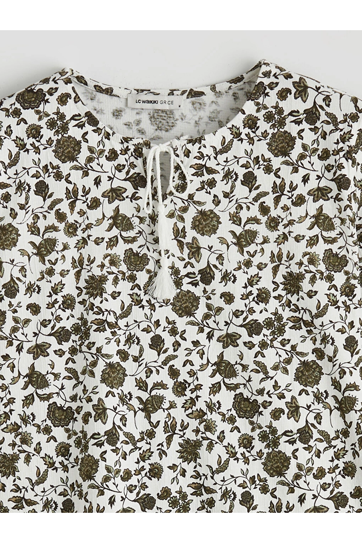 LCW Grace Yeşil Bağlamalı Yaka Çiçekli Bluz