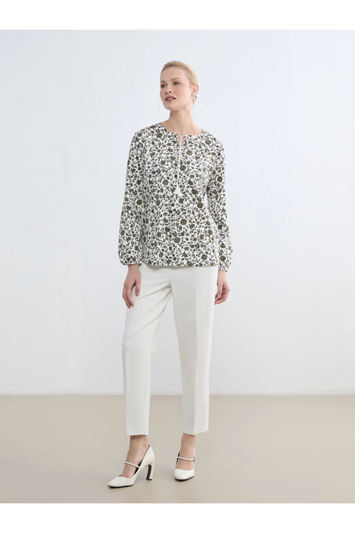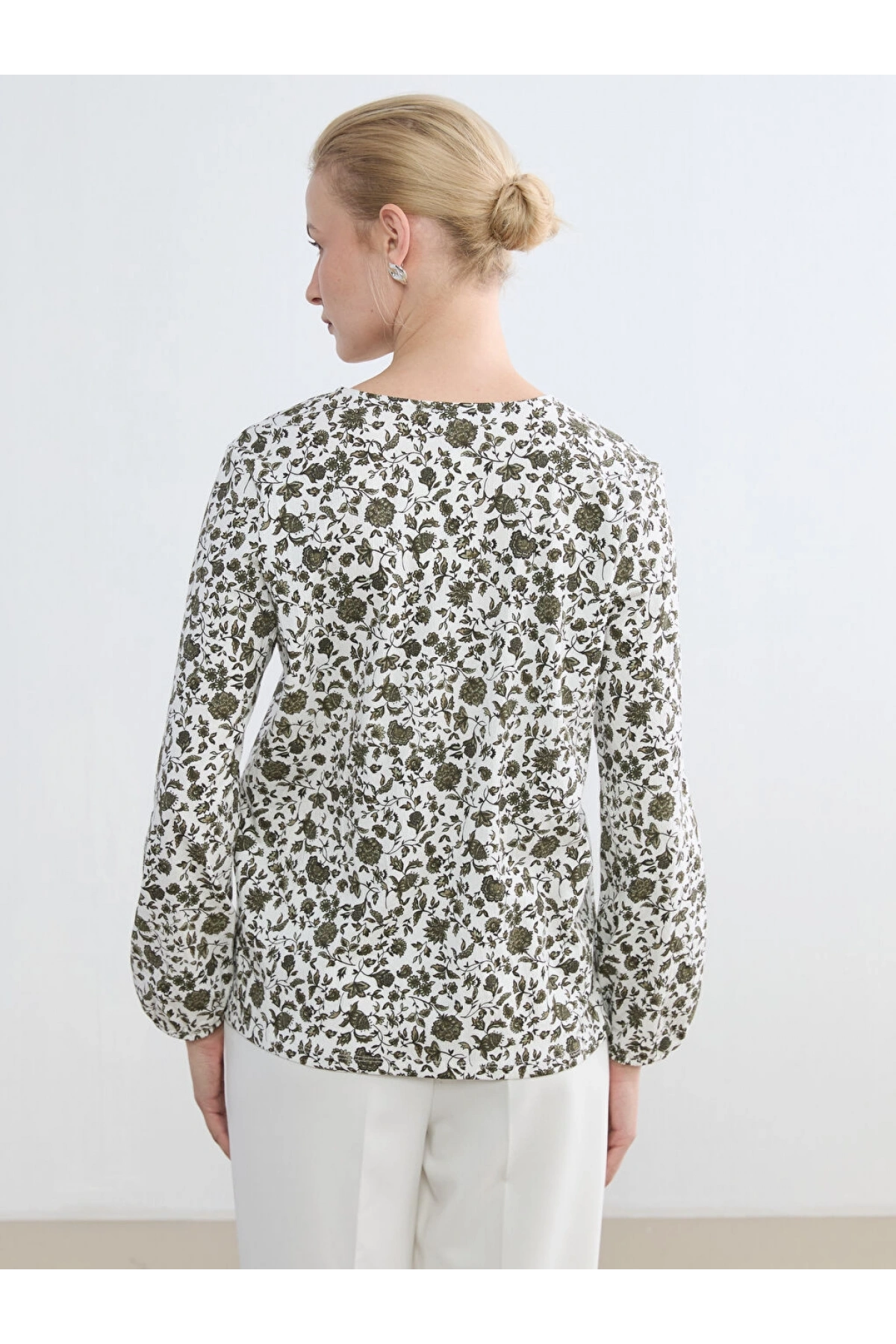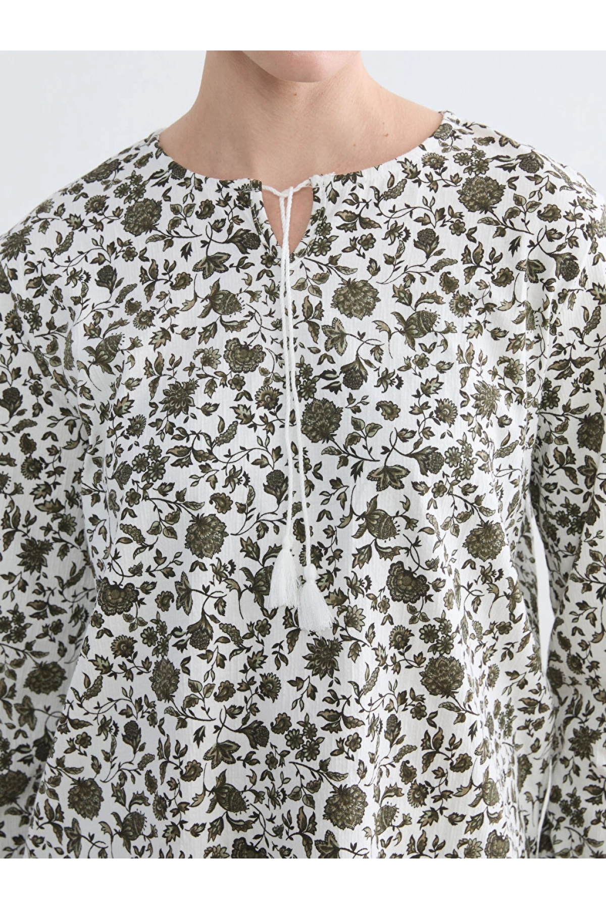 LCW Grace Yeşil Bağlamalı Yaka Çiçekli Bluz