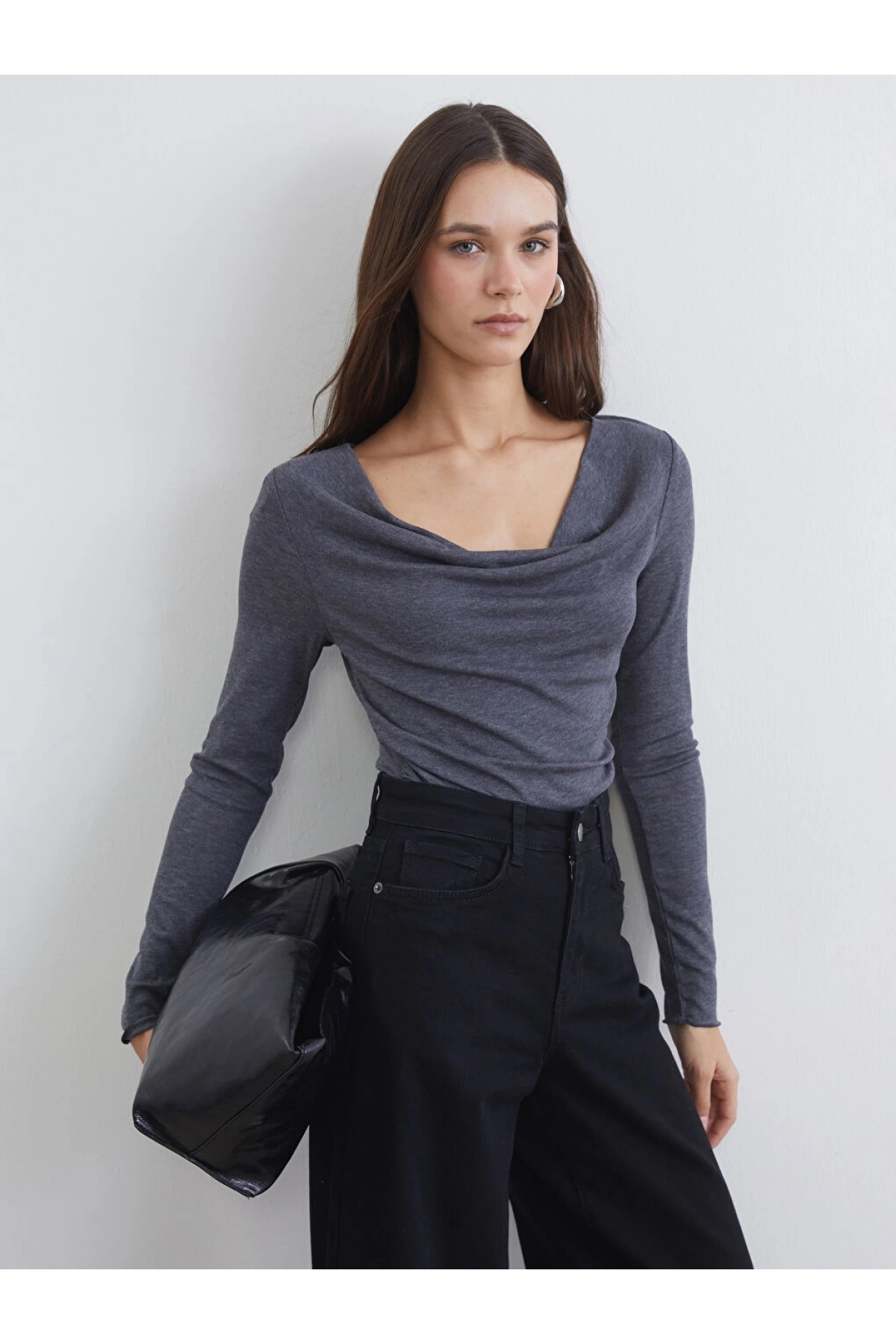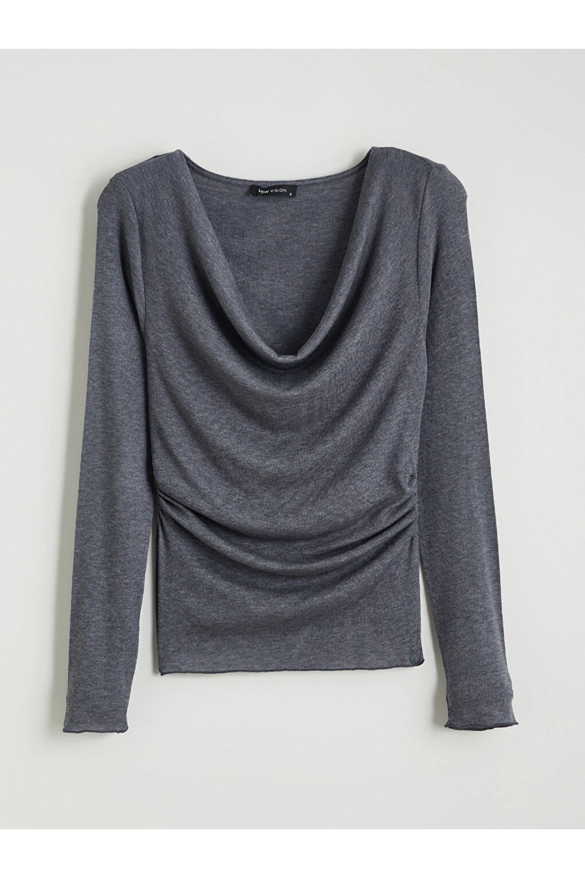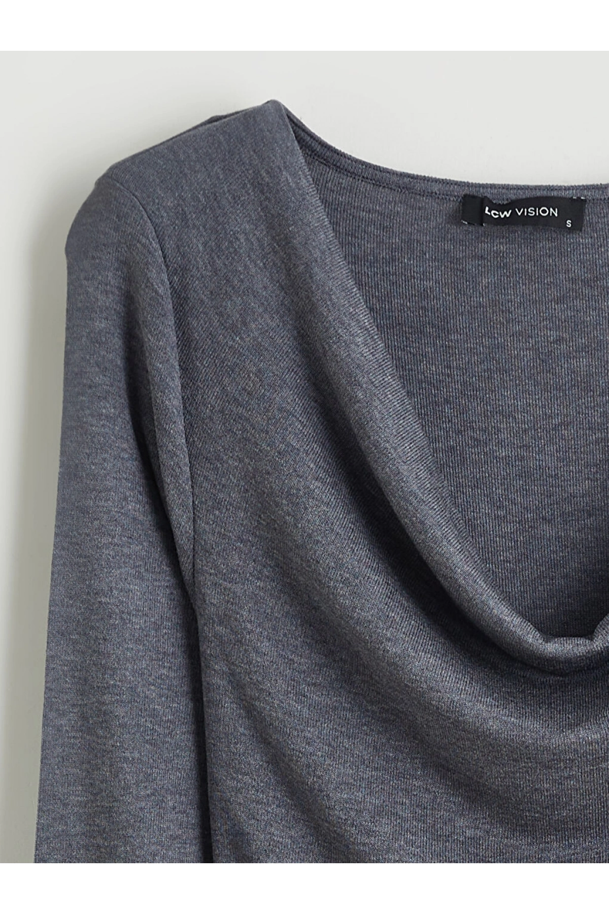LCW Vision Antrasit Dökümlü Yaka Büzgülü Bluz