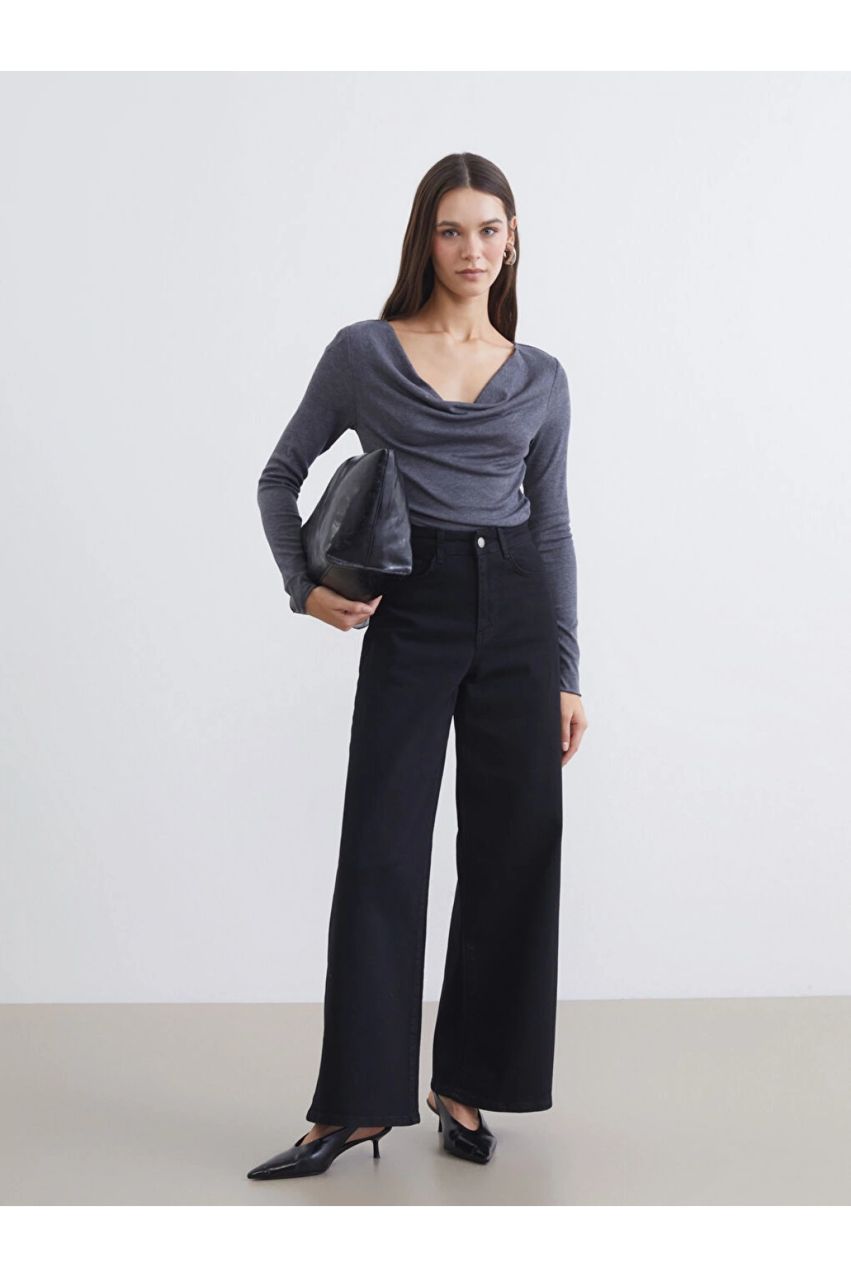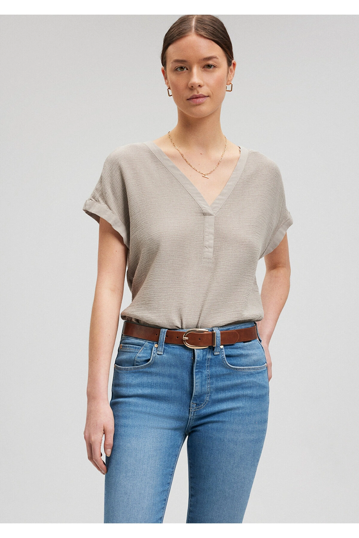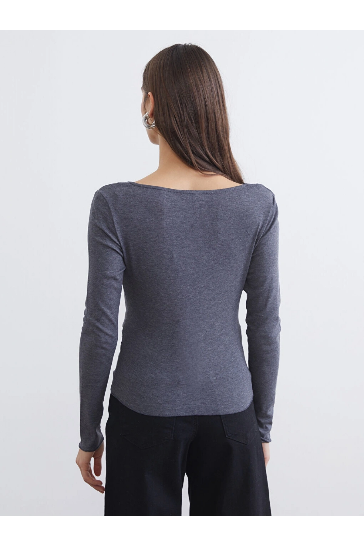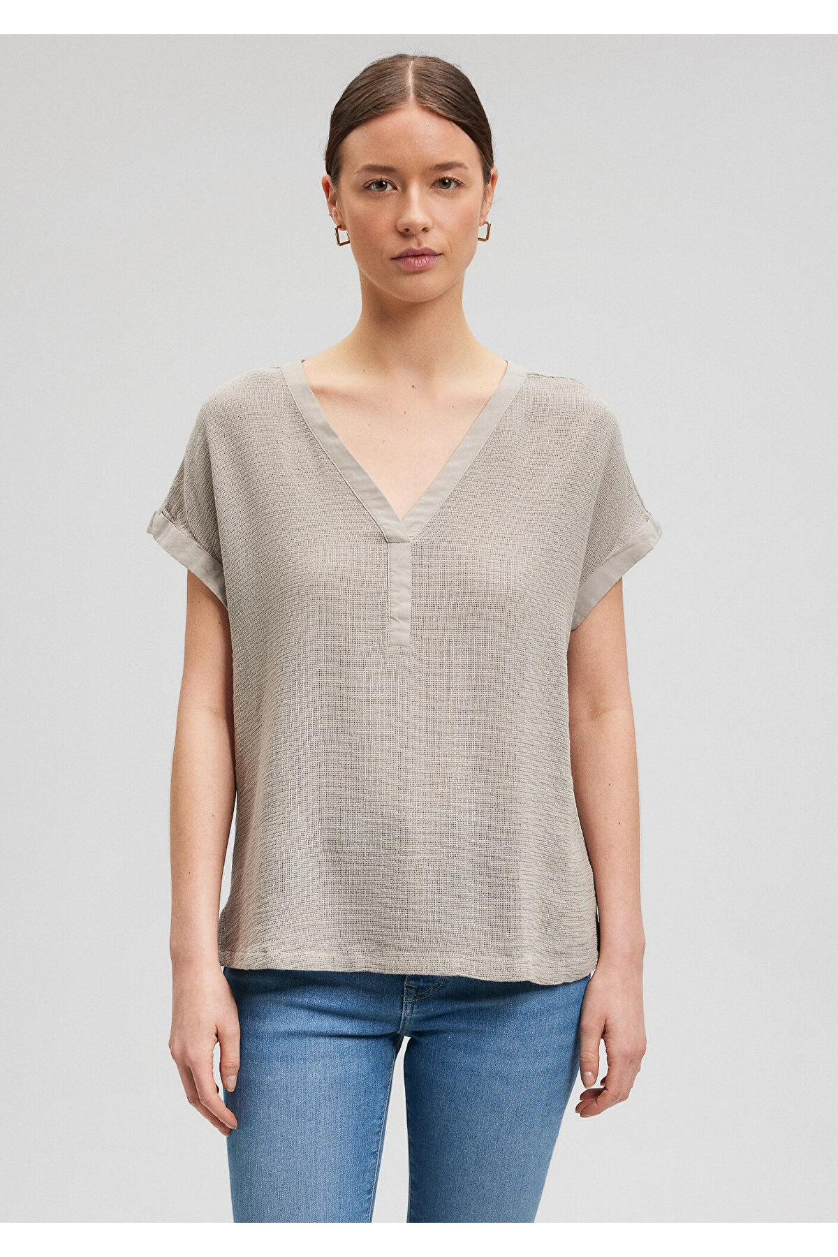 LCW Vision Antrasit Dökümlü Yaka Büzgülü Bluz