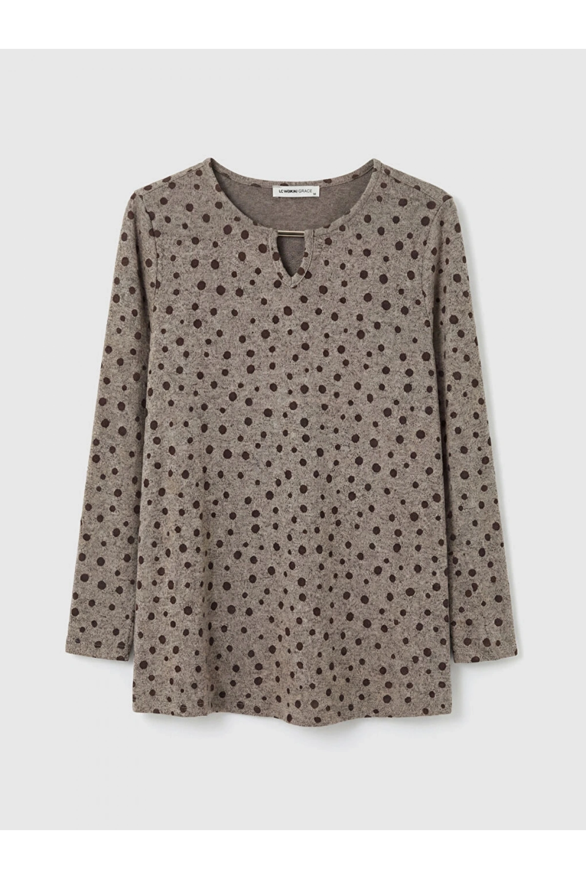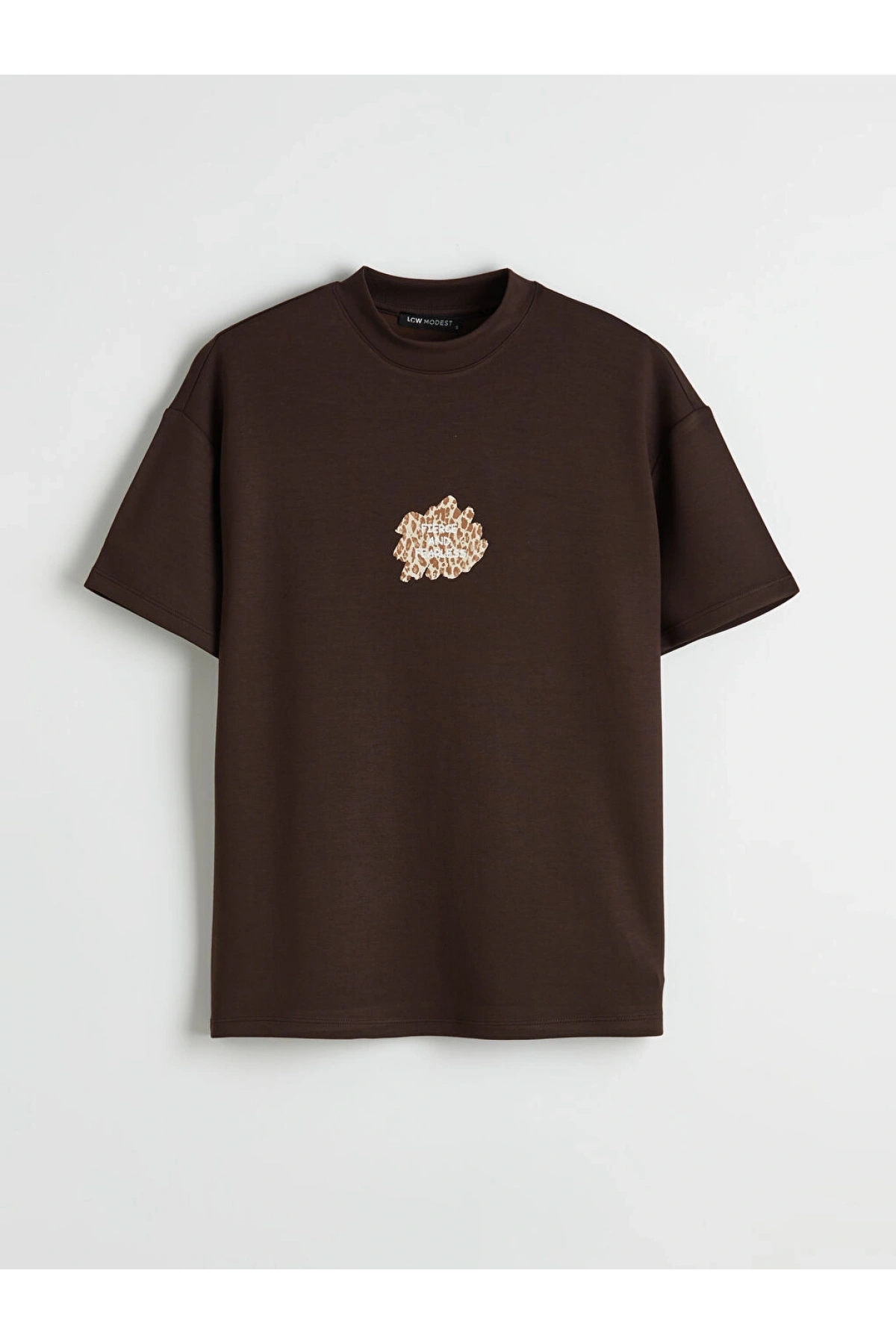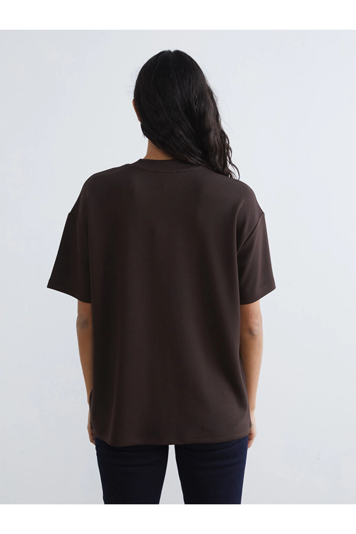 LCW Modest Kahverengi Bisiklet Yaka Baskılı Kadın Tişört