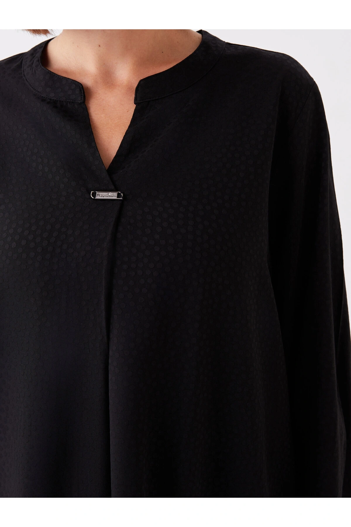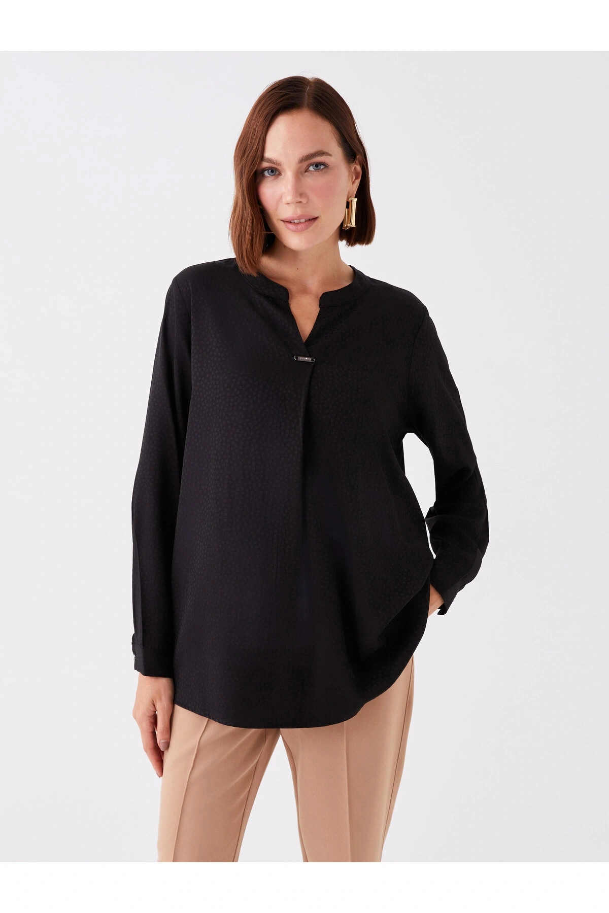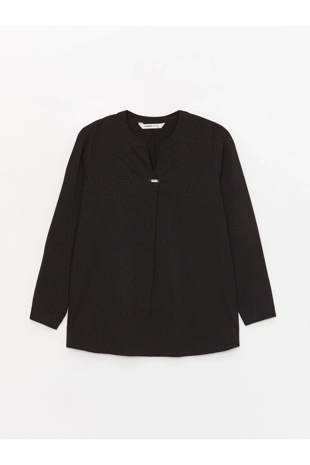 Kaçık Yaka Desenli Uzun Kollu Kadın Bluz