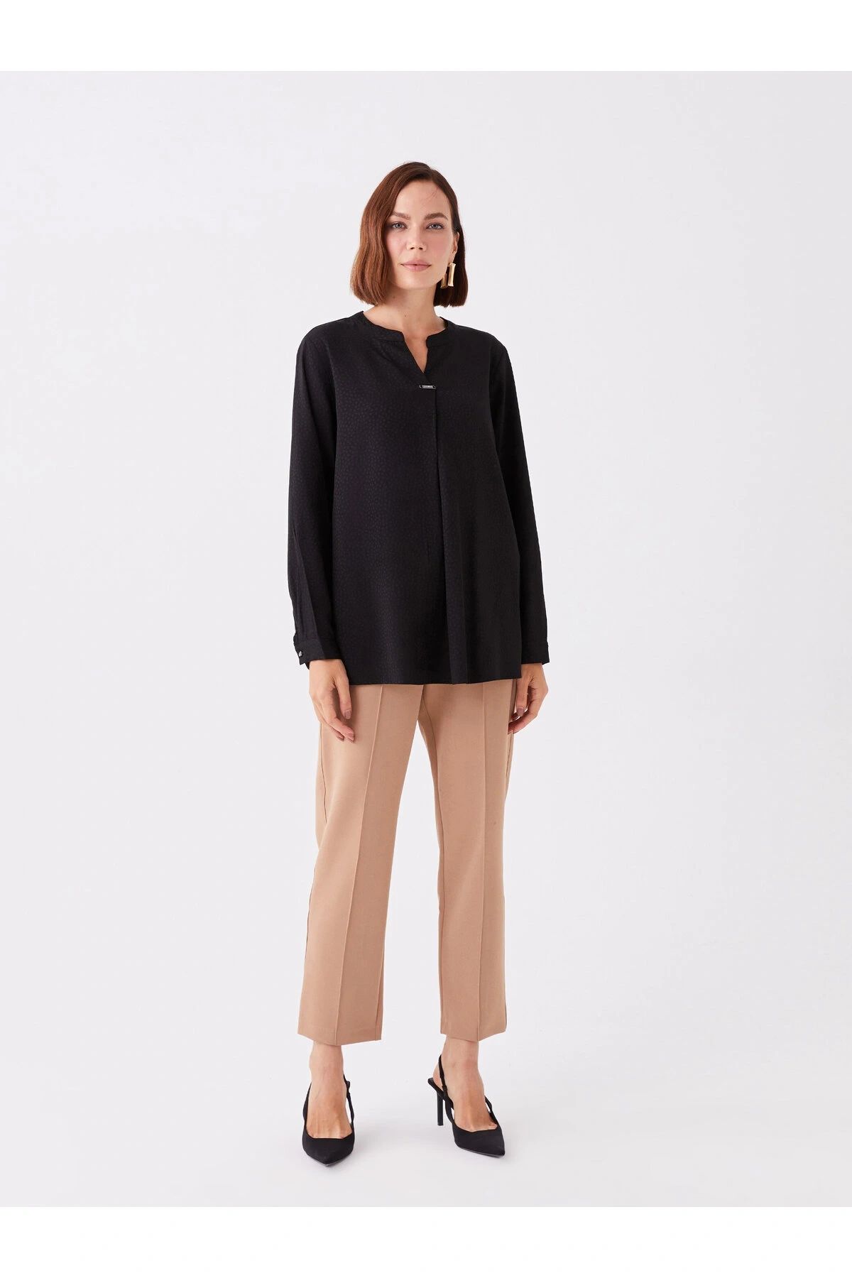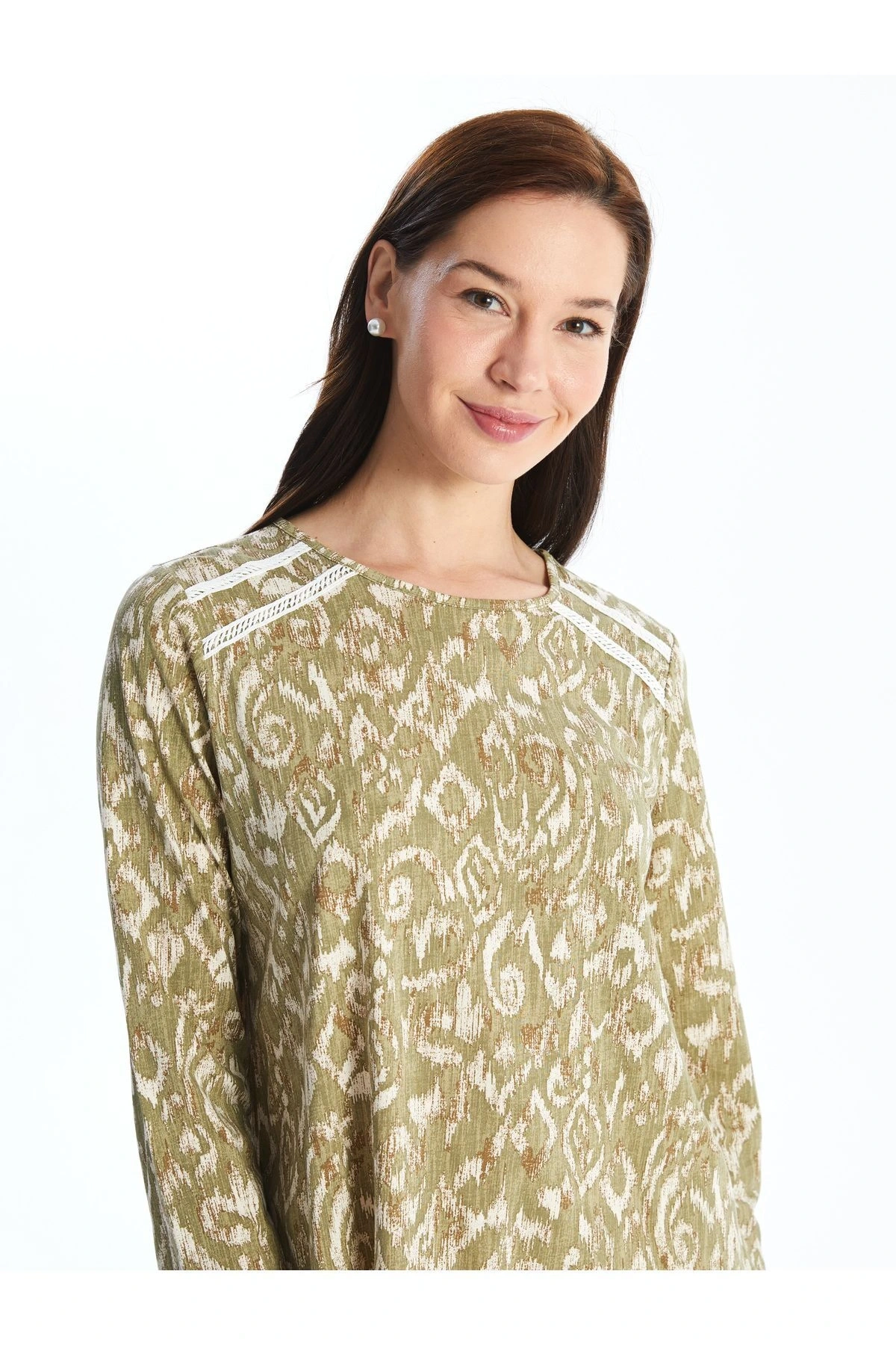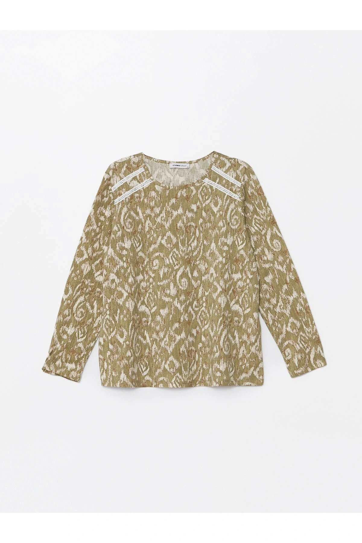 Bisiklet Yaka Desenli Uzun Kollu Kadın Bluz
