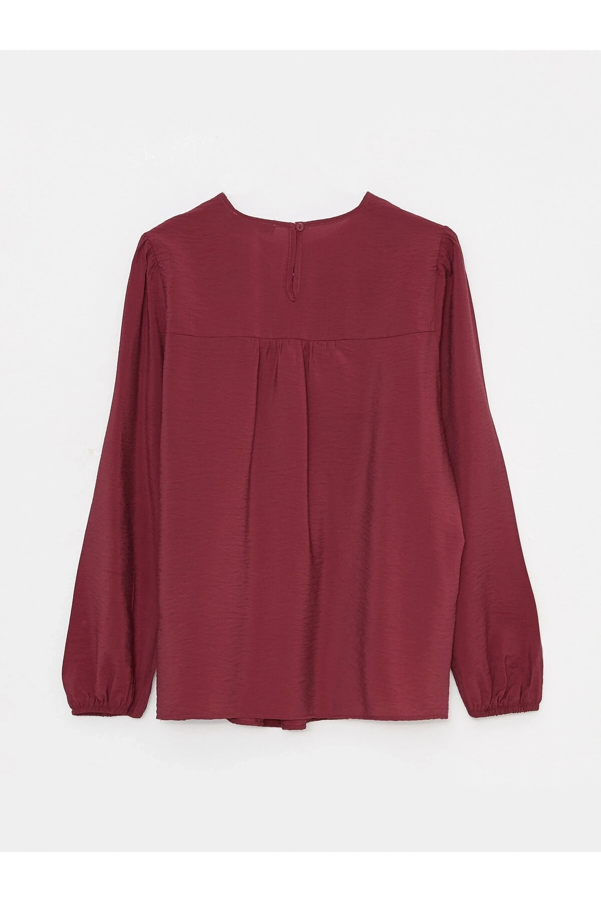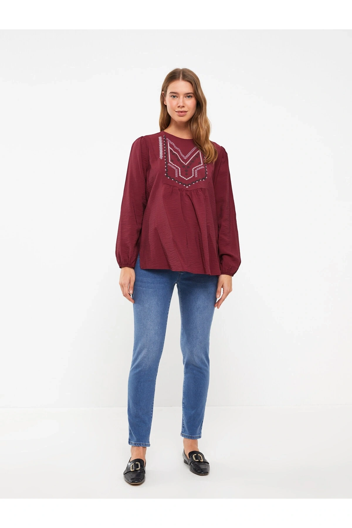 Bisiklet Yaka Nakışlı Uzun Kollu Hamile Bluz