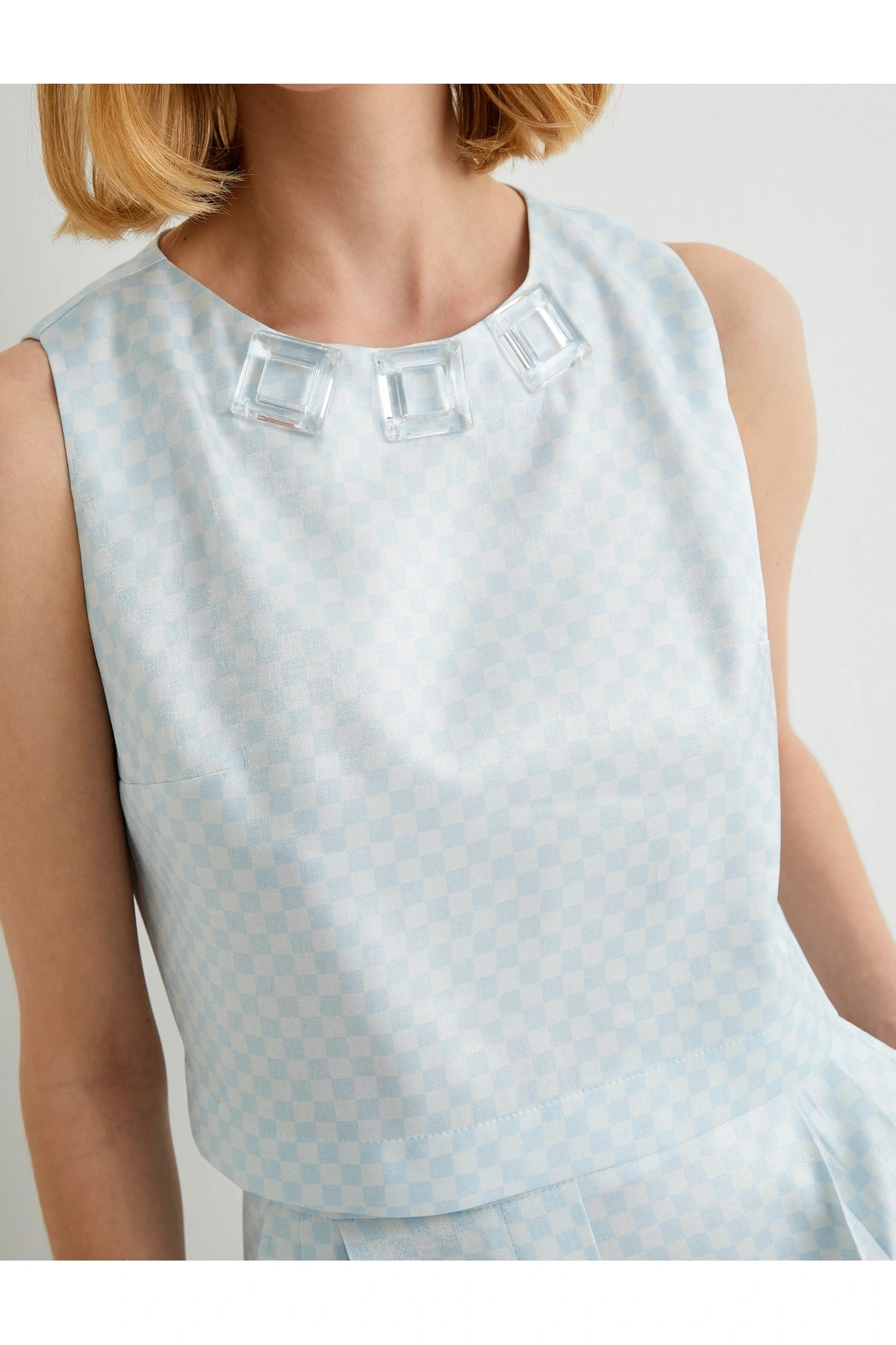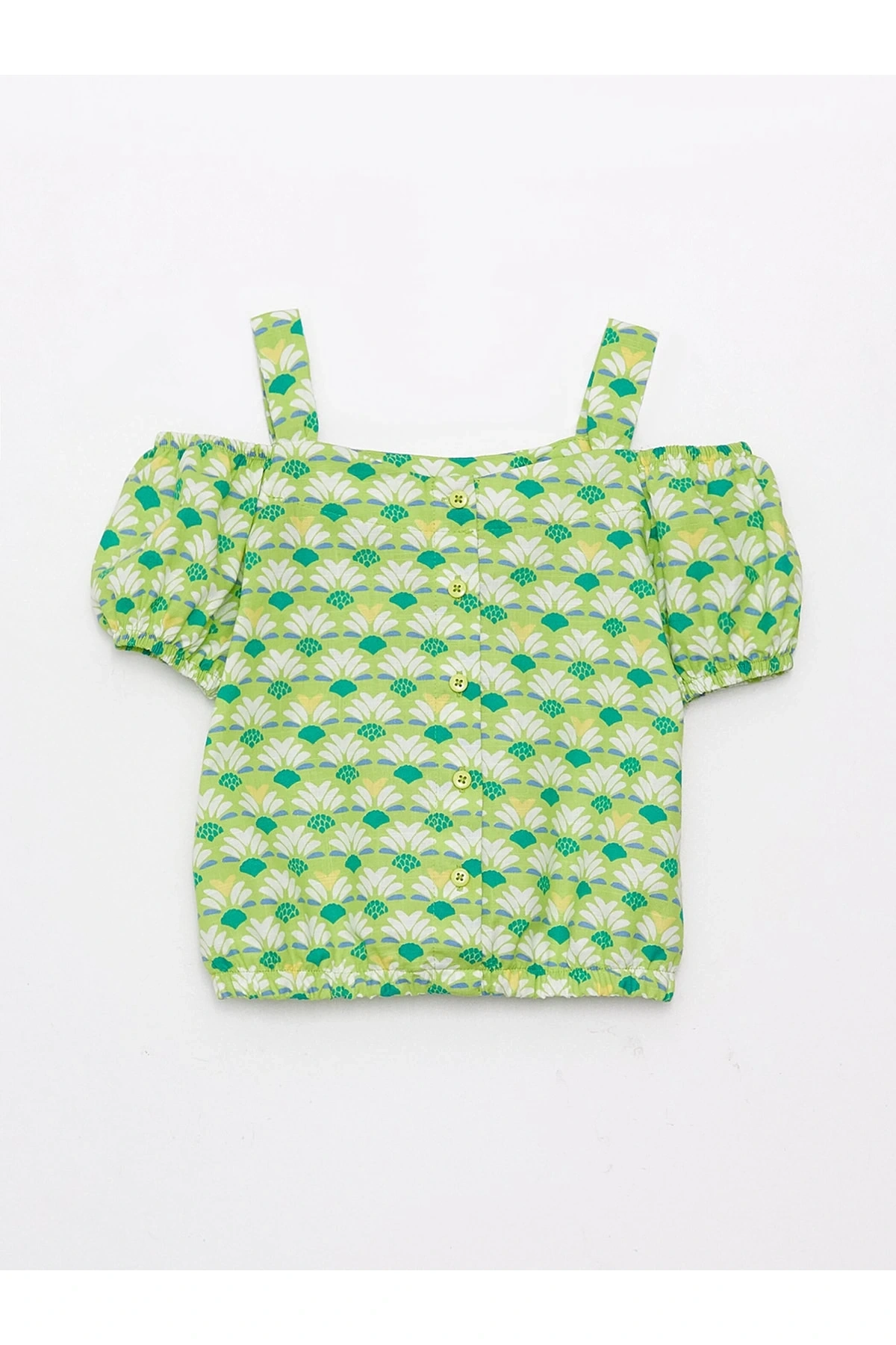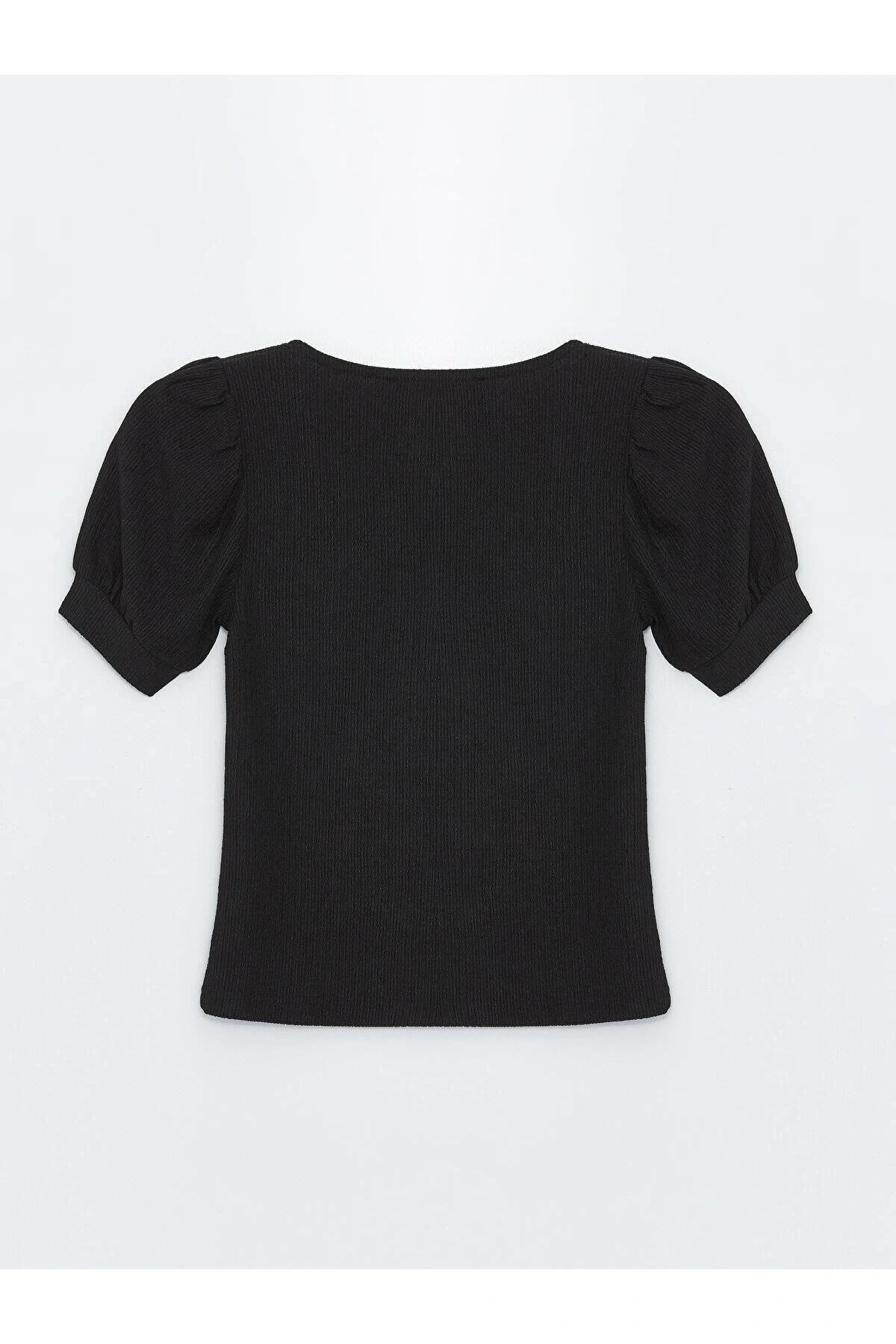 Kare Yaka Desenli Kısa Kollu Kız Çocuk Bluz